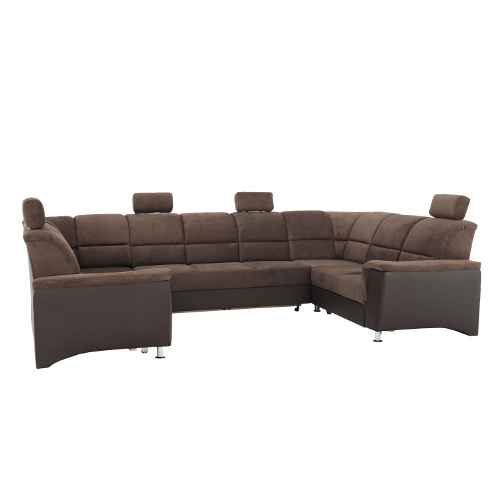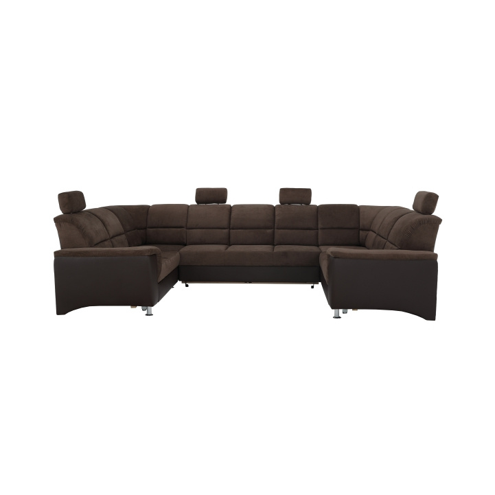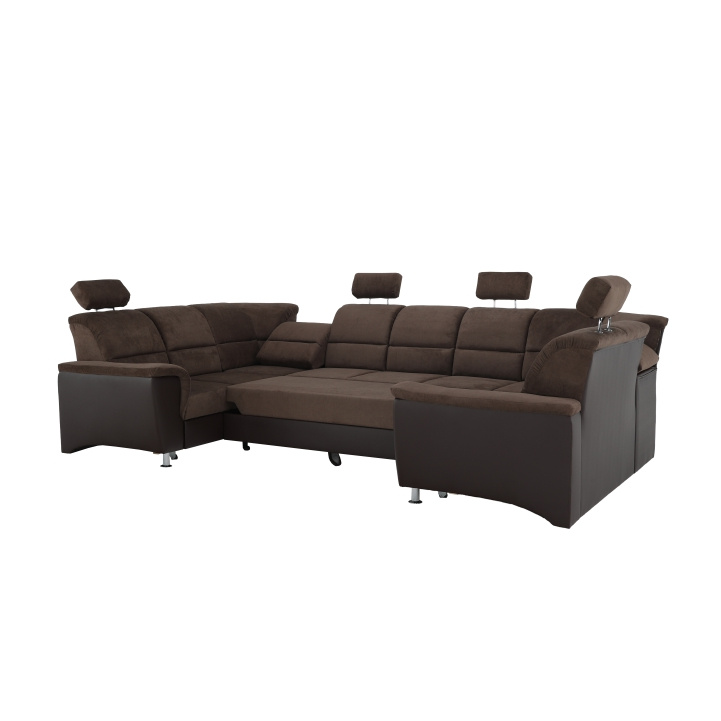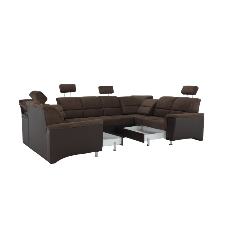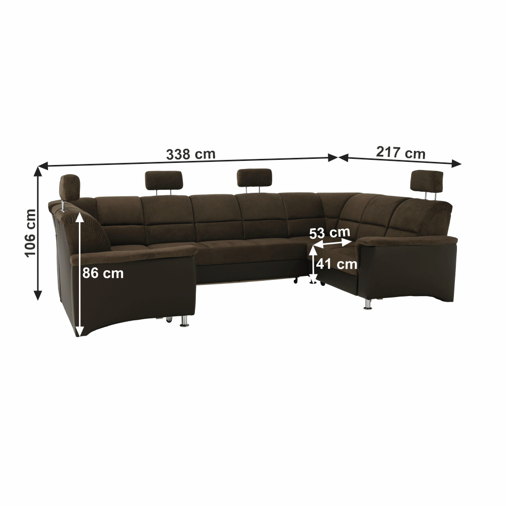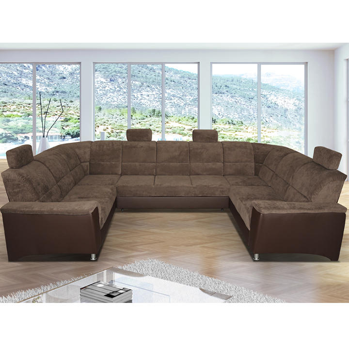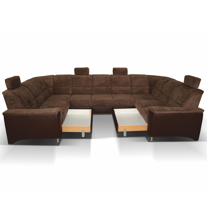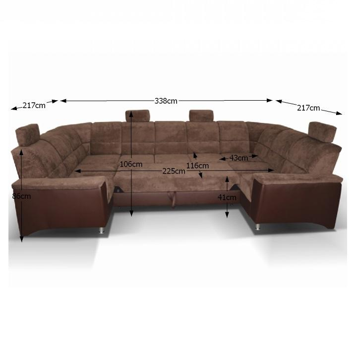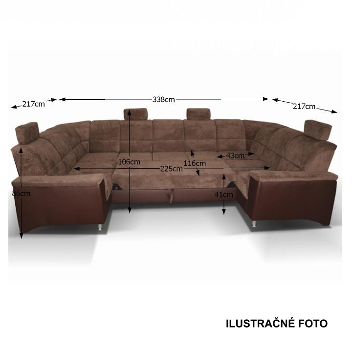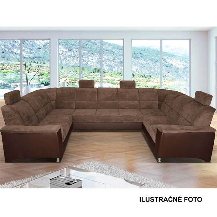 ;"Celočalouněná univerzální rozkládací sedací souprava ve tvaru U, SANTIAGO U VELKÝ Materiál: ekokůže / látka Oděruodolnost textilie Matrix podle testu Martindale: 72 000 oděrek Oděruodolnost ekokůže podle testu Martindale: 100 000 oděrek Barva: hnědá / Matrix 5 hnědá Rozměry (ŠxHxV): 338x217 / 217x86 / 106 cm Plocha na spaní (ŠxD): 116x225 cm Výška sedu: 41 cm Hloubka sedu: 53 cm Nosnost na osobu: 90 kg Manuální systém rozkladu Výška spodního prostoru od podlahy: 10 cm Nosnost: 90 kg Dodávané v demontu. Možnost objednání v 6 barevných provedeních látky Matrix a v 6 provedeních ekokůže: roh U velký v ceně 41.950 Kč, křeslo - 9.890 Kč, taburet - 3.290 Kč Při individuální objednávce je třeba zaplatit 20% zálohu z dané částky. Po uhrazení zálohy bude Váš požadavek zadán do výroby. Doba dodání 6-8 týdnů. Váš výběr poznamenejte do poznámky v objednávce.