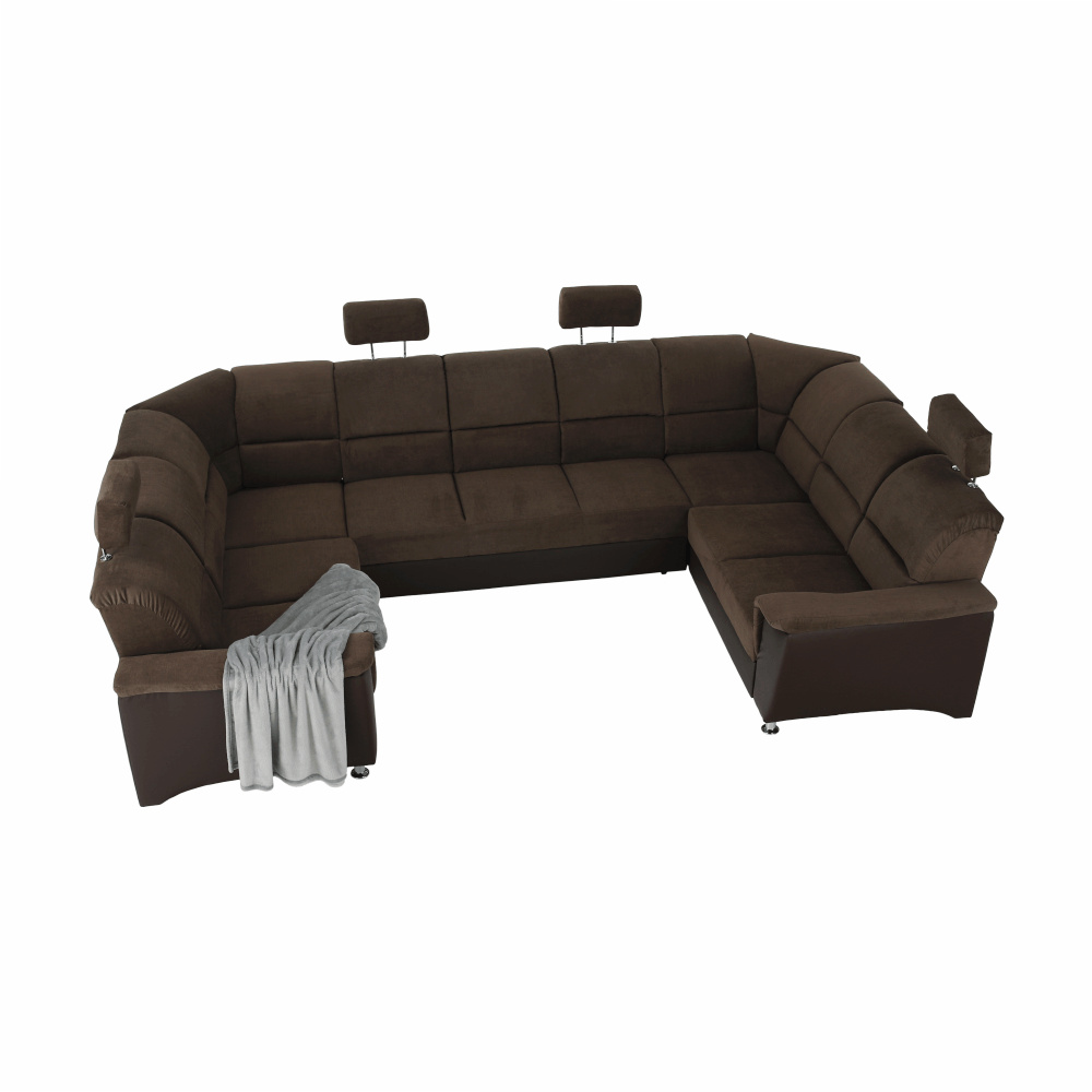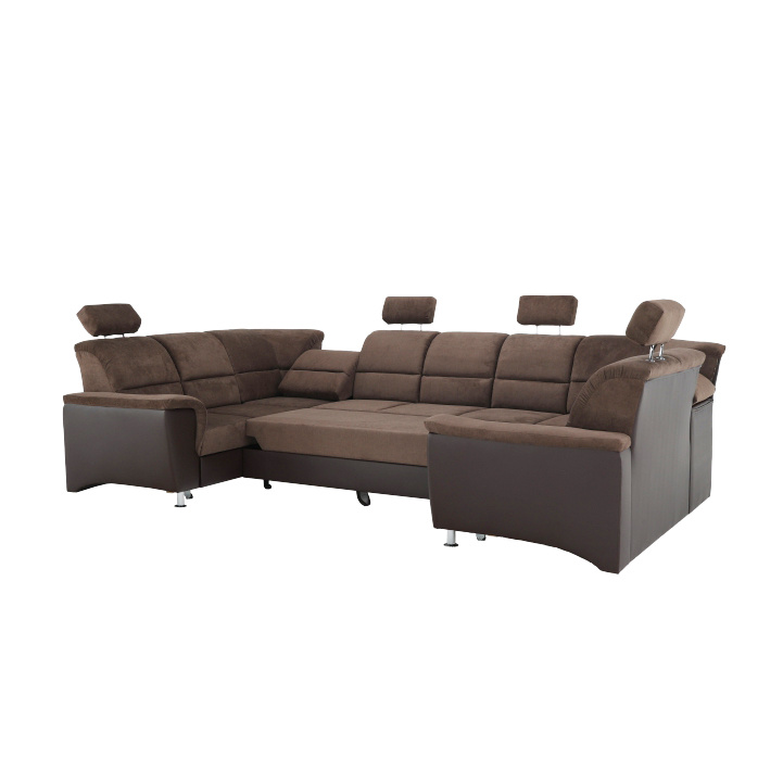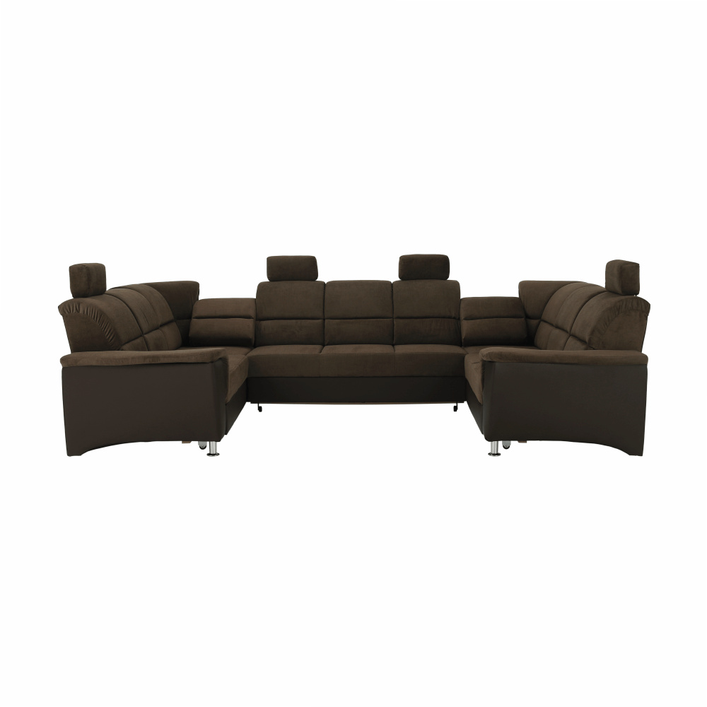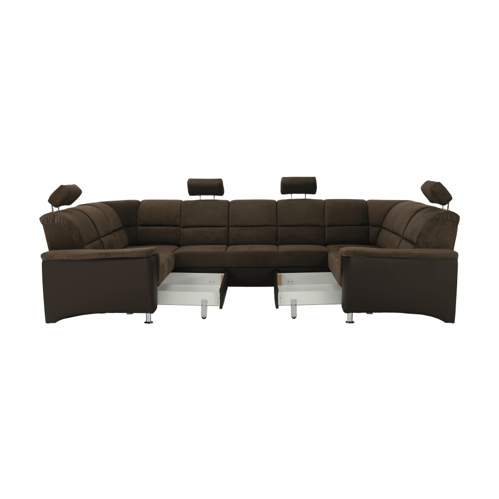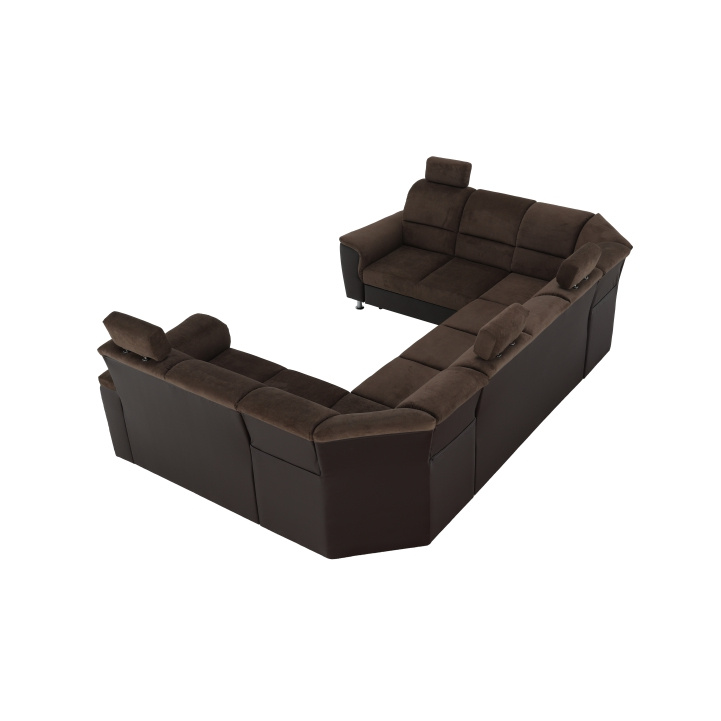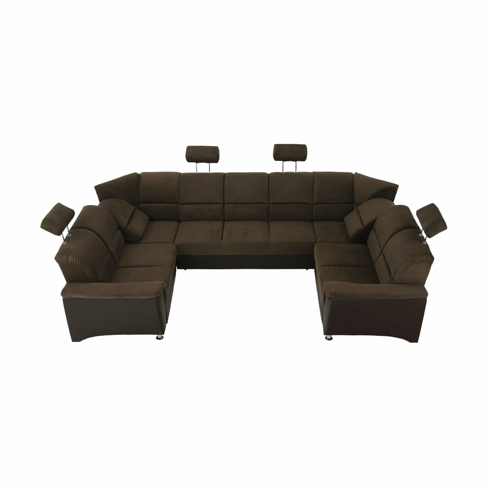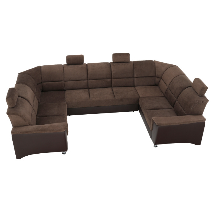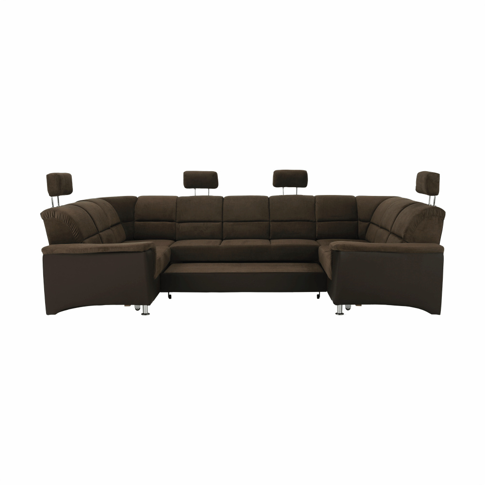 ;"Celočalouněná univerzální rozkládací sedací souprava ve tvaru U, SANTIAGO U VELKÝ Materiál: ekokůže / látka Oděruodolnost textilie Matrix podle testu Martindale: 72 000 oděrek Oděruodolnost ekokůže podle testu Martindale: 100 000 oděrek Barva: hnědá / Matrix 5 hnědá Rozměry (ŠxHxV): 338x217 / 217x86 / 106 cm Plocha na spaní (ŠxD): 116x225 cm Výška sedu: 41 cm Hloubka sedu: 53 cm Nosnost na osobu: 90 kg Manuální systém rozkladu Výška spodního prostoru od podlahy: 10 cm Nosnost: 90 kg Dodávané v demontu. Možnost objednání v 6 barevných provedeních látky Matrix a v 6 provedeních ekokůže: roh U velký v ceně 41.950 Kč, křeslo - 9.890 Kč, taburet - 3.290 Kč Při individuální objednávce je třeba zaplatit 20% zálohu z dané částky. Po uhrazení zálohy bude Váš požadavek zadán do výroby. Doba dodání 6-8 týdnů. Váš výběr poznamenejte do poznámky v objednávce.