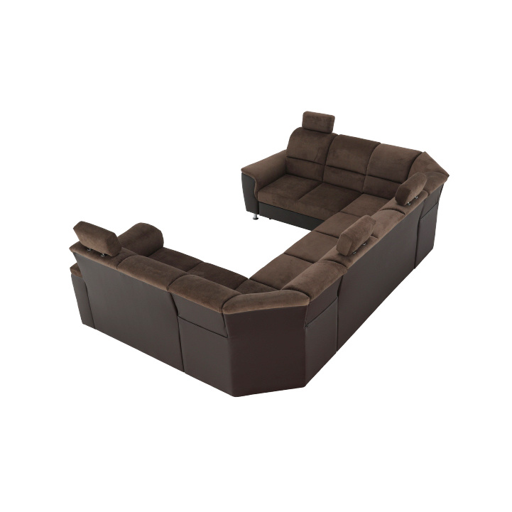 Sedací souprava, ekokůže hnědá/látka hnědá, SANTIAGO U VELKÝ