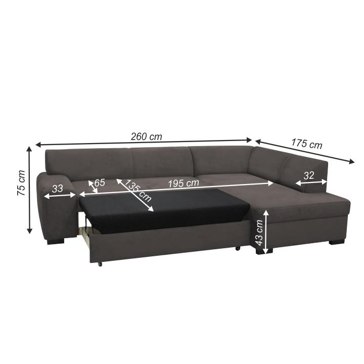 ;"Materiál: látka Barva: hnědá Aria 05 Oděruodolnost textilie podle testu Martindale: 50 000 oděrek Rozměry (ŠxHxV): 260x175x75 cm Plocha na spaní (ŠxD): 135x195 cm Výška sedu: 43 cm Hloubka sedu: 65 cm Výška spodního prostoru od podlahy: 5 cm Nosnost na osobu: 90 kg celočalouněná rozkládací rohová S úložným prostorem pravé provedení Dodávané v demontu. Možnost objednání v 4 barevných odstínech ekokůže a ve 4 barevných odstínech látky Berlin v ceně 20.150 Kč. . Při individuální objednávce je třeba zaplatit 20% zálohu z dané částky. Po uhrazení zálohy bude Vaša objednávka zadána do výroby. Doba dodání 6-8 týdnů. Dodávané v demontu.