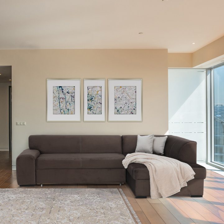 Sedací souprava, hnědá, pravá, MINERVA NEW