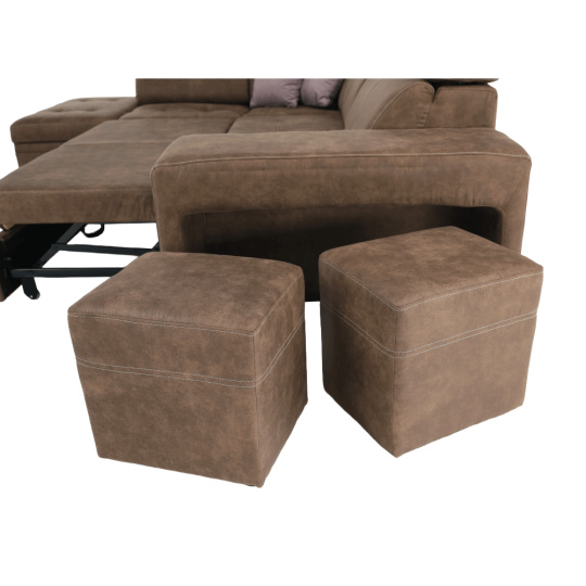 Celočalouněná rohová rozkládací sedací souprava s úložným prostorem a s polohovacím záhlavím. Materiál: Látka Preston / látka Jasmine Oděruodolnost textilie Preston podle testu Martindale: 68 000 oděrek Oděruodolnost textilie Jasmine podle testu Martindale: 90 000 oděrek Barva: hnědá / světle levé provedení. Rozměry (ŠxHxV): 275x220x85 / 100 cm, plocha na spaní (ŠxD): 120x190 cm Výška spodního prostoru od podlahy: 5 cm Výška sedu: 43 cm Hloubka sedu: 53 cm Dodávané s polštáři a s dvěma taburety Nosnost na osobu: 90 kg Dodávané v demontu. Máme pro vás hned čtyři barvy látky Preston a čtyři barvy látky Jasmine, kombinovat tedy můžete dle libosti. Cena sedačky na individuální objednávku je 39.790 Kč. Při individuální objednávce je třeba zaplatit 20% zálohu z dané částky. Po uhrazení zálohy bude Váš požadavek zadána do výroby. Dodací doba 6-8 týdnů.
