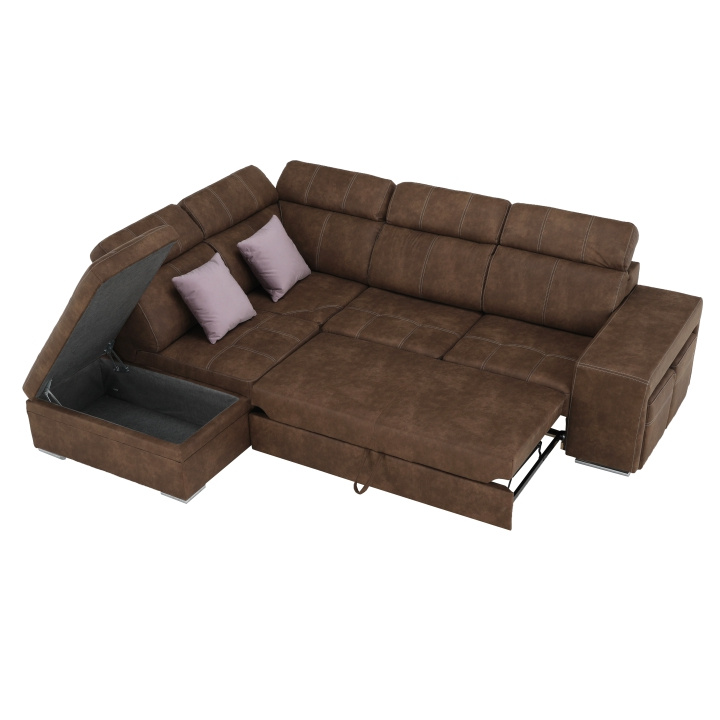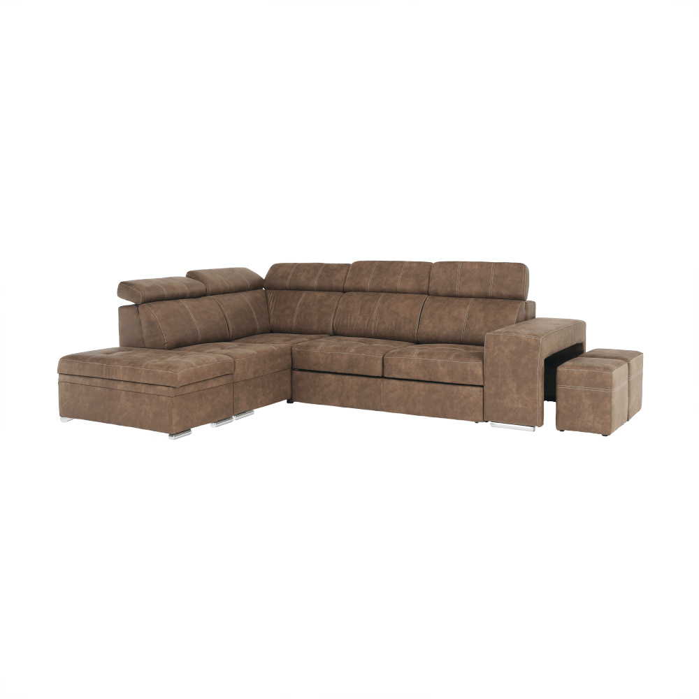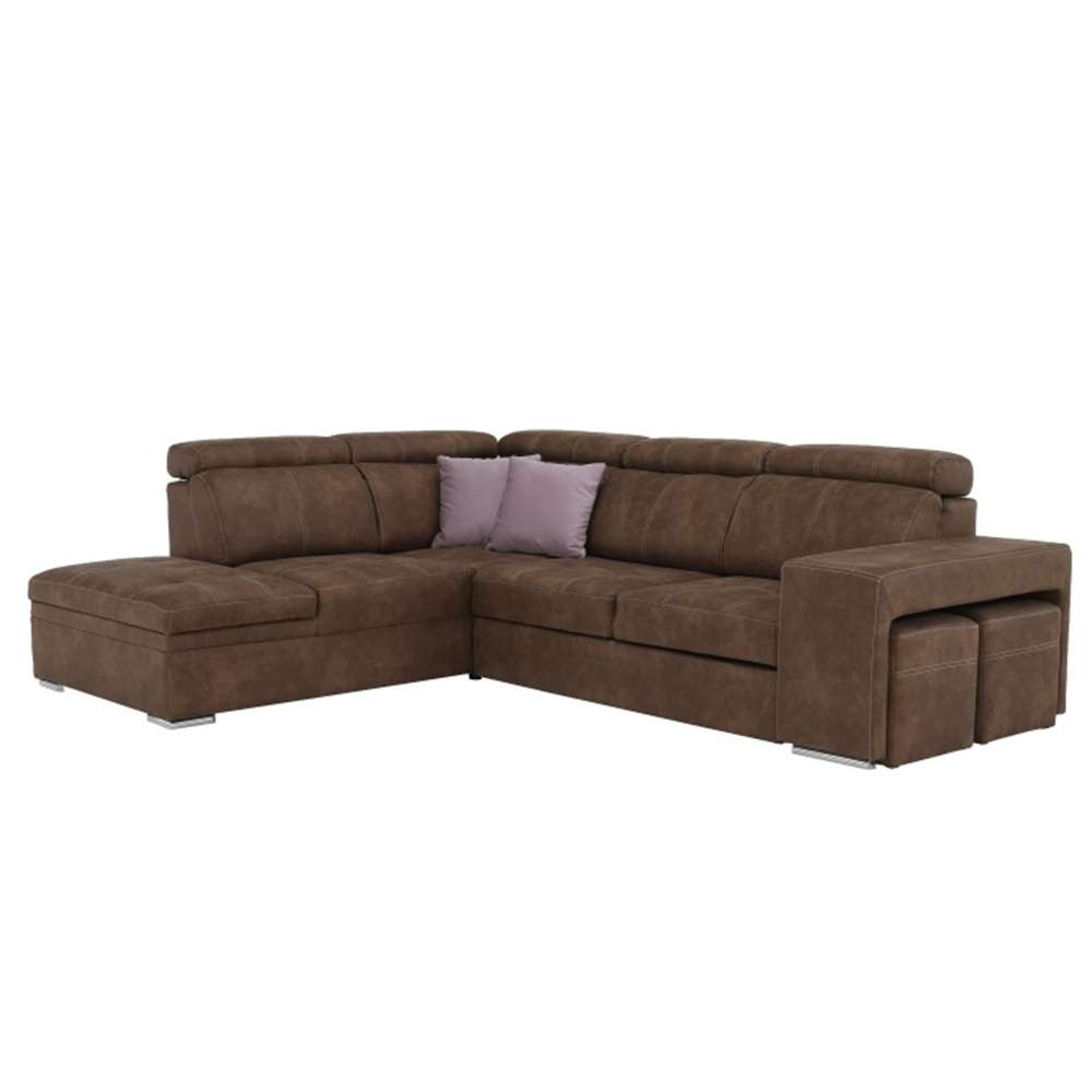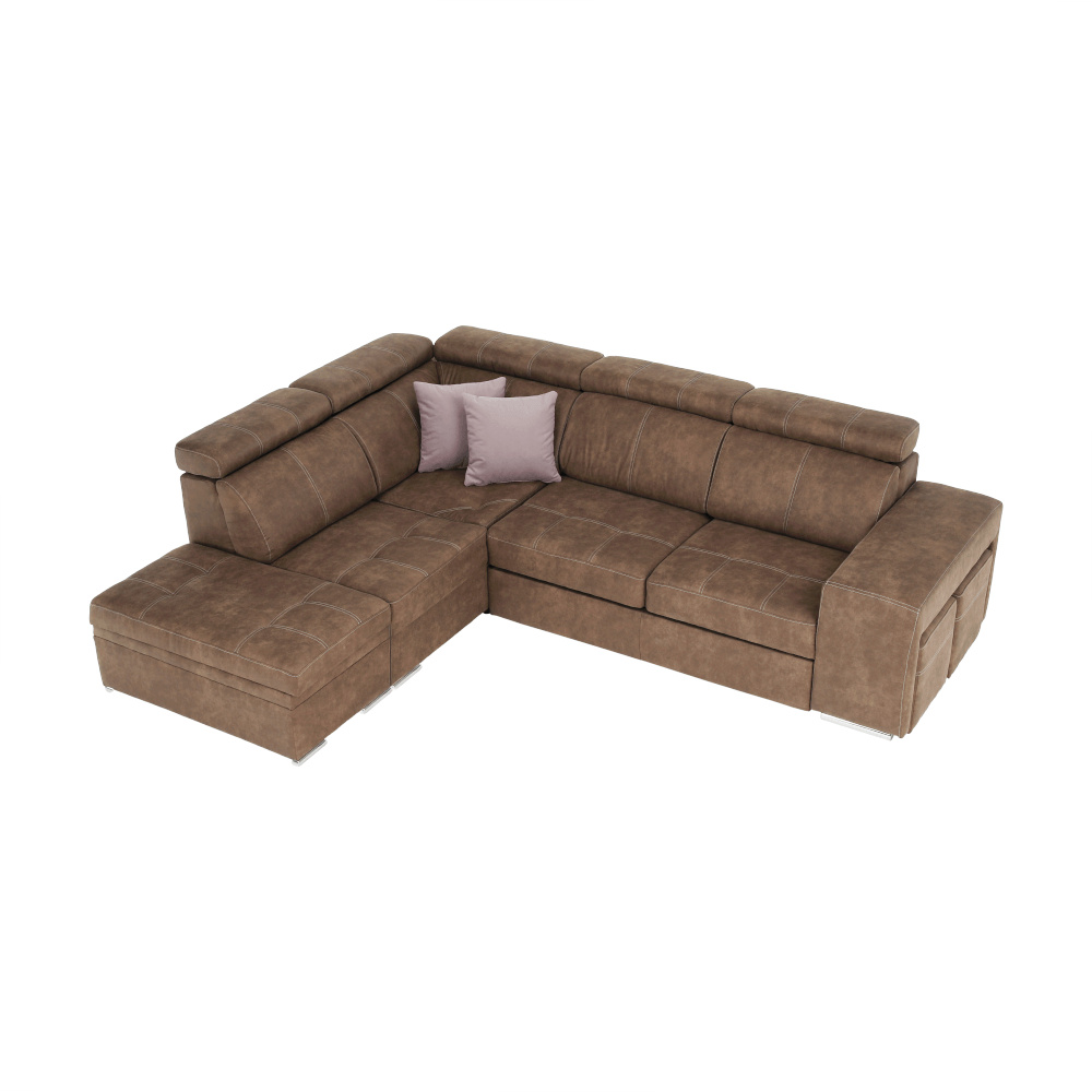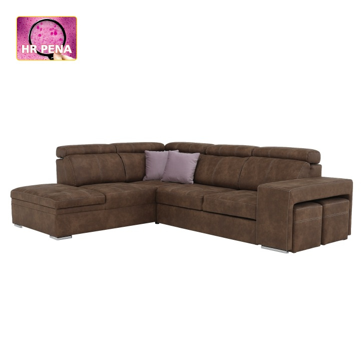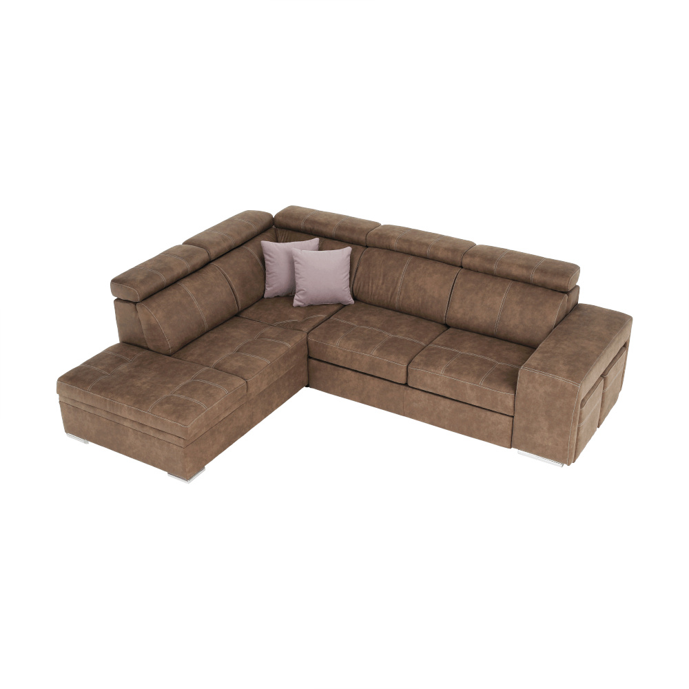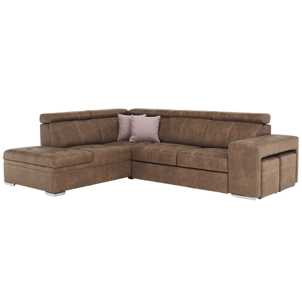 Celočalouněná rohová rozkládací sedací souprava s úložným prostorem a s polohovacím záhlavím. Materiál: Látka Preston / látka Jasmine Oděruodolnost textilie Preston podle testu Martindale: 68 000 oděrek Oděruodolnost textilie Jasmine podle testu Martindale: 90 000 oděrek Barva: hnědá / světle levé provedení. Rozměry (ŠxHxV): 275x220x85 / 100 cm, plocha na spaní (ŠxD): 120x190 cm Výška spodního prostoru od podlahy: 5 cm Výška sedu: 43 cm Hloubka sedu: 53 cm Dodávané s polštáři a s dvěma taburety Nosnost na osobu: 90 kg Dodávané v demontu. Máme pro vás hned čtyři barvy látky Preston a čtyři barvy látky Jasmine, kombinovat tedy můžete dle libosti. Cena sedačky na individuální objednávku je 39.790 Kč. Při individuální objednávce je třeba zaplatit 20% zálohu z dané částky. Po uhrazení zálohy bude Váš požadavek zadána do výroby. Dodací doba 6-8 týdnů.