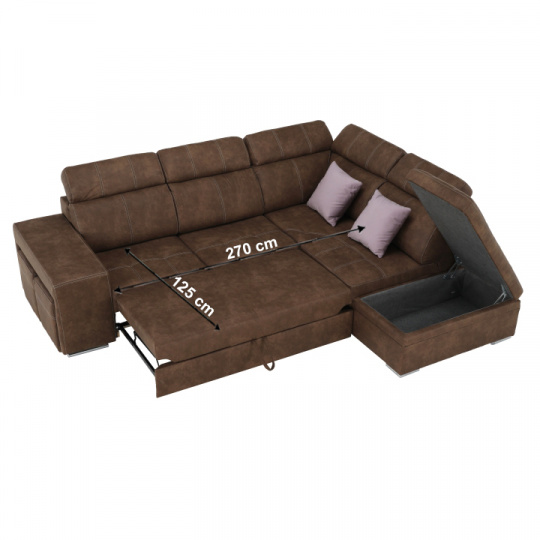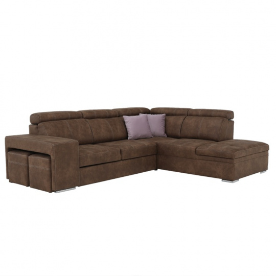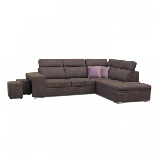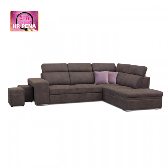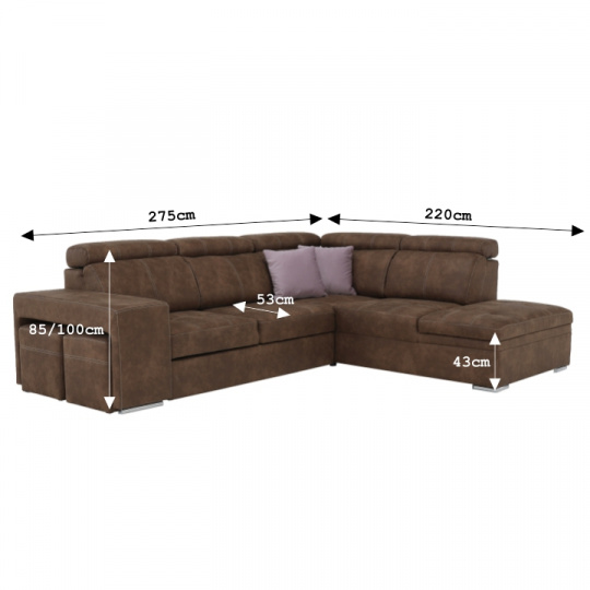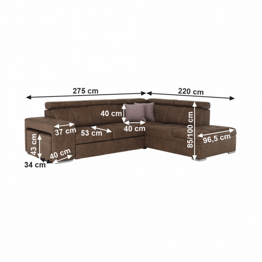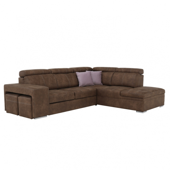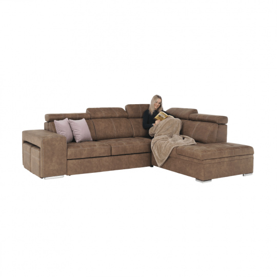 Celočalúnená rohová rozkladacia sedacia súprava s úložným priestorom a s polohovacím záhlavím. Materiál: Látka Preston/ látka Jasmine Oděruodolnost textilie Preston podle testu Martindale: 68 000 oděrek Oděruodolnost textilie Jasmine podle testu Martindale: 90 000 oděrek Farba: hnedá/svetlofialová Pravé prevedenie. Rozmery (ŠxHxV): 275x220x85/100 cm, plocha na spanie (ŠxD): 120x190 cm Výška spodního prostoru od podlahy: 5 cm Výška sedu: 43 cm Hĺbka sedu: 53 cm Dodávané s vankúšmi a s dvoma taburetmi Nosnost na osobu: 90 kg Dodávané v demonte. Máme pro vás hned čtyři barvy látky Preston a čtyři barvy látky Jasmine, kombinovat tedy můžete dle libosti. Cena sedačky na individuální objednávku je 39.790 Kč. Při individuální objednávce je třeba zaplatit 20% zálohu z dané částky. Po uhrazení zálohy bude Váš požadavek zadána do výroby. Dodací doba 6-8 týdnů.