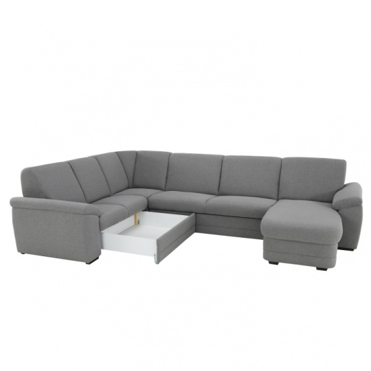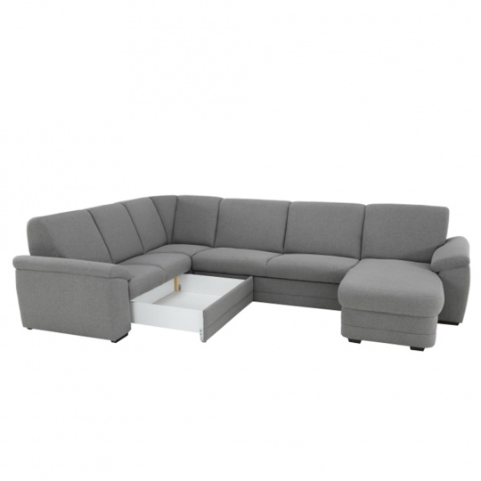Sedací souprava ve tvaru U, látka šedá, pravá, BITER U