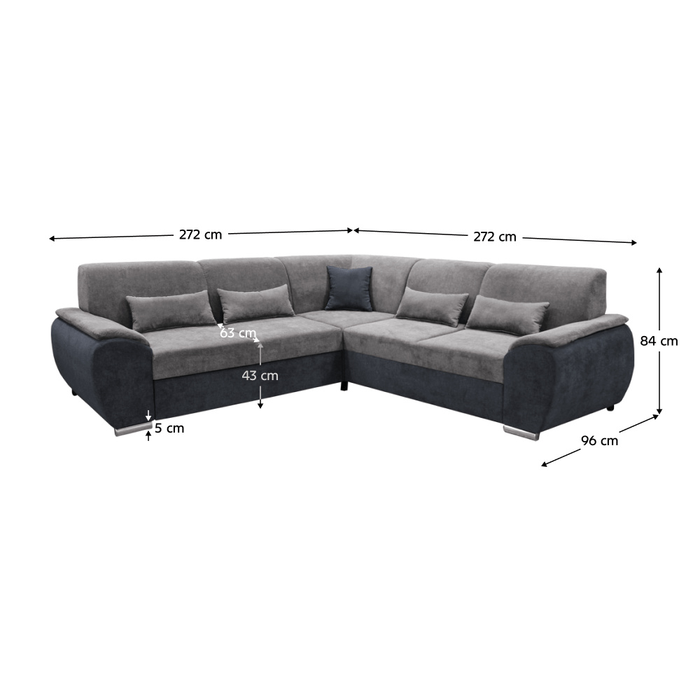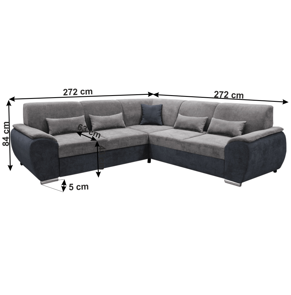 Materiál: látka Soro Oděruodolnost textilie podle testu Martindale: 90 000 - 100 000 oděrů Barva: 97 tmavě šedá / 90 šedá Rozměry: (ŠxHxV): 272/272x96x84 cm Plocha na spaní: (ŠxD): 129x202 cm Výška spodního prostoru od podlahy: 5 cm Nosnost na osobu: 90 kg celočalouněná rohová rozkládací S úložným prostorem levé provedení Dodávané v demontu. Možnost objednání v 6 barevných odstínech látky Soro v ceně 37.190 Kč. Dostupná v kombinaci látka + ekokůže nebo celá v látce. Svůj výběr poznamenejte do poznámky v objednávce. Při individuální objednávce je třeba zaplatit 20% zálohu z dané částky. Po uhrazení zálohy bude Vaša objednávka zadána do výroby. Dodací lhůta 6-8 týdnů.