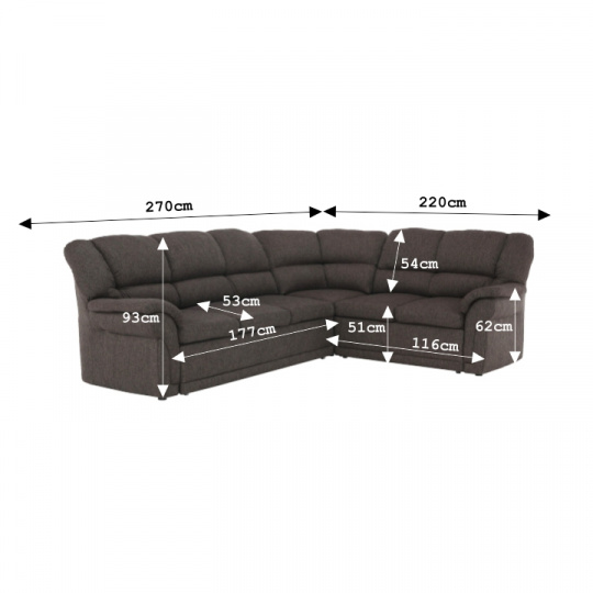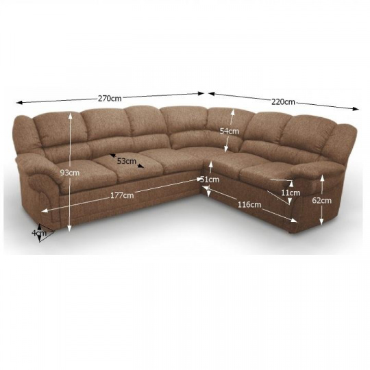 ;"Materiál: látka šenil Oděruodolnost textilie podle testu Martindale: 80 000 oděrek Barva: hnědá Rozměry (ŠxHxV): 270x220x93 cm rozkládací Plocha na spaní: 120x200 cm Výška sed: 45 cm Hloubka sedu: 53 cm Výška sedáku: 45 cm Výška spodního prostoru od podlahy: 2 cm Nosnost: 90 kg Sedací část z pružiny a molitanu úložný prostor rohová pravá Dodávané v demontu Možnost objednání ve 3 barevných provedeních látky Hugo/Inari nebo v 6 barevných provedeních látky Monolith v ceně 29.890 Kč. Při individuální objednávce je třeba zaplatit 20% zálohu z dané částky. Po uhrazení zálohy bude Váš požadavek zadána do výroby. Doba dodání 6-8 týdnů.