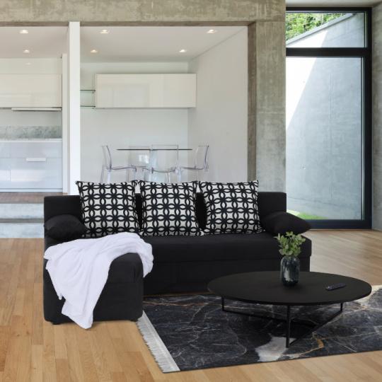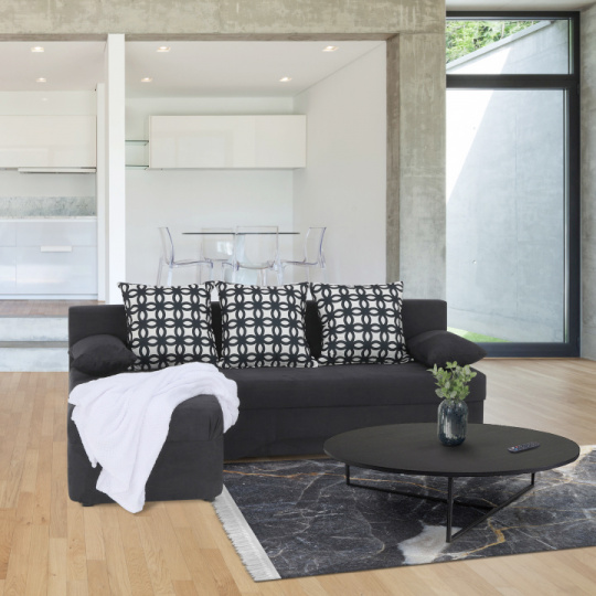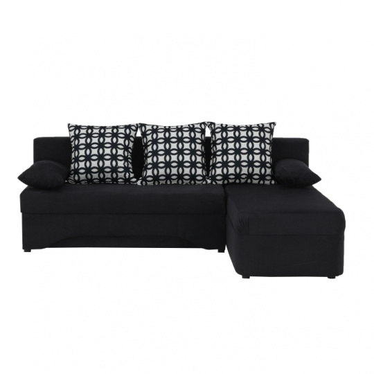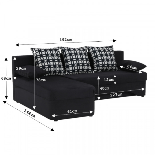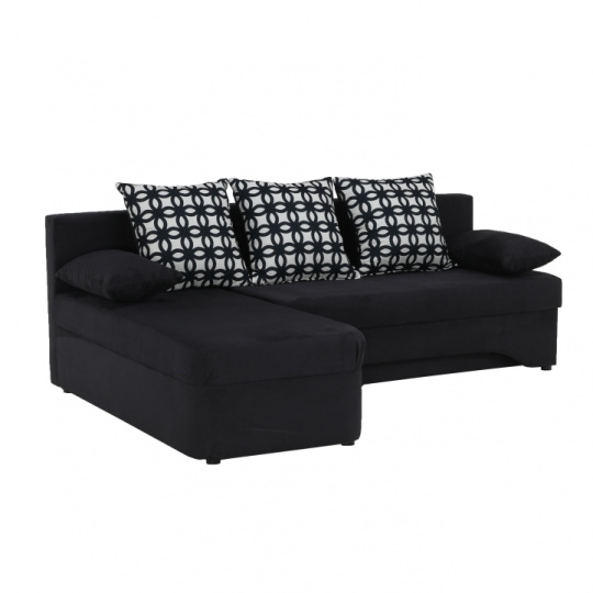 Rohová rozkládací sedací souprava POLARIS NEW Materiál: látka Oděruodolnost textilie podle testu Martindale: 55 000 oděrek Barva: tmavě šedá mix / polštáře vzor Rozměry (ŠxHxV): 191x145x68/78 cm Plocha na spaní (ŠxD): 104x190 cm Výška sedu: 40 Hloubka sedu: 44/64 cm 3 + 2 polštáře. Nosnost na osobu: 90 kg Dodávané v demontu.