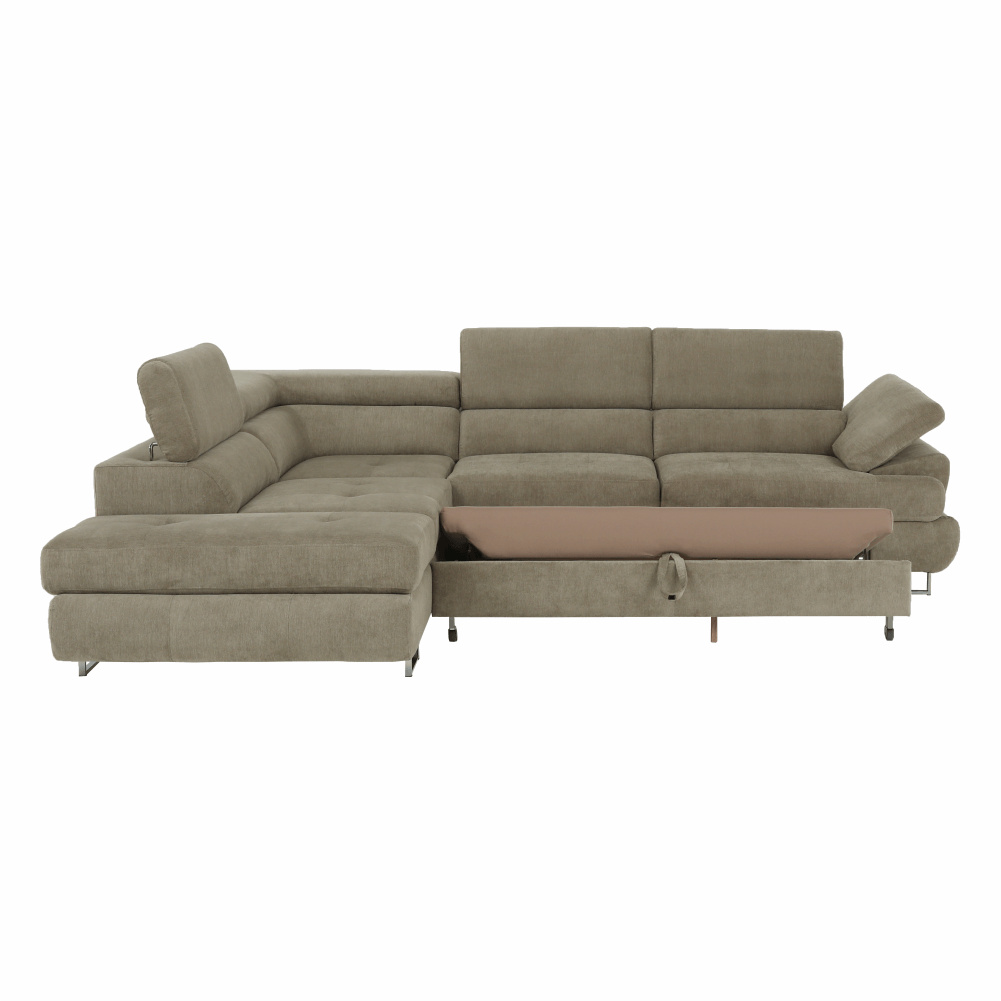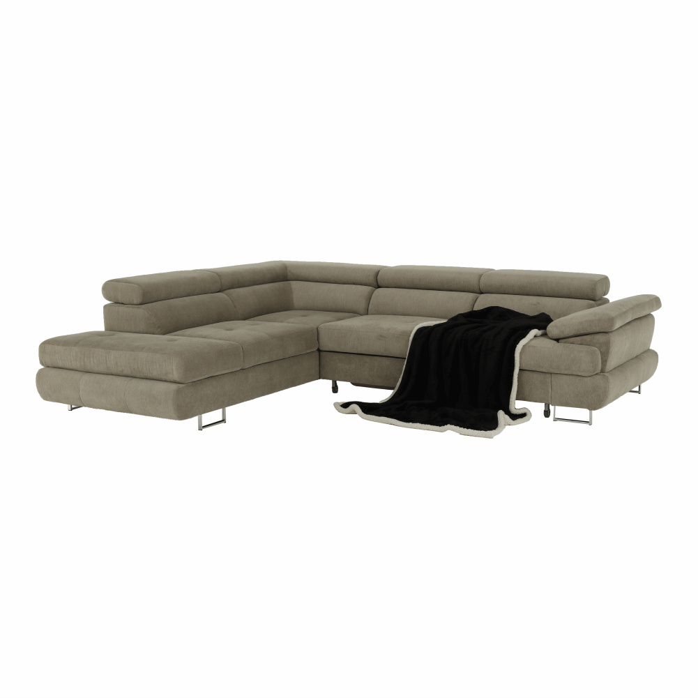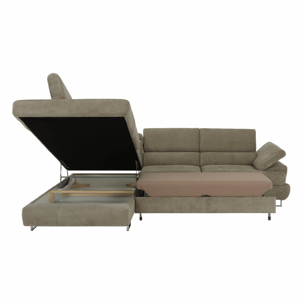 Sedací souprava s úložným prostorem, světle hnědý melír, látka, levá, BUTON R