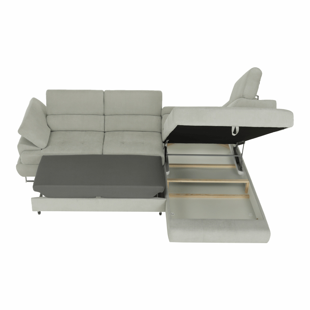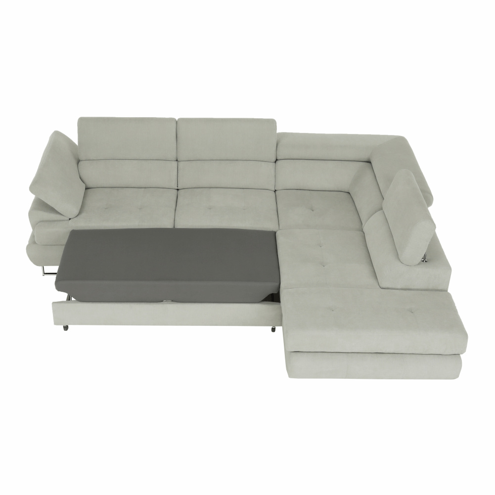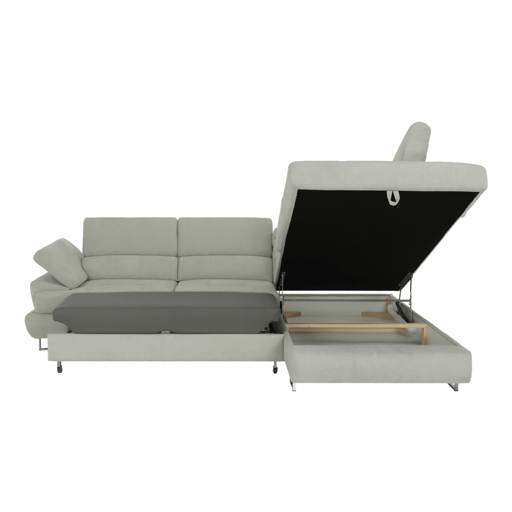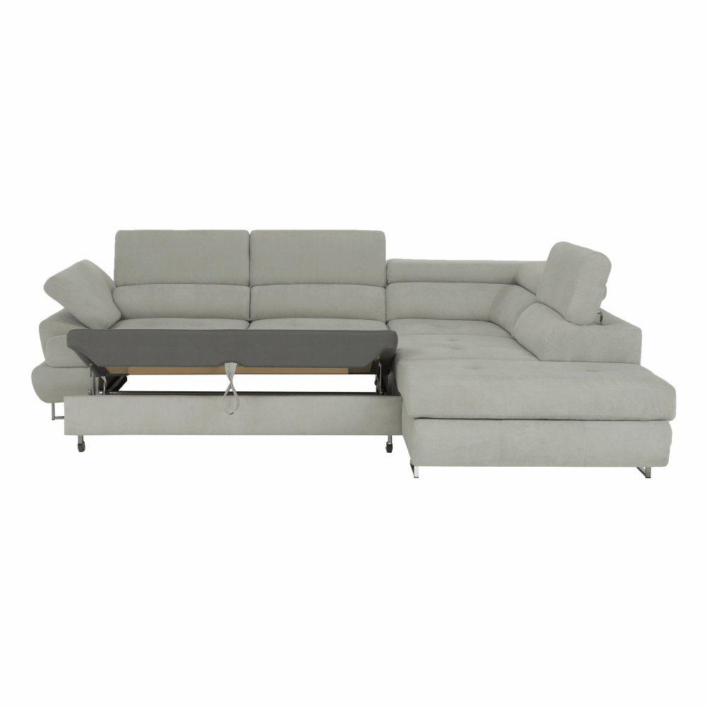Sedací souprava s úložným prostorem, světle šedá, látka, pravá, BUTON R