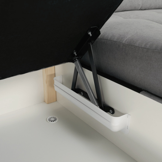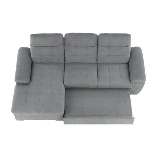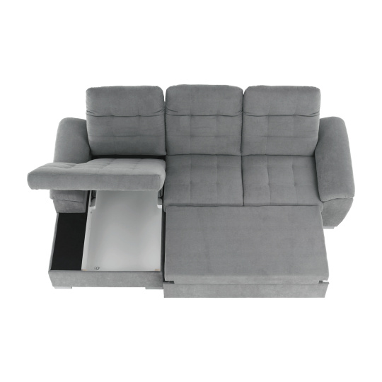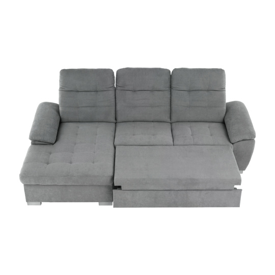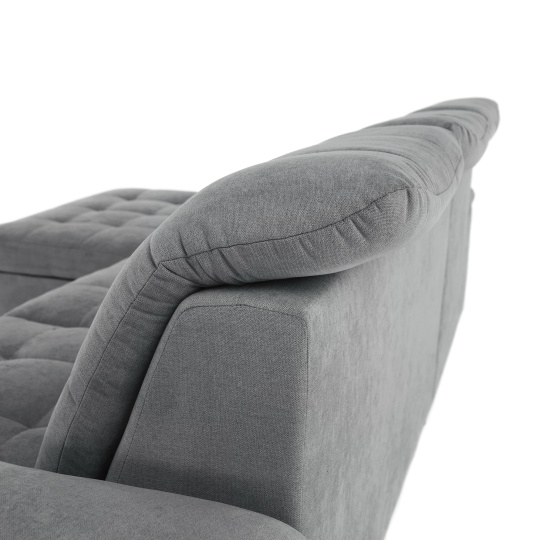Rohová celočalouněná rozkládací sedací souprava s úložným prostorem EVANGELIN Materiál: látka Soro 90 Oděruodolnost textilie podle testu Martindale: 90 000- 100 000 oděrů Barva: šedá Rozměry (ŠxHxV): 258x164x102 / 86 cm Plocha na spaní (ŠxD): 197x126 cm Výška spodního prostoru od podlahy: 5,5 cm Výška sedu: 41 cm Hloubka sedu: 56 cm Délka pohovky s opěrkou: 184 cm Bez opěradla: 172cm Šířka bez boku: 68,5 cm Šířka Otomanů: 96,5 cm (spolu s bokem) Nosnost na osobu: 90 kg Levé provedení. Dodávané bez dekorativních polštářů Polohovací opěrky hlavy. 6 stupňové polohování opěrek Dodávané v demontu.