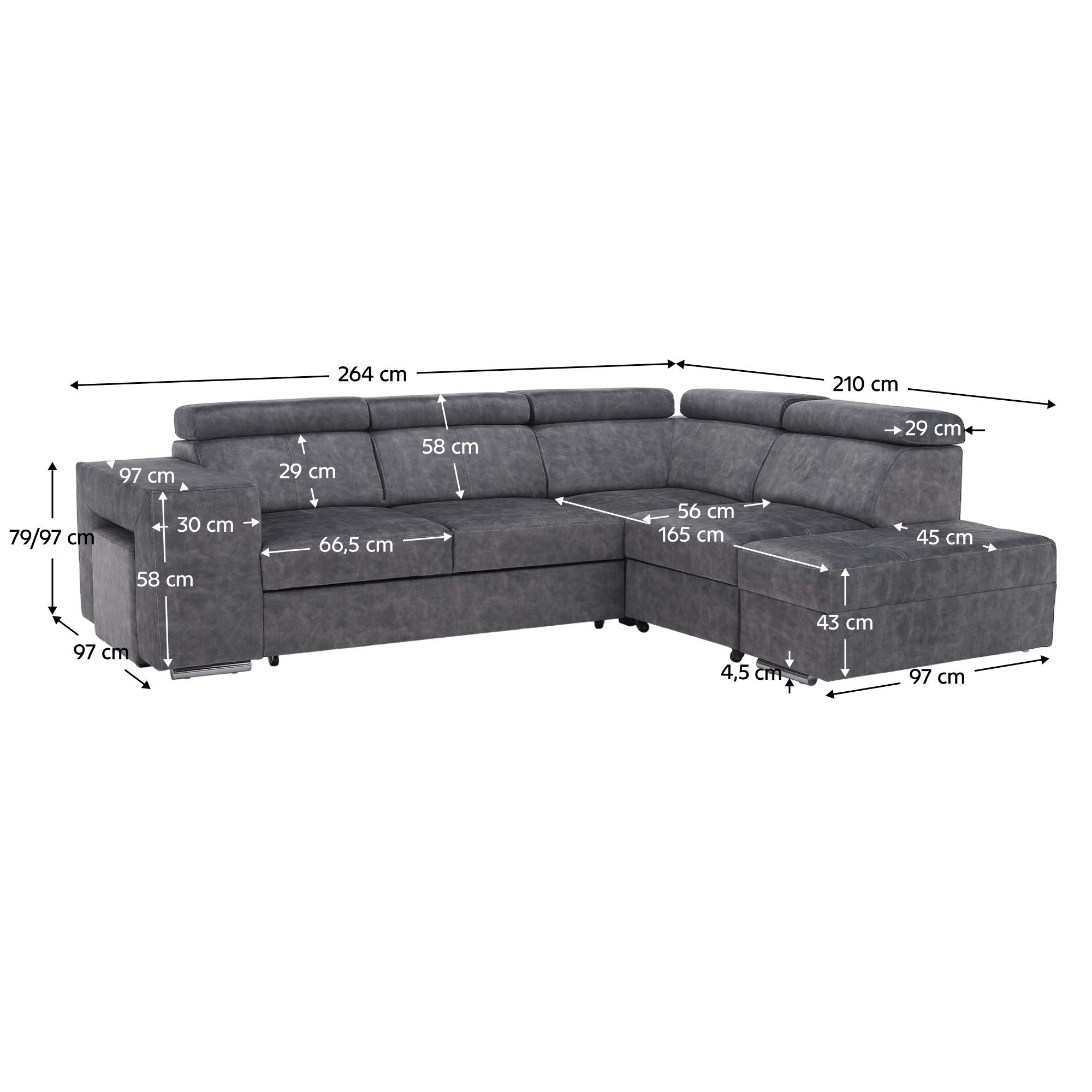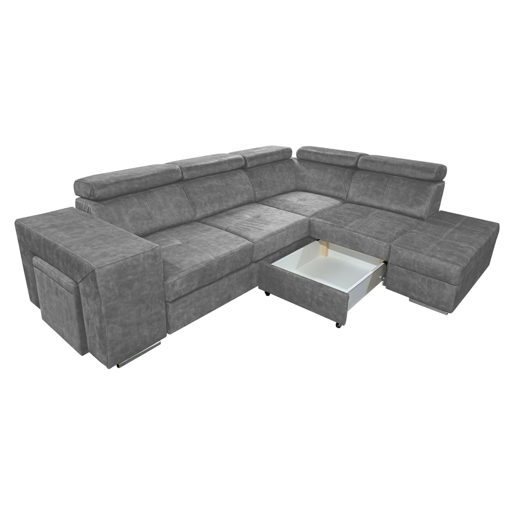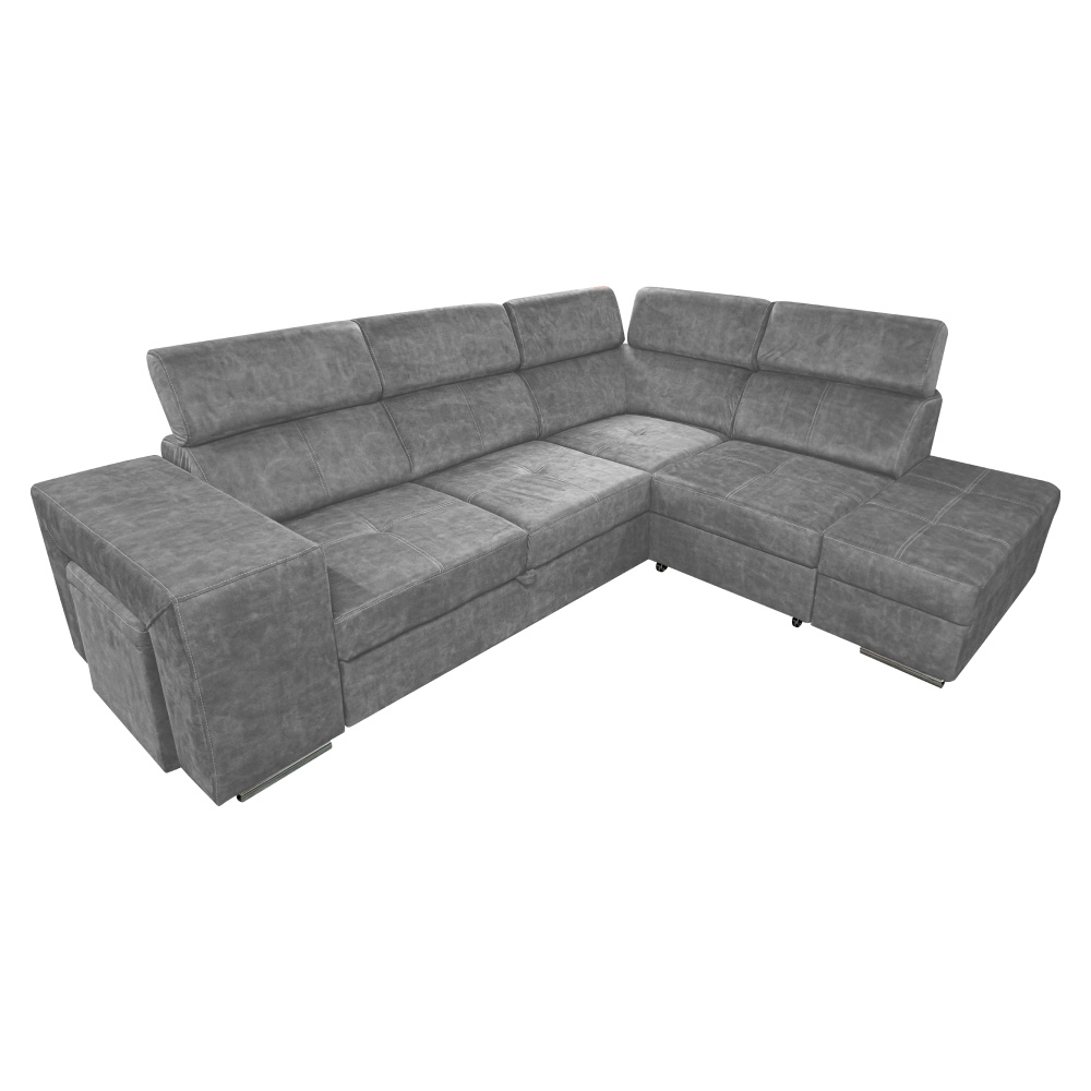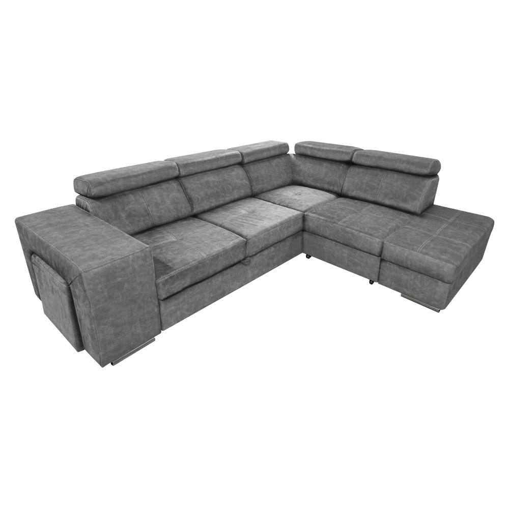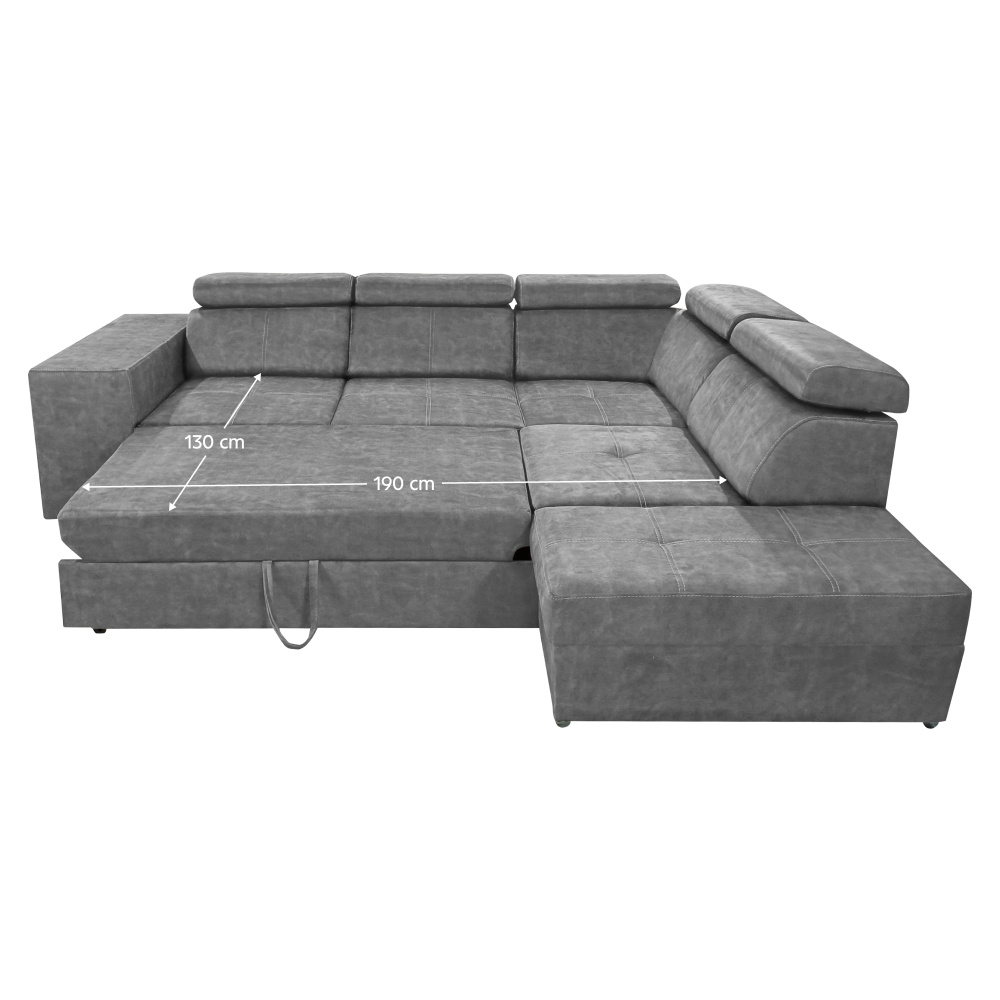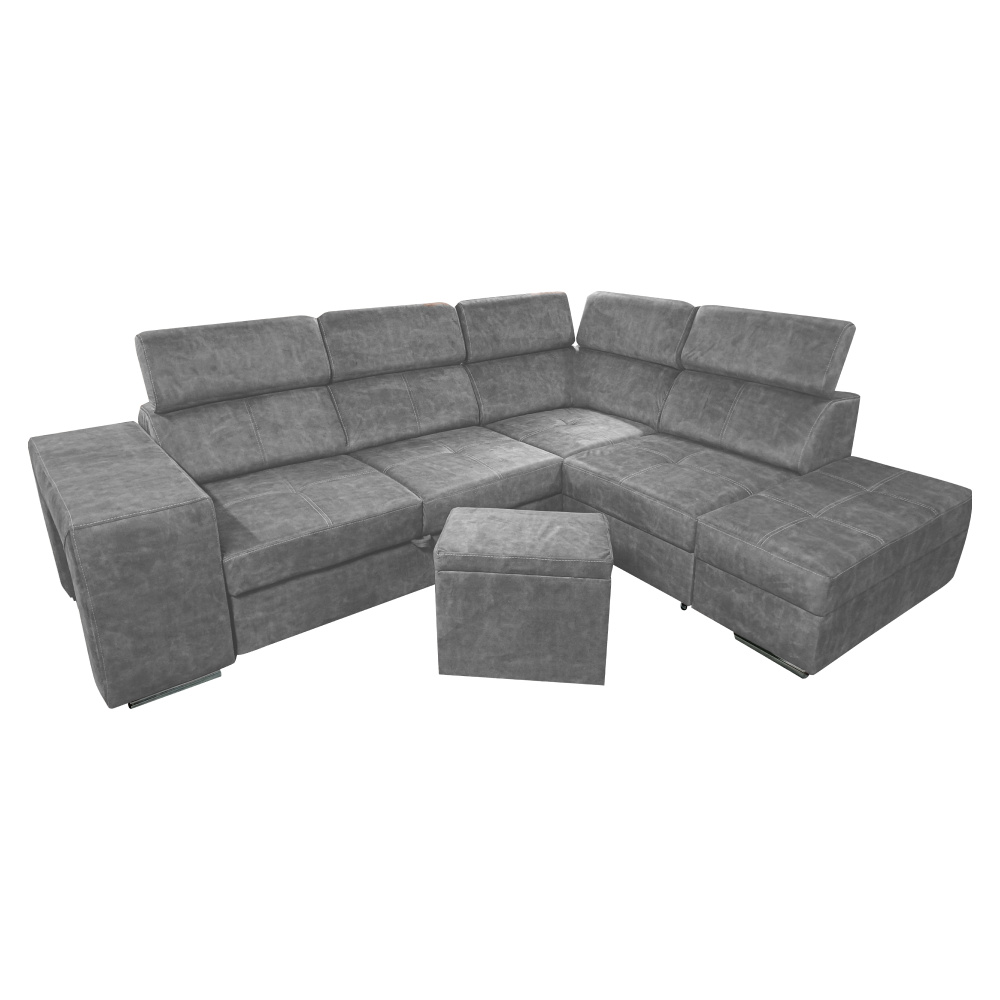 Materiál čalounění: látka Country 17 Oděruodolnost textilie podle testu Martindale: 65 000 oděrů Barva: šedá Materiál konstrukce: borového dřeva/bukového dřeva/laminátová deska Rozměry (ŠxHxV): 264x210x79/97 cm Plocha na spaní (ŠxD): 130x190 cm Výška sedu: 43 cm Hloubka sedu: 56 cm Rozměry otomanu (ŠxH): 97x165 cm Rozměry opěrky na ruku (ŠxHxV): 30x97x58 cm S taburetem Rozměry taburetu (ŠxHxV): 40x33x48 cm Celočalouněná Rozkládací Rohová S úložným prostorem Pravé provedení Na nožičkách Barva nožiček: chromová Výška spodního prostoru od podlahy: 4,5 cm Polohovací opěrky hlavy 5 stupňové polohování opěrek Výplň: pružina falista/pur pěna/molitan Dodáváno v demontu Možnost objednání v 8 barevných odstínech látky Country v ceně 35 990 Kč. s dodací lhůtou 6-8 týdnů. Při individuální objednávce je třeba zaplatit 20% zálohu z dané částky. Po uhrazení zálohy bude Váš požadavek zadán do výroby.