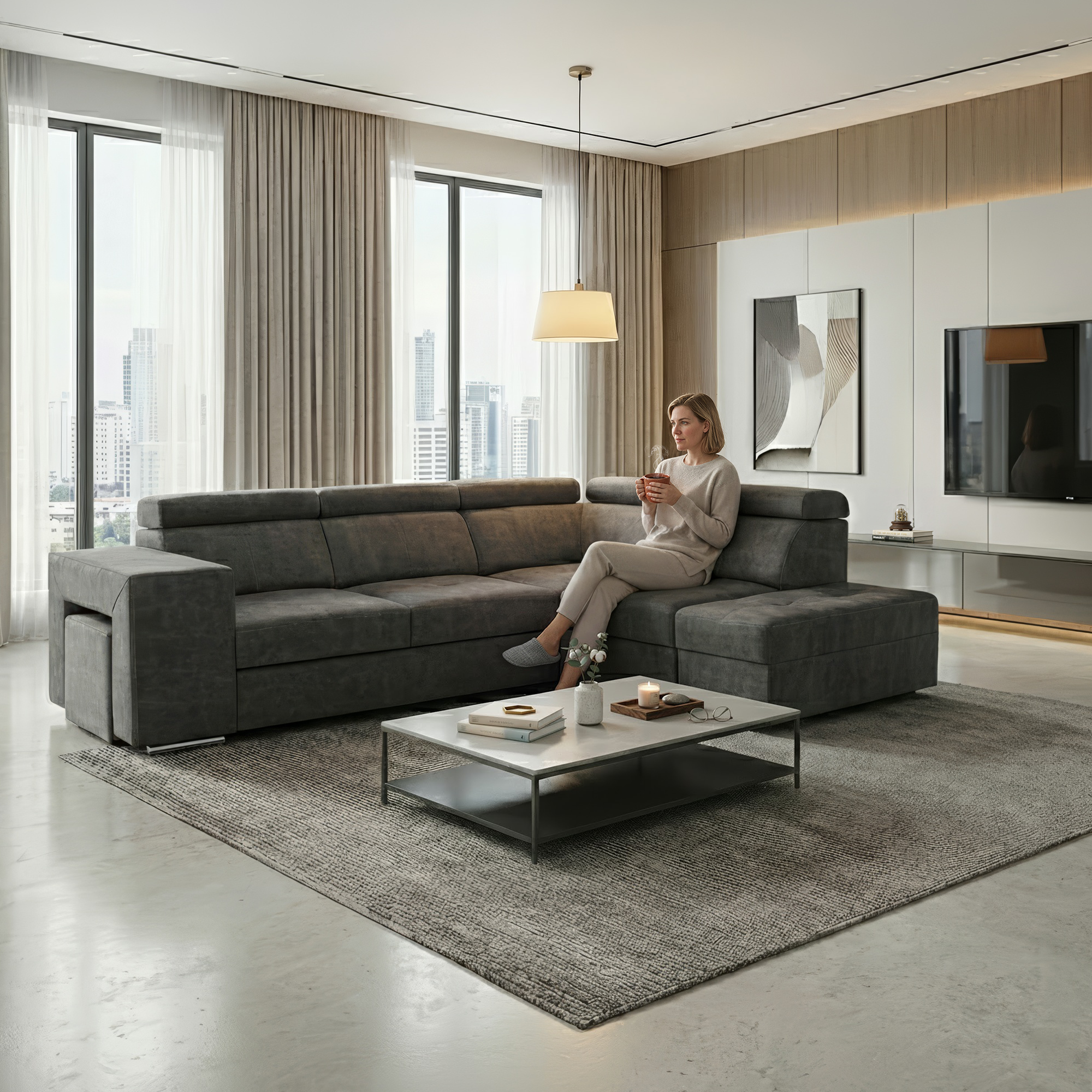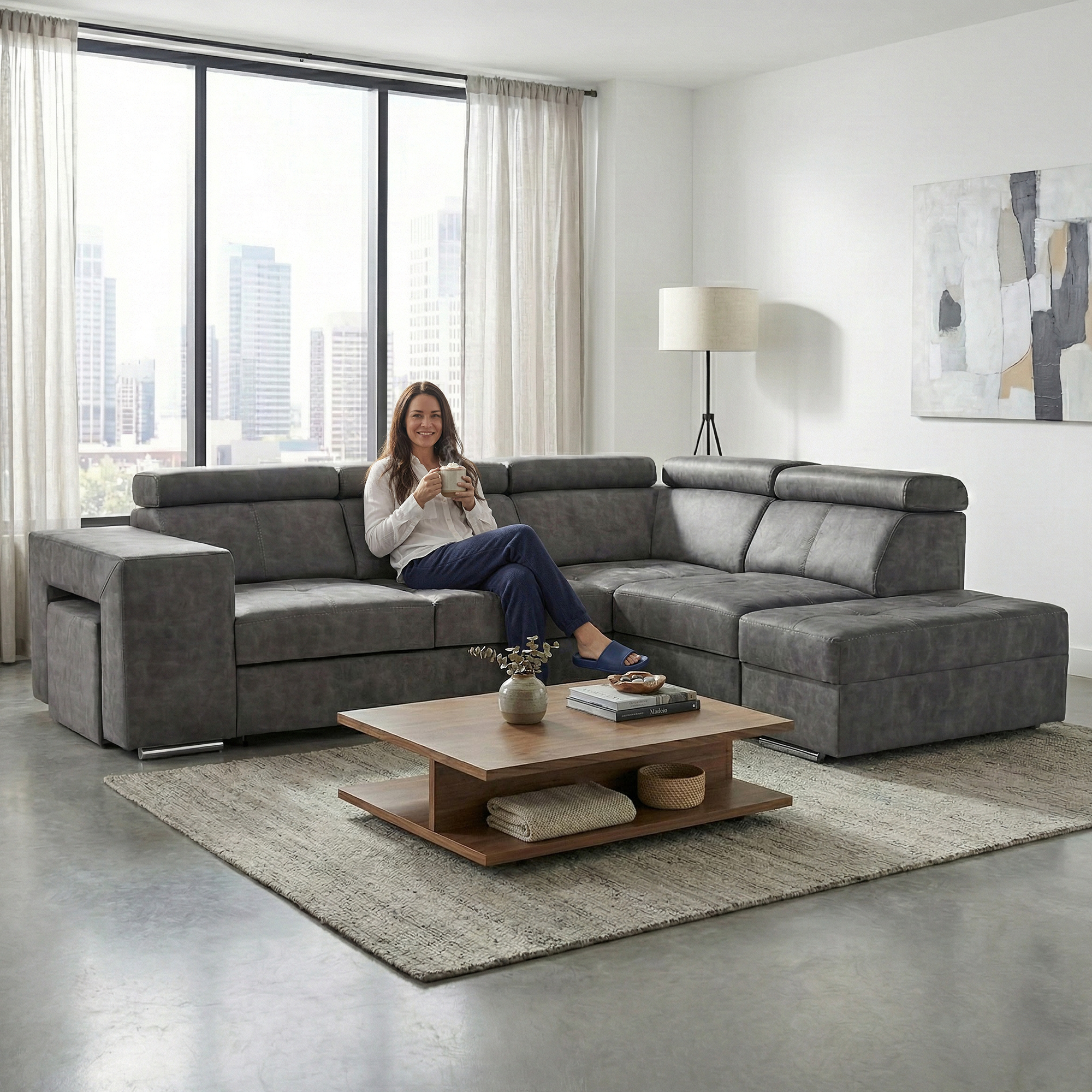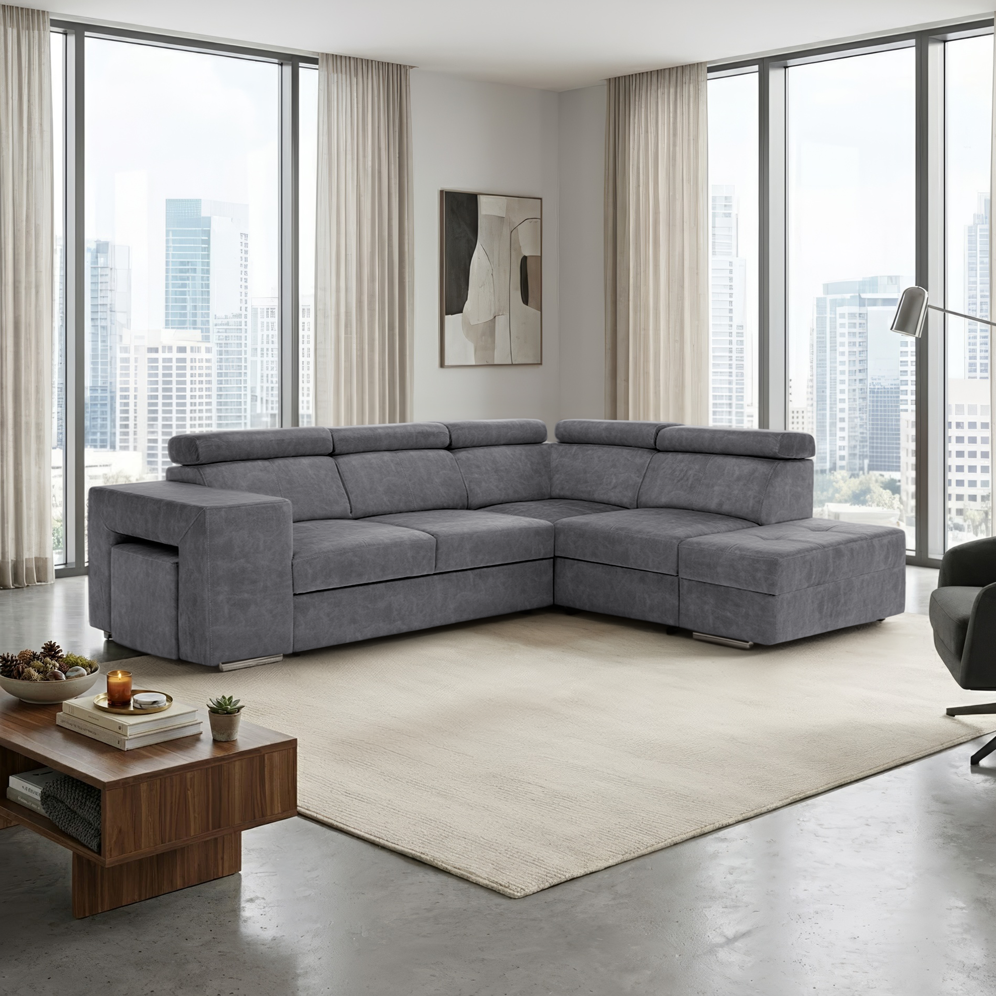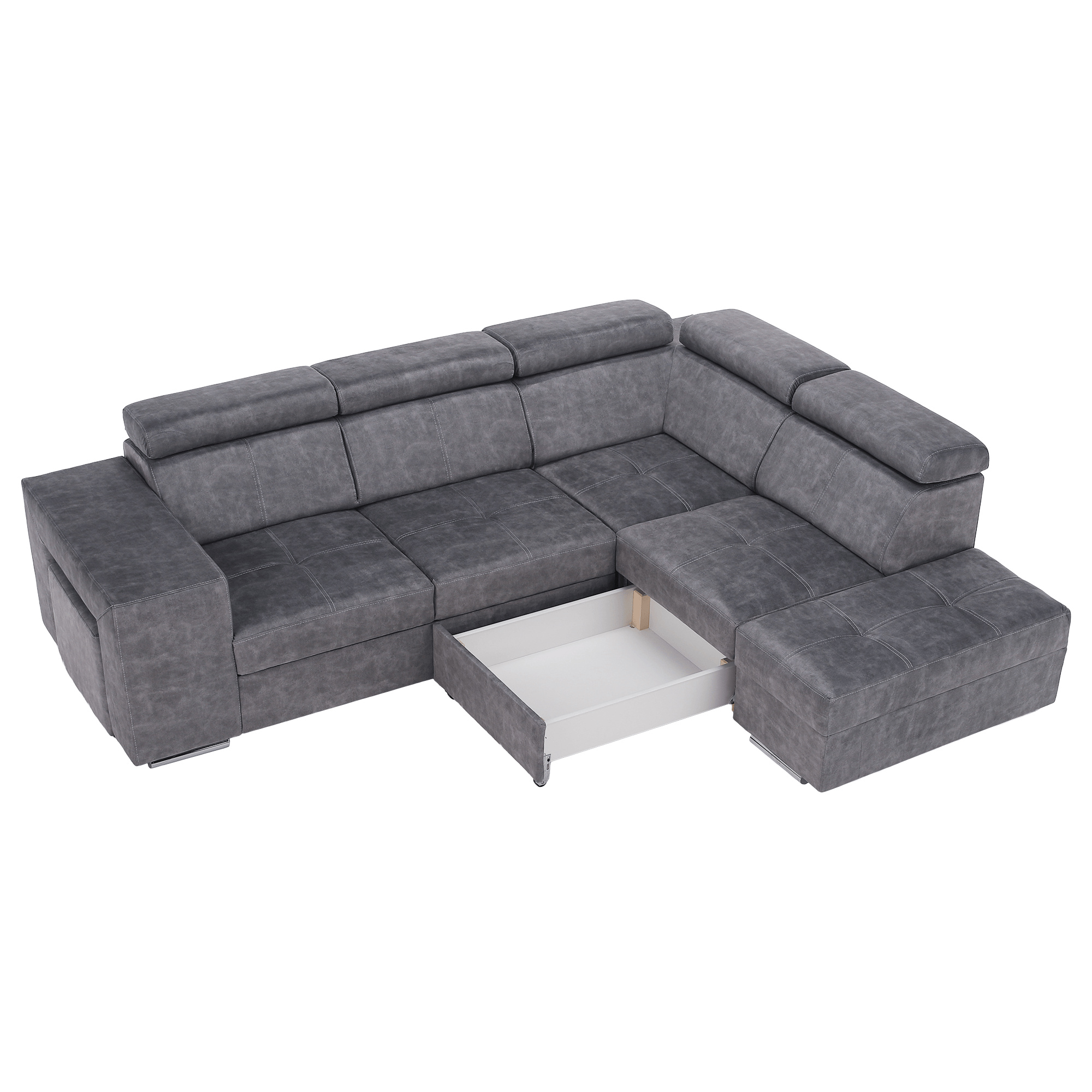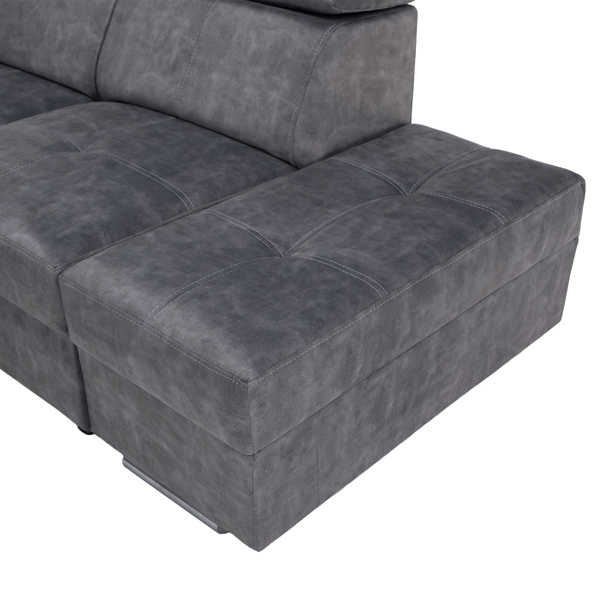 Materiál čalounění: látka Country 17 Oděruodolnost textilie podle testu Martindale: 65 000 oděrů Barva: šedá Materiál konstrukce: borového dřeva/bukového dřeva/laminátová deska Rozměry (ŠxHxV): 264x210x79/97 cm Plocha na spaní (ŠxD): 130x190 cm Výška sedu: 43 cm Hloubka sedu: 56 cm Rozměry otomanu (ŠxH): 97x165 cm Rozměry opěrky na ruku (ŠxHxV): 30x97x58 cm S taburetem Rozměry taburetu (ŠxHxV): 40x33x48 cm Celočalouněná Rozkládací Rohová S úložným prostorem Pravé provedení Na nožičkách Barva nožiček: chromová Výška spodního prostoru od podlahy: 4,5 cm Polohovací opěrky hlavy 5 stupňové polohování opěrek Výplň: pružina falista/pur pěna/molitan Dodáváno v demontu Možnost objednání v 8 barevných odstínech látky Country v ceně 35 990 Kč. s dodací lhůtou 6-8 týdnů. Při individuální objednávce je třeba zaplatit 20% zálohu z dané částky. Po uhrazení zálohy bude Váš požadavek zadán do výroby.