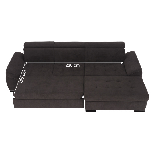 ;"Materiál: látka Alfa 120 Oděruodolnost textilie podle testu Martindale: 55 000 oděrek Barva: 20 šedá Rozměry (ŠxHxV): 298x175x96 / 105 cm plocha na spaní (ŠxD): 125x220 cm Výška sedu: 43 cm Hloubka sedu: 62 cm Výška spodního prostoru od podlahy: 5 cm Šířka otomanu: 115/120 cm Hloubka otomanu: 140 cm Nosnost na osobu: 90 kg celočalouněná rohová rozkládací S úložným prostorem Dodávána s polštáři S polohovacími opěrkami hlavy 5 polohovacích opěrek pravé provedení Dodávané v demontu. Možnost objednání v 8 barevných provedeních látky Alfa v ceně 41.590 Kč. Při individuální objednávce je třeba zaplatit 20% zálohu z dané částky. Po uhrazení zálohy bude Vaša objednávka zadána do výroby. Dodací lhůta 6-8 týdnů.