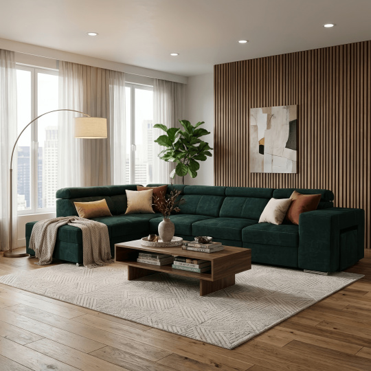 Materiál čalounění: látka Country 11 Oděruodolnost textilie podle testu Martindale: 65 000 oděrů Barva: smaragdová Materiál konstrukce: borové dřevo/bukové dřevo/laminátová deska Rozměry (ŠxHxV): 334x210x79/97 cm Plocha na spaní (ŠxD): 130x190 cm Výška sedu: 43 cm Hloubka sedu: 56 cm Rozměry otomanu (ŠxH): 97x165 cm Rozměry opěrky na ruku (ŠxHxV): 30x97x58 cm S taburetem Rozměry taburetu (ŠxHxV): 40x33x48 cm Celočalouněná Rozkládací Rohová S úložným prostorem Levé provedení Na nožičkách Barva nožiček: chromová Výška spodního prostoru od podlahy: 4,5 cm Polohovací opěrky hlavy 5 stupňové polohování opěrek Výplň:pružina falista/pur pěna/molitan Dodáváno v demontu Možnost objednání v 8 barevných odstínech látky Country v ceně 40 590 Kč. s dodací lhůtou 6-8 týdnů. Při individuální objednávce je třeba zaplatit 20% zálohu z dané částky. Po uhrazení zálohy bude Váš požadavek zadán do výroby.