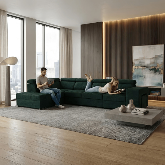 Sedací souprava, smaragdová, levá, MALAGA BIG