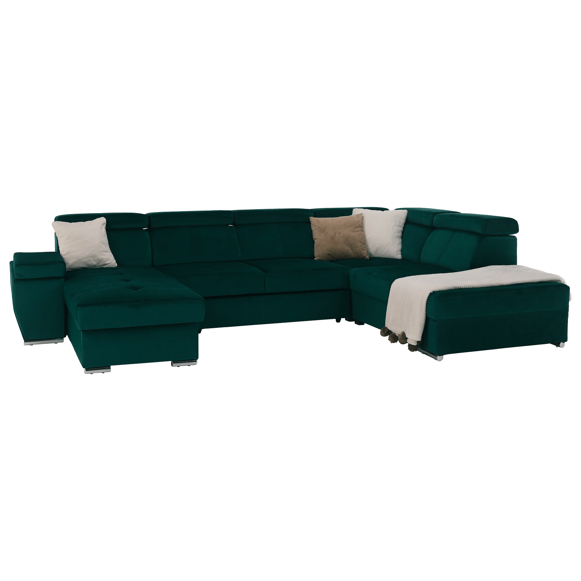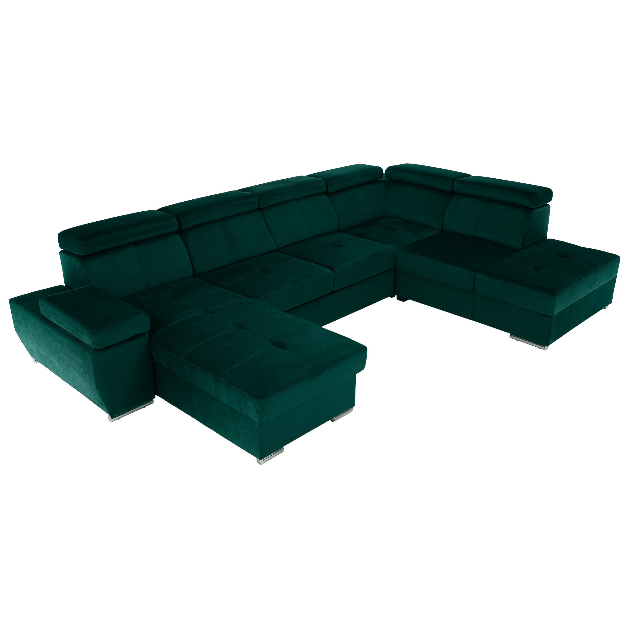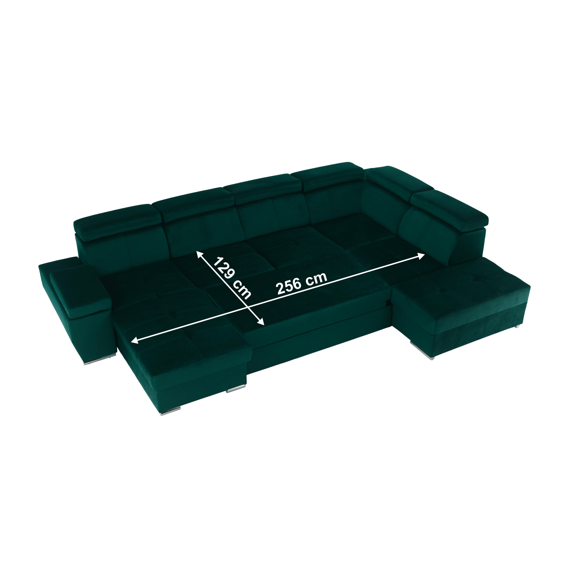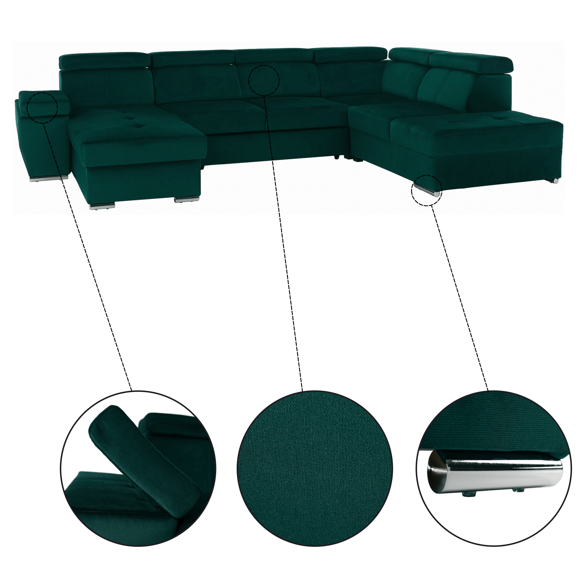Materiál: látka KRONOS Oděruodolnost textilie podle testu Martindale: 50 000 oděrek Barva: smaragdová 19 Rozměry: (ŠxHxV): 333x220x79 / 97 cm Rozměry plochy na spaní (ŠxD): 256x129 cm Hloubka sedu: 57 cm Výška sedu: 41 cm Výška spodního prostoru od podlahy: 4,5 cm Šířka volného prostoru mezi otomany: 133 cm 6 polohovacích opěrek hlavy 5 stupňové polohování opěrek 1 polohovací opěrka ruky S úložným prostorem rozkládací celočalouněná Exkluzivní a moderní vzhled Levé provedení Výplň sezení: pružiny faliste a pur pěna T30KG / m3, tloušťka pěny 10 cm Výplň opěrky: elastické pásy a pur pěna T25 / m3, tloušťka pěny 7 cm Dekorativní polštáře nejsou součástí balení Dodávané v demontu Možnost objednání v 6 barevných provedeních látky Kronos za cenu 39.950 Kč. Při individuální objednávce je třeba zaplatit 20% zálohu z dané částky. Po uhrazení zálohy bude Váš požadavek zadán do výroby. Dodací lhůta 6-8 týdnů.