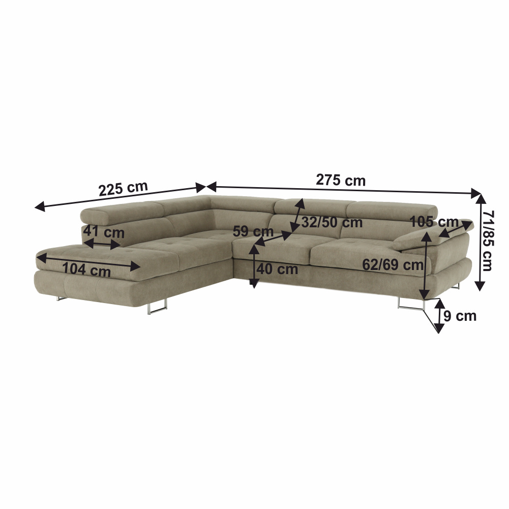 Materiál: látka Soro 13 Oděruodolnost textilie podle testu Martindale: 90 000- 100 000 oděrů Barva: světle hnědý melír Rozměry (ŠxHxV): 275x225x71/85 cm. Výška sedu: 40 cm Hloubka sedu: 59 cm Výška spodního prostoru od podlahy: 9 cm Výška zádové opěrky: 32/50 cm Hloubka sklopené zádové opěrky: 41 cm Opěrka na ruku (HxV): 105x62/69 cm Šířka otomanu: 104 cm Nosnost: 90 kg Rohová Dekorativní prošití Zajímavá opěrka 3 polohovací opěrky hlavy 5 stupňové polohování opěrek Celočalouněná Pružinová výplň Nožičky kovové s povrchovou úpravou chrom Levé provedení Dodáváno bez dekorativních polštářků Dodáváno v demontu Nabízíme vám možnost objednat si sedačku v 7 barevných provedeních látky Soro dle vzorníku. Váš výběr napište přímo do poznámky v objednávce. Cena sedačky na individuální objednávku je verze s rozkladem a úložným prostorem BUTON R 40.250 Kč a pevná verze bez úložného prostoru BUTON P 37.090 Kč. Při individuální objednávce je třeba zaplatit 20% zálohu z dané částky. Po uhrazení zálohy bude Váš požadavek zadán do výroby. Doba dodání 6-8 týdnů.