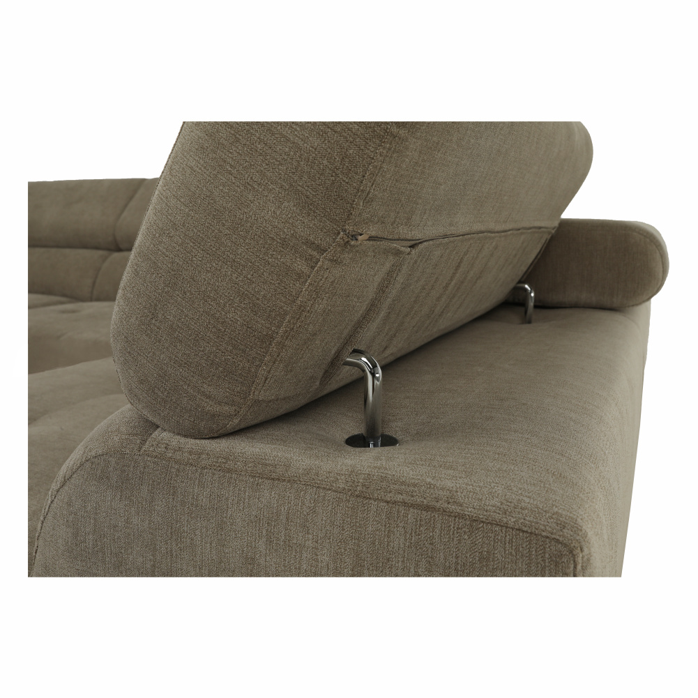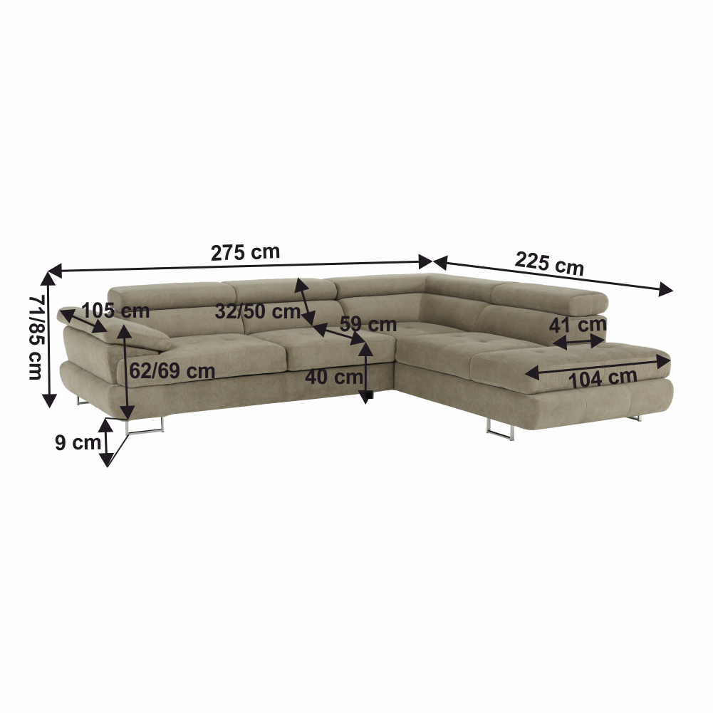 Materiál: látka Soro 13 Oděruodolnost textilie podle testu Martindale: 90 000- 100 000 oděrů Barva: světle hnědý melír Rozměry (ŠxHxV): 275x225x71/85 cm. Výška sedu: 40 cm Hloubka sedu: 59 cm Výška spodního prostoru od podlahy: 9 cm Výška zádové opěrky: 32/50 cm Hloubka sklopené zádové opěrky: 41 cm Opěrka na ruku (HxV): 105x62/69 cm Šířka otomanu: 104 cm Nosnost: 90 kg Rohová Dekorativní prošití Zajímavá opěrka 3 polohovací opěrky hlavy 5 stupňové polohování opěrek Celočalouněná Pružinová výplň Nožičky kovové s povrchovou úpravou chrom Pravé provedení Dodáváno bez dekorativních polštářků Dodáváno v demontu Nabízíme vám možnost objednat si sedačku v 7 barevných provedeních látky Soro dle vzorníku. Váš výběr napište přímo do poznámky v objednávce. Cena sedačky na individuální objednávku je verze s rozkladem a úložným prostorem BUTON R 41.450 Kč a pevná verze bez úložného prostoru BUTON P 38.190 Kč. Při individuální objednávce je třeba zaplatit 20% zálohu z dané částky. Po uhrazení zálohy bude Váš požadavek zadán do výroby. Doba dodání 6-8 týdnů.