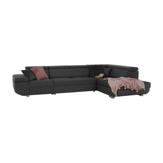 Materiál: látka Stark Oděruodolnost textilie podle testu Martindale: 50 000 oděrek Barva: 382 tmavě šedá Rozměry (ŠxHxV): 345x220x103 cm Plocha na spaní (ŠxD): 118x184 cm Výška sedu: 42 cm Hloubka sedu: 53 cm Výška spodního prostoru od podlahy: 5 cm celočalouněná rohová rozkládací kovové nožičky 4 polohovací opěrky hlavy a krční páteře Opěrka na ruce s funkcí sklápění S úložným prostorem pravé provedení Voděodolný materiál Dodávané v demontu. Nabízíme možnost objednat sedačku až v 6 barevných provedeních látky Stark v ceně 43.390,- Kč. Při individuální objednávce je třeba zaplatit 20% zálohu z dané částky. Po uhrazení zálohy bude Váš požadavek zadána do výroby. Doba dodání 6-8 týdnů.