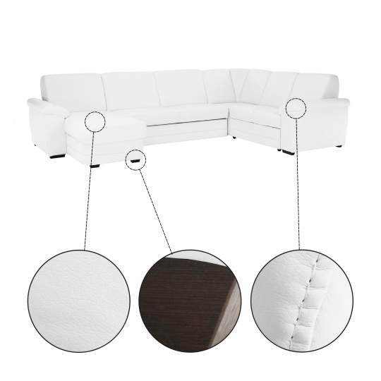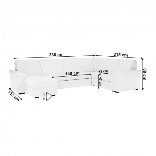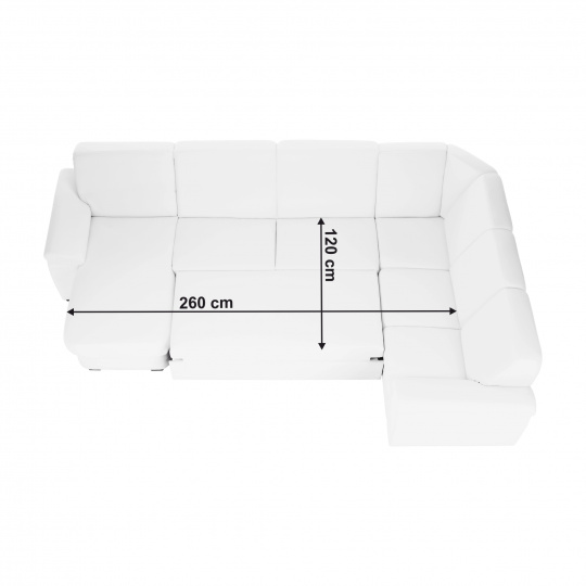 Materiál: ekokůže Oděruodolnost textilie podle testu Martindale: 100 000 oděrů Barva: bílá Rozměry (ŠxHxV): 330x215/153x88 Plocha na spaní (ŠxD): 120x260 cm Výška sedu: 47 cm Hloubka sedu: 53 cm Šířka volného prostoru mezi otomany: 148 cm Výška spodního prostoru od podlahy: 3 cm Pružinová výplň Možnost poskládat si vlastní rozměr Ve tvaru U Levé provedení Rozkládací S úložným prostorem Dodávána v demontu Nabízíme vám možnost zvolit si barevný odstín ze sedmi barev látky Cablo a ze sedmi barev ekokůže. Odstíny naleznete v přiloženém vzorníku. Výběr barevného odstínu poznamenejte při objednávání přímo do poznámky. Při individuální objednávce je třeba zaplatit 20% zálohu z dané částky. Po uhrazení zálohy bude Váš požadavek zadán do výroby. Dodací doba 6-8 týdnů. Cena takto složené sedačky v jiné barvě závisí na počtu jednotlivých dílů, které ji tvoří. Doporučujeme prověřit si konečnou cenu.
