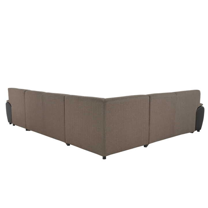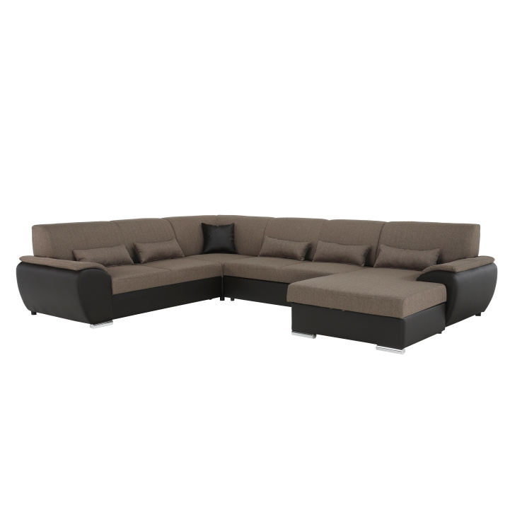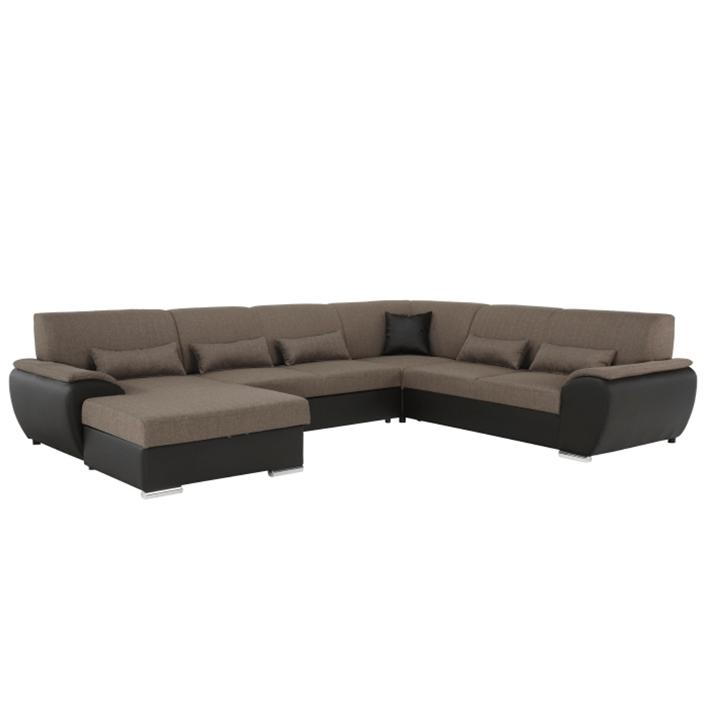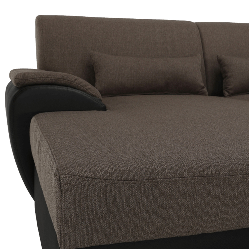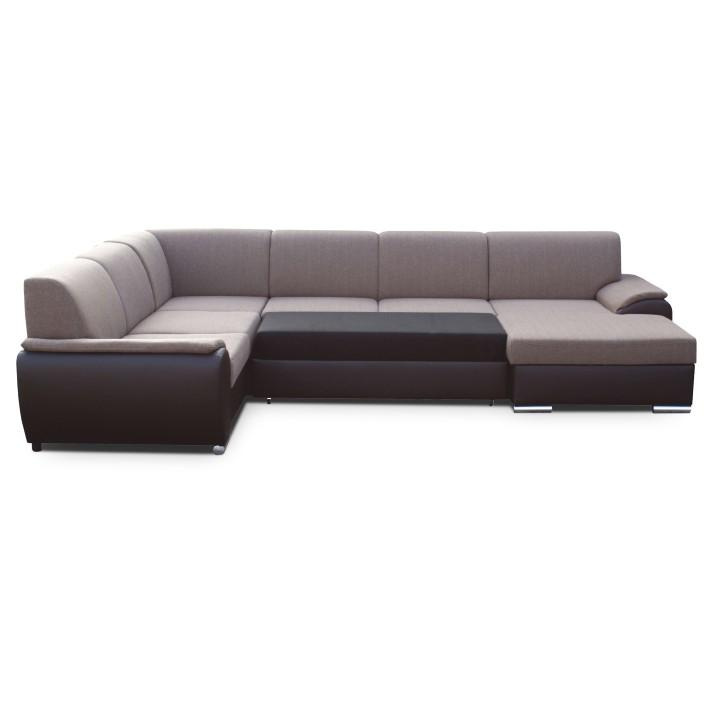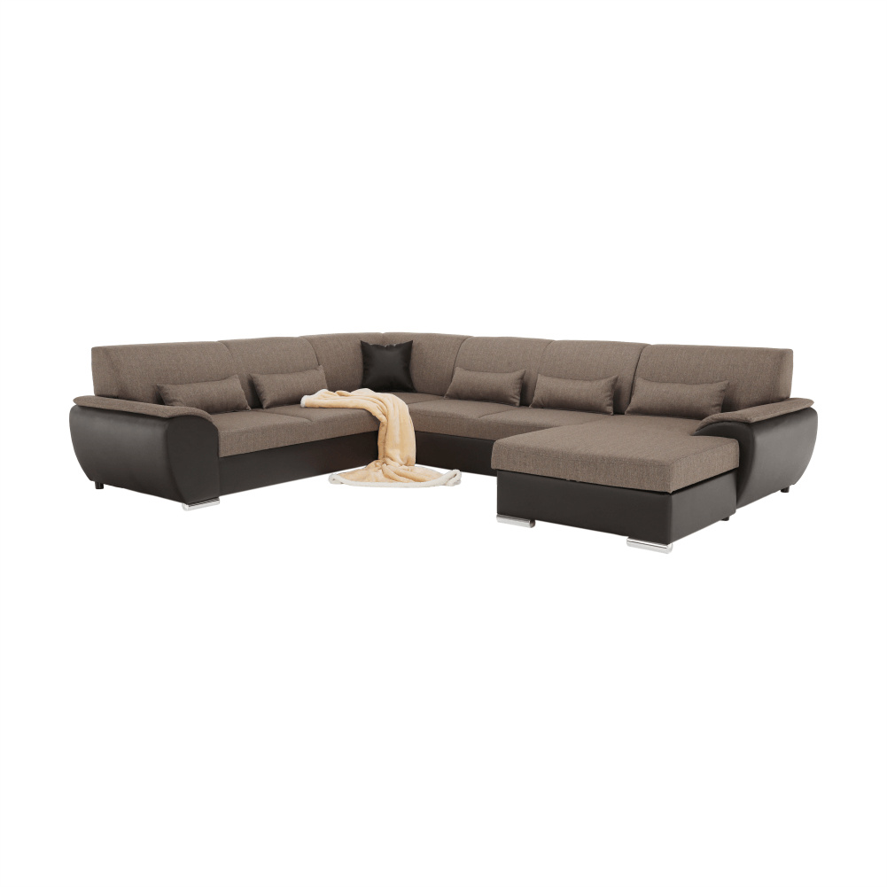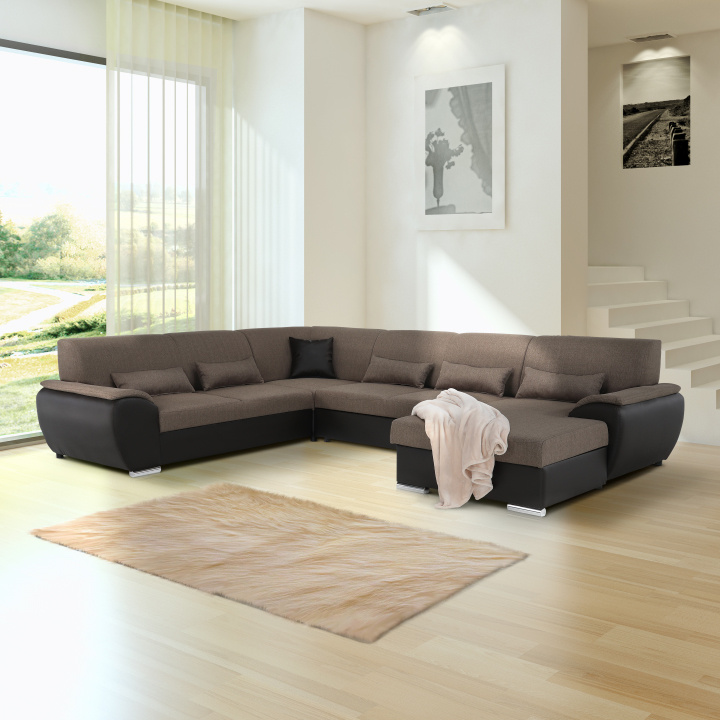 Sedací souprava ve tvaru U, látka hnědá / ekokůže hnědá, pravá, EMILY U