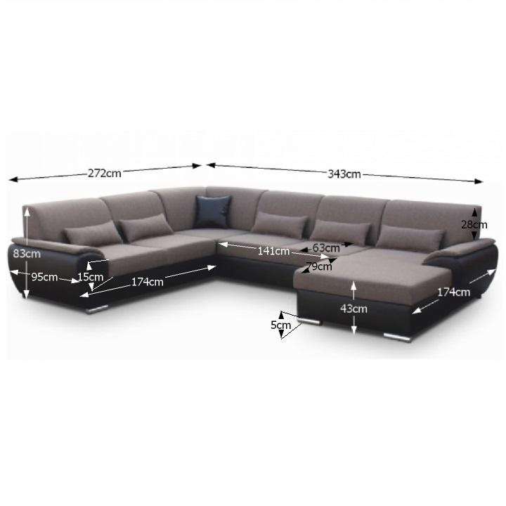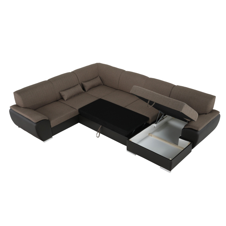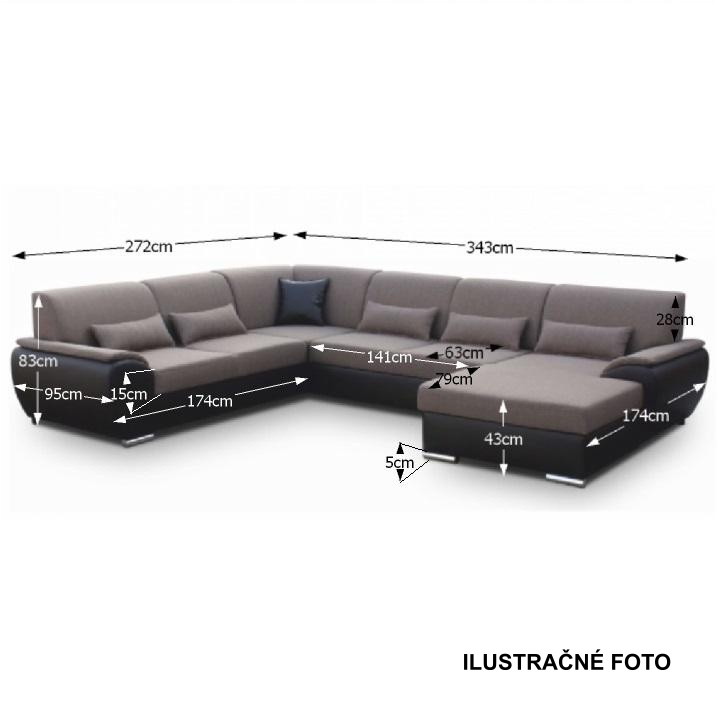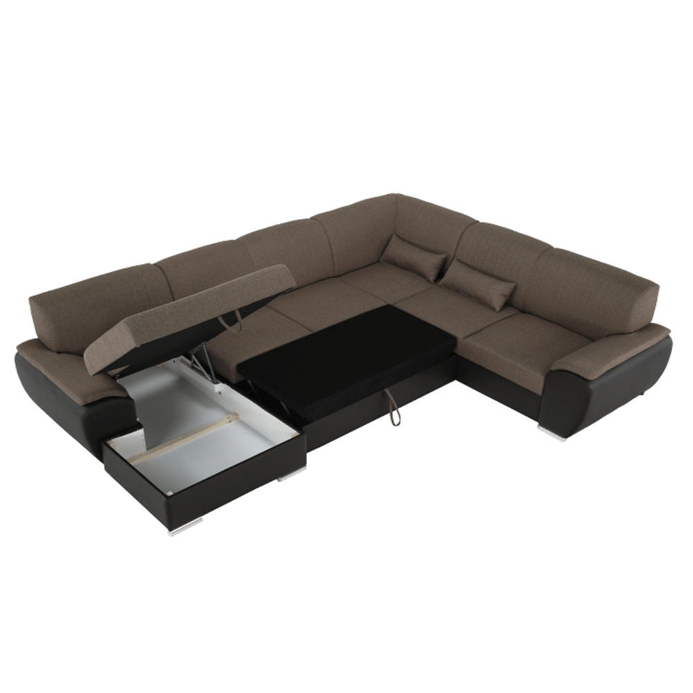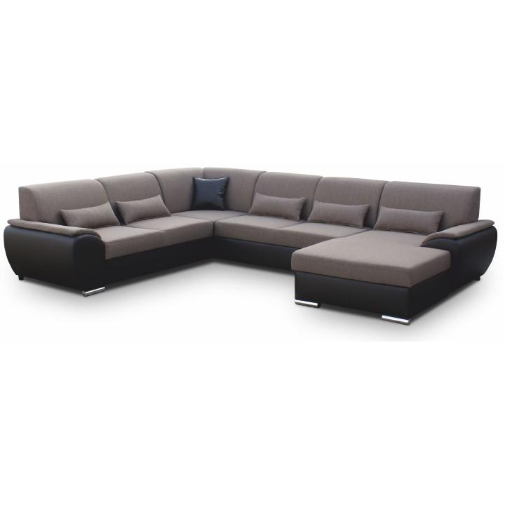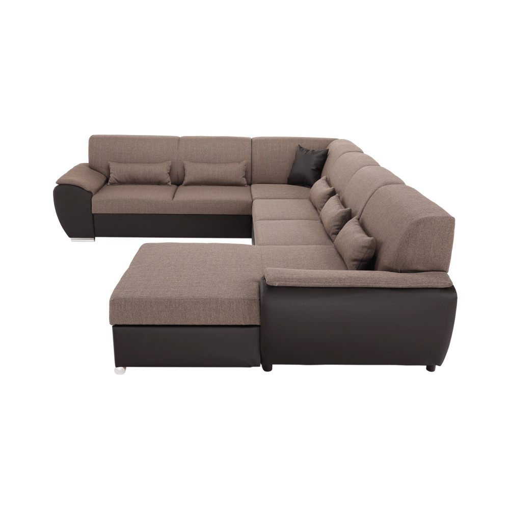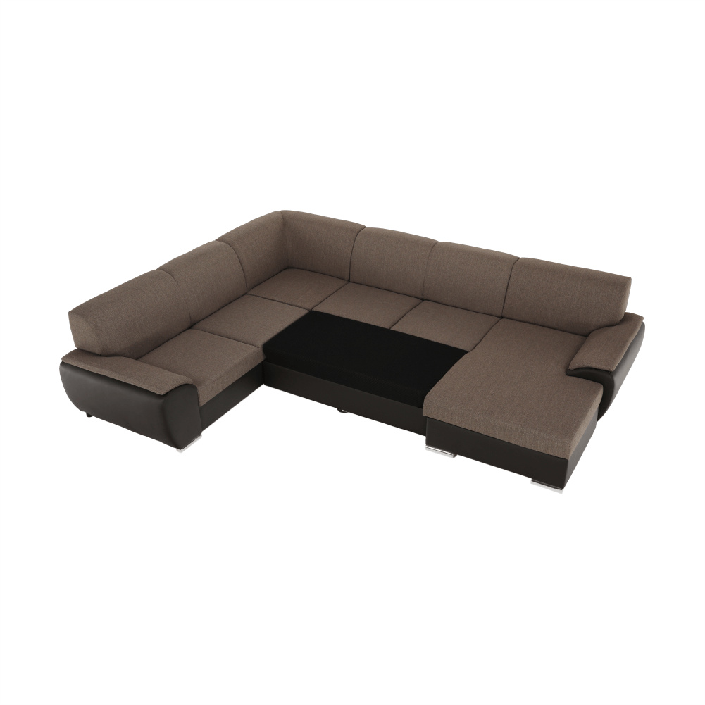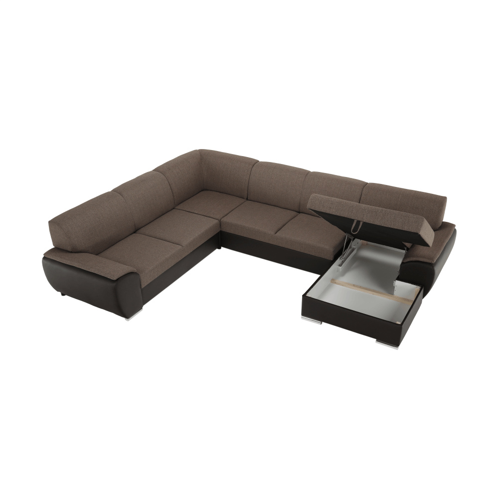 Sedací souprava ve tvaru U, látka hnědá / ekokůže hnědá, pravá, EMILY U