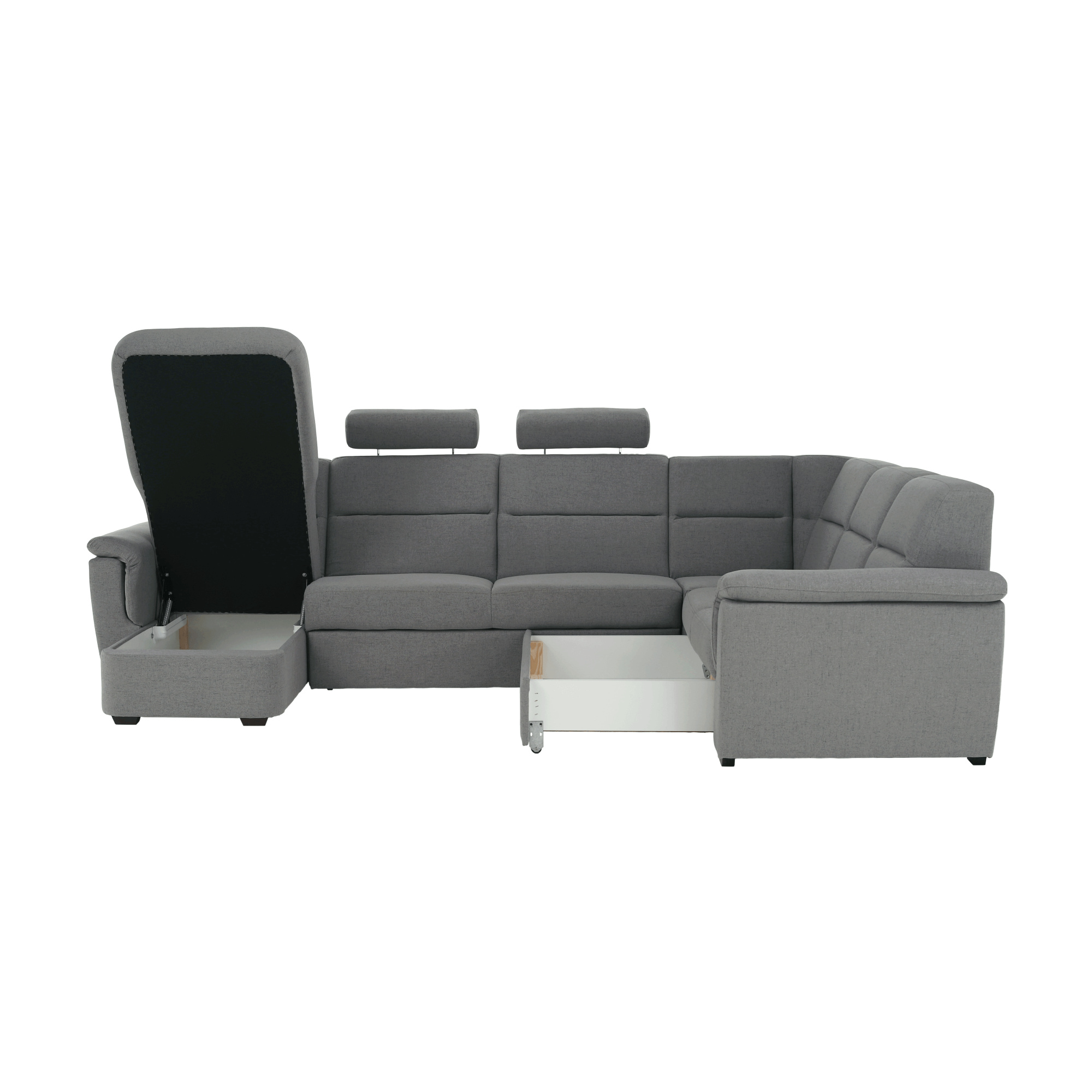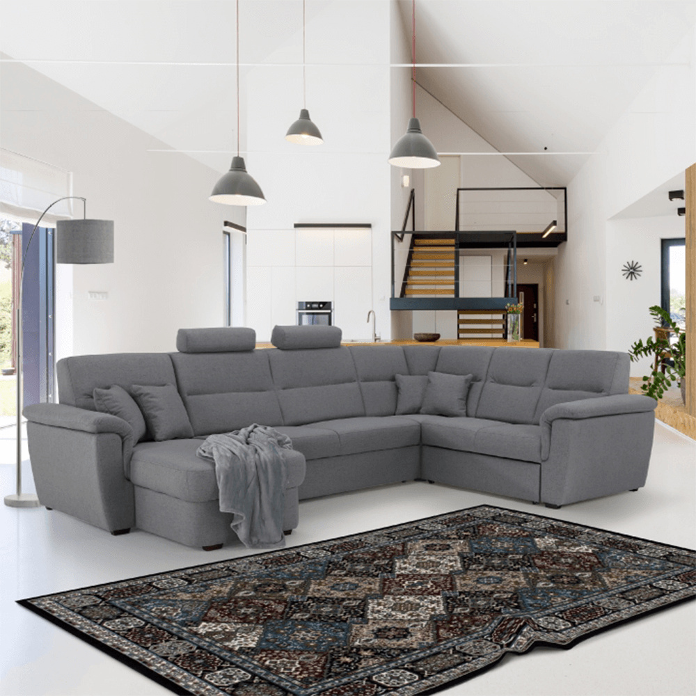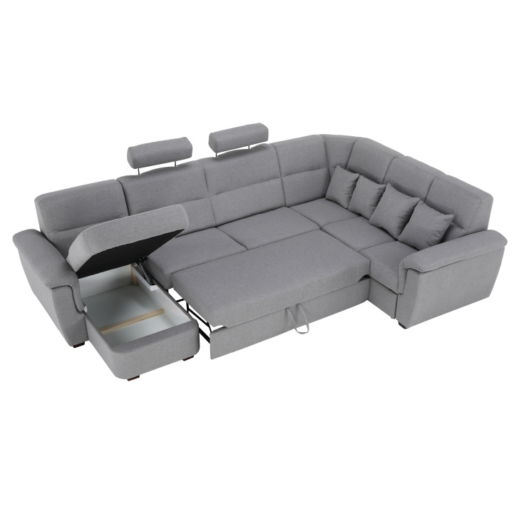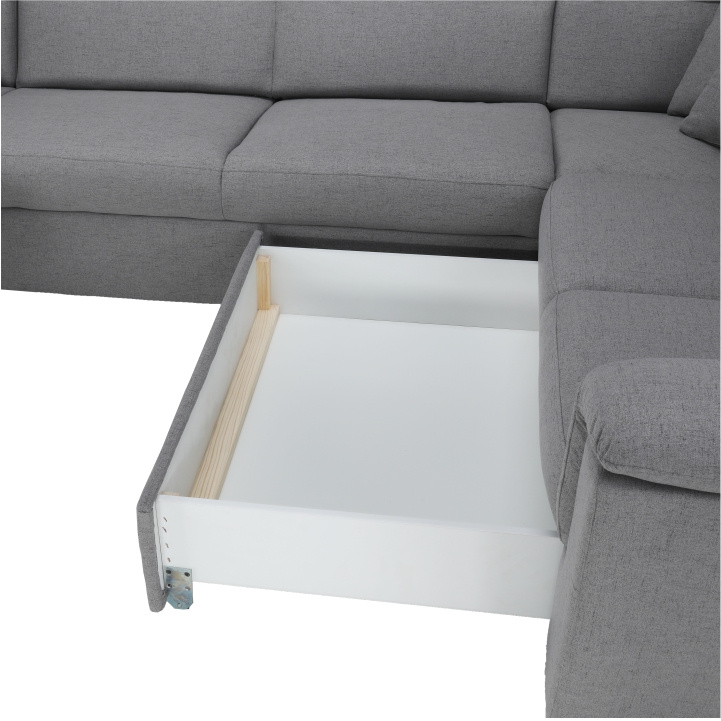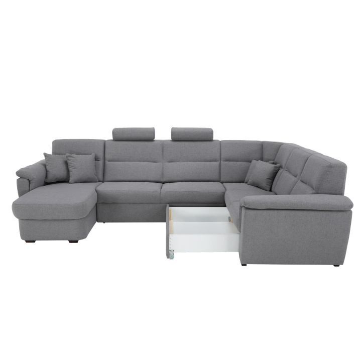 Sedací souprava ve tvaru U, látka šedá, levá, BORN U