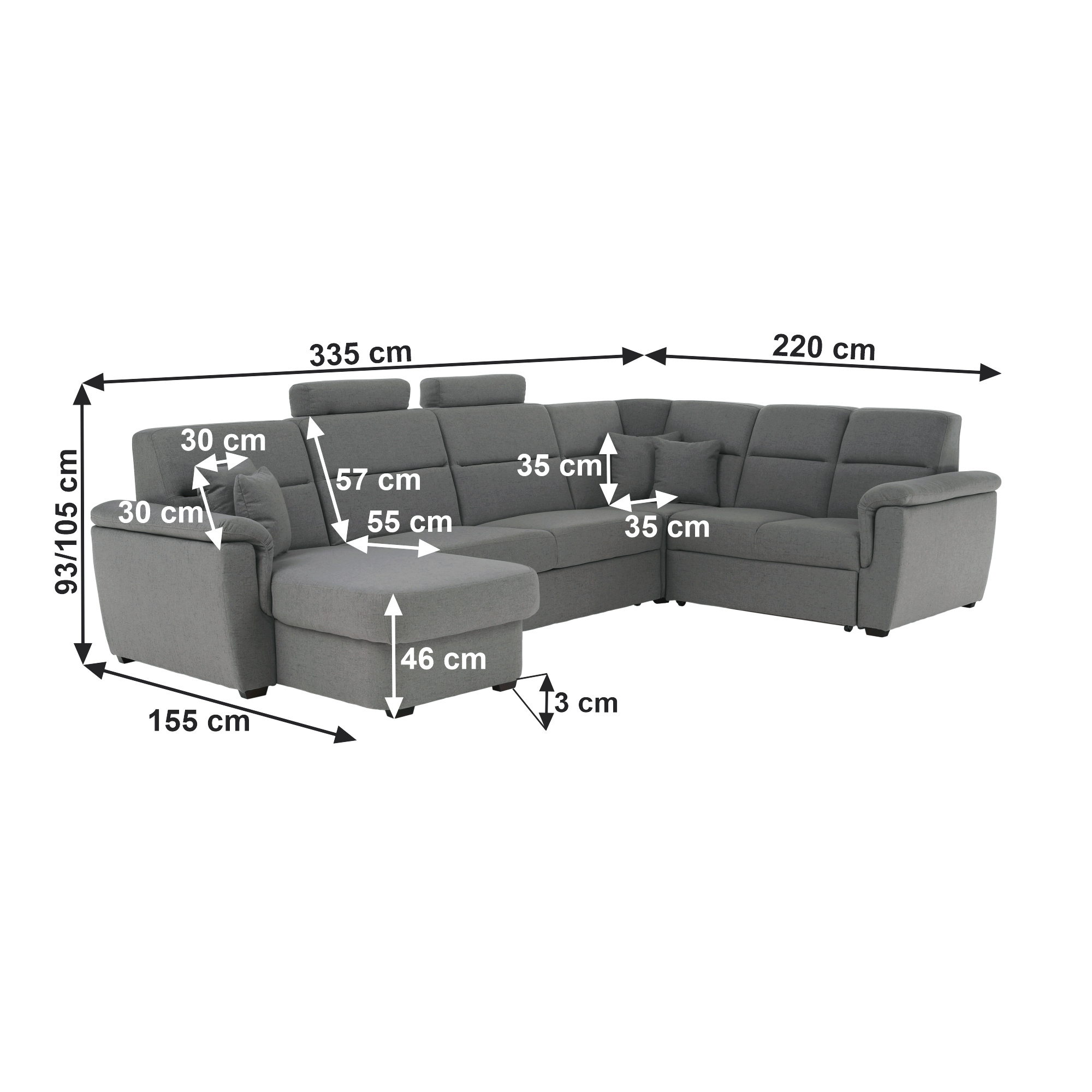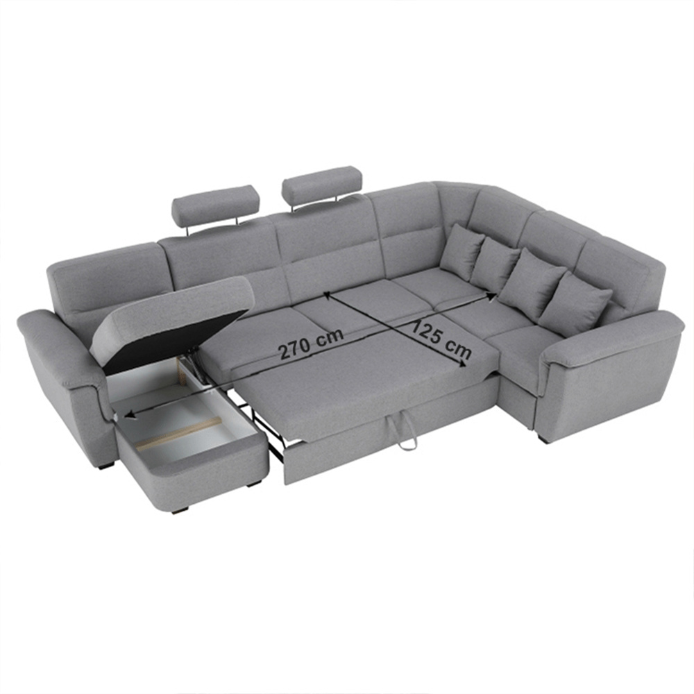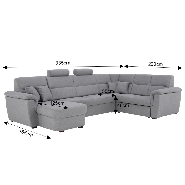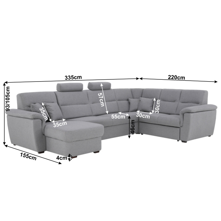 ;"Celočalouněná luxusní sedací souprava BORN Materiál: látka Barva: šedá levé provedení Rozměry (ŠxHxV): 335x220 / 155x93 / 105 cm, plocha na spaní (ŠxD): 125x270 cm Výška spodního prostoru od podlahy: 3 cm dodácavé v demontu. Při individuální objednávce je třeba zaplatit 20% zálohu z dané částky. Po uhrazení zálohy bude Váš požadavek zadána do výroby. Doba dodání 6-8 týdnů.