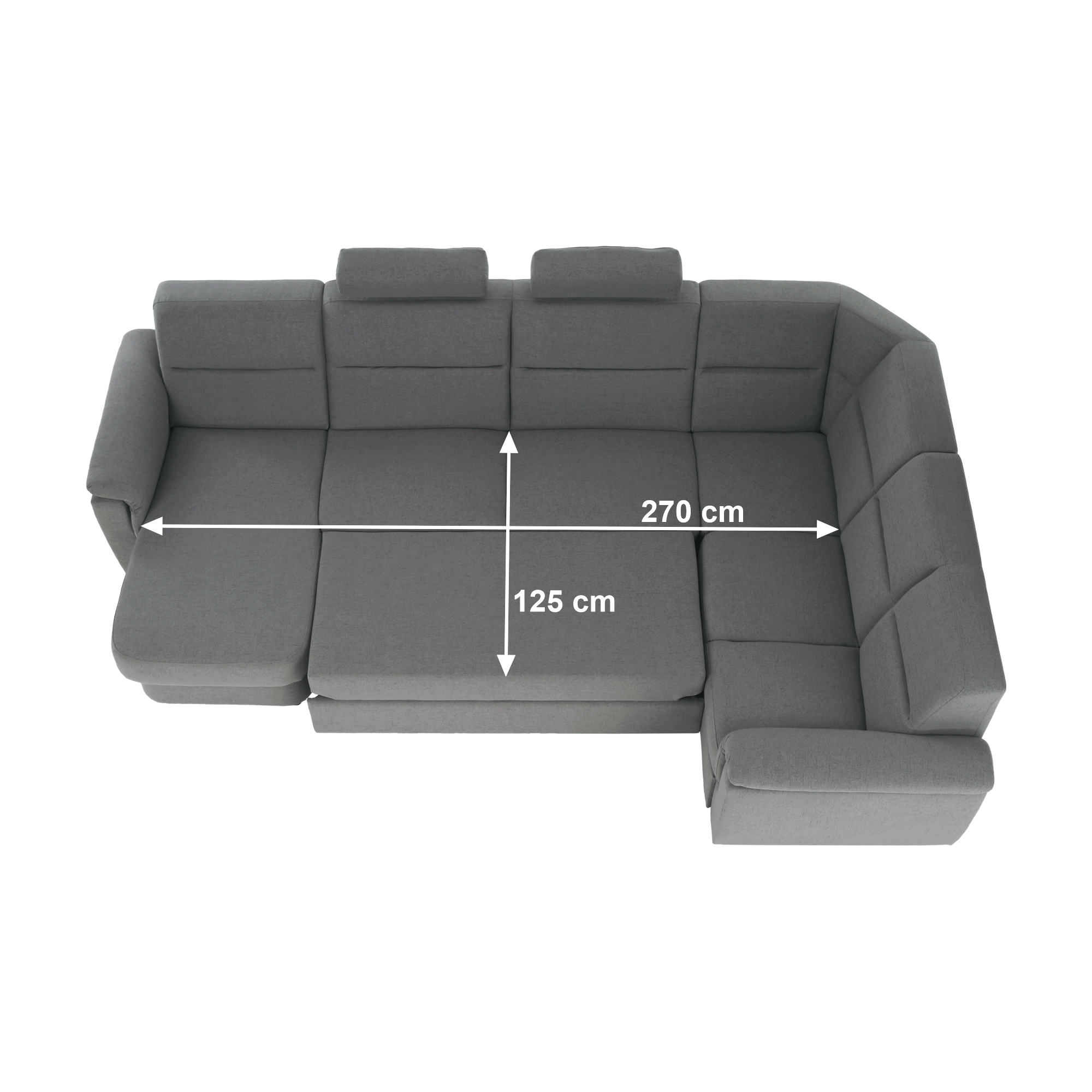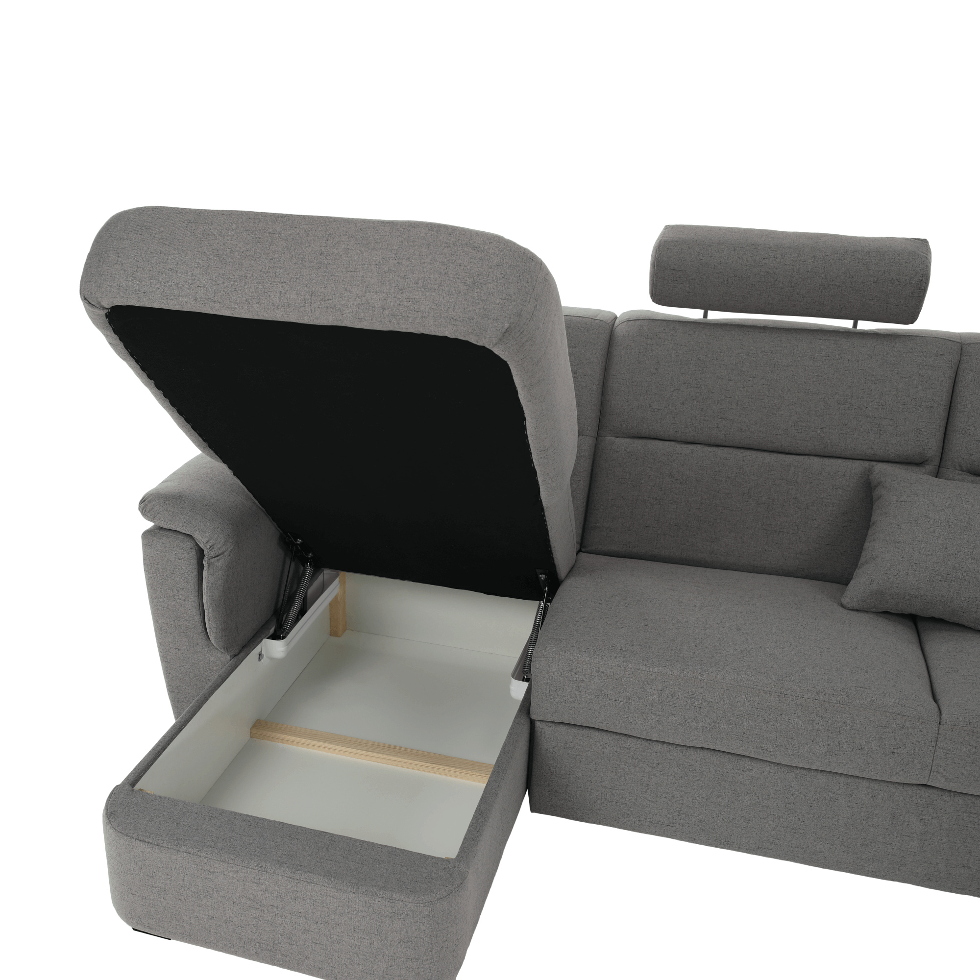Část s opěrkou a úložným prostorem, šedá látka, na objednávku, levá, BORN 2 1B ZS