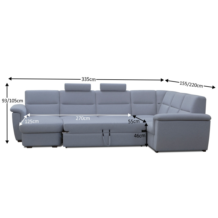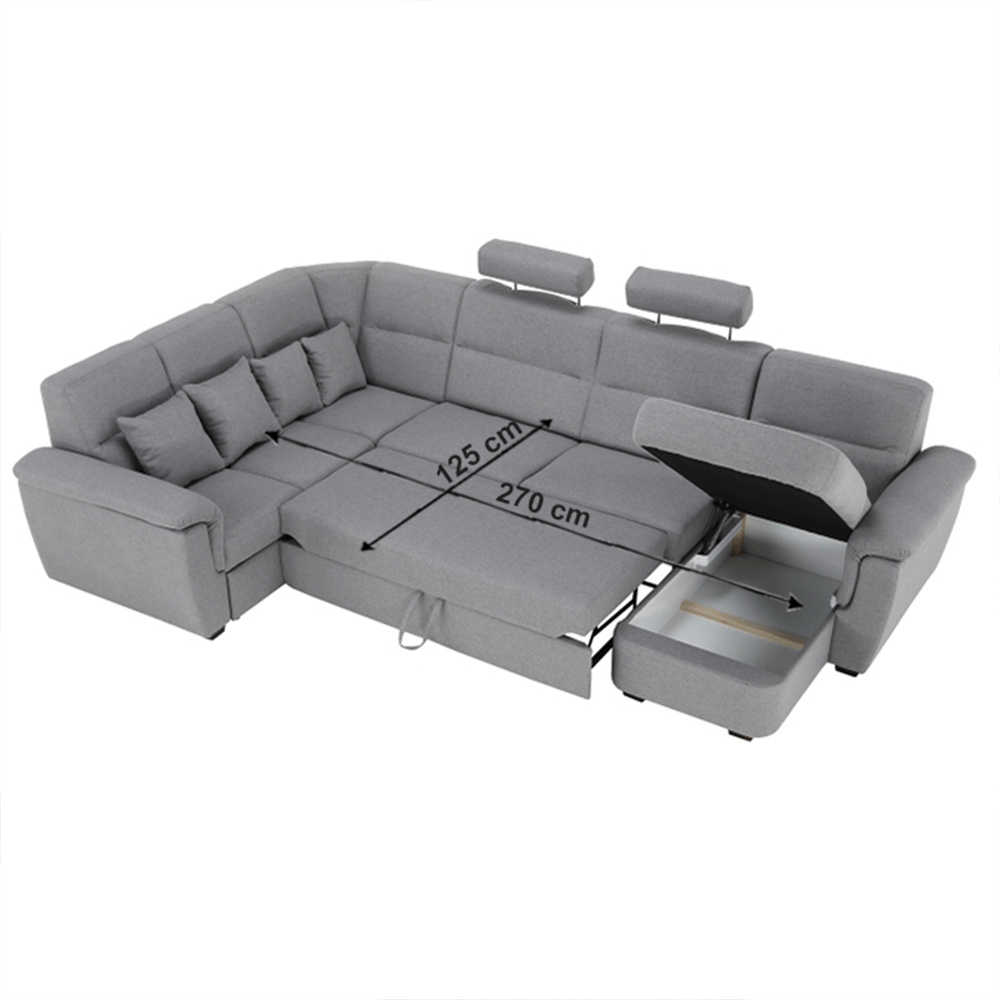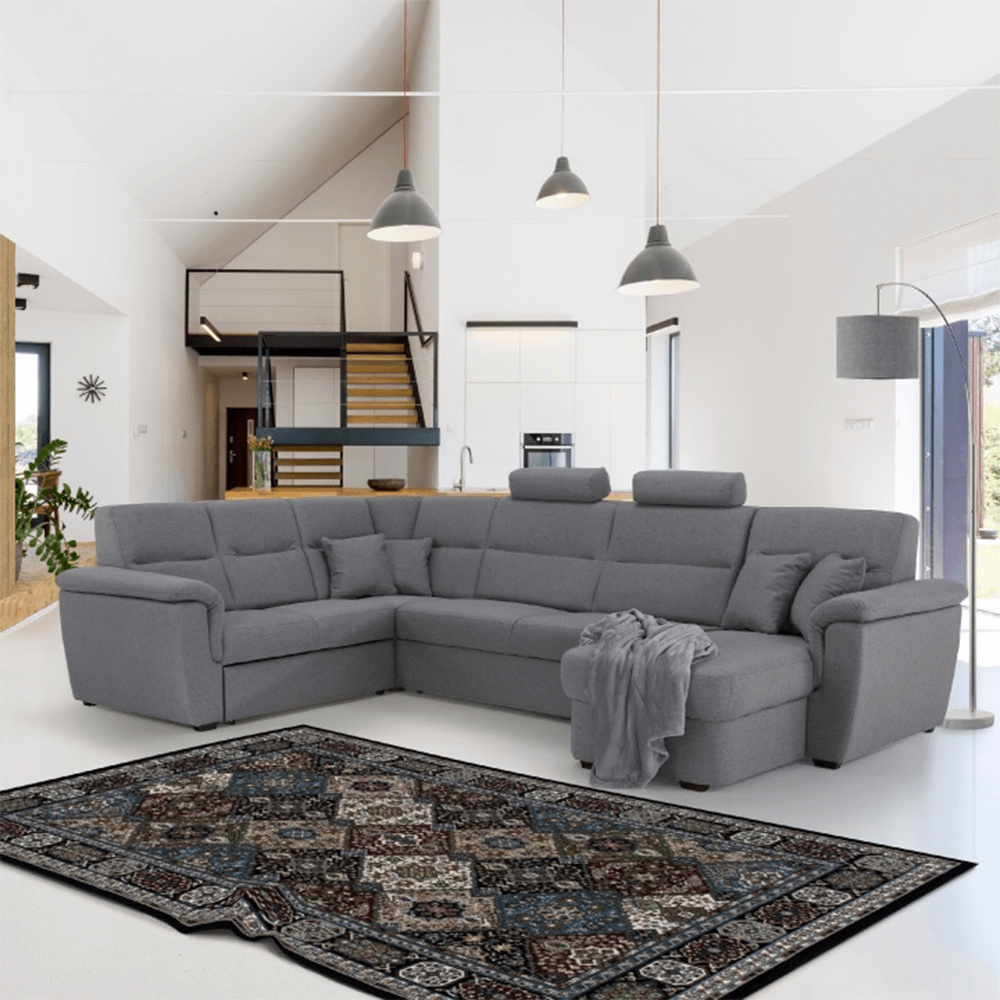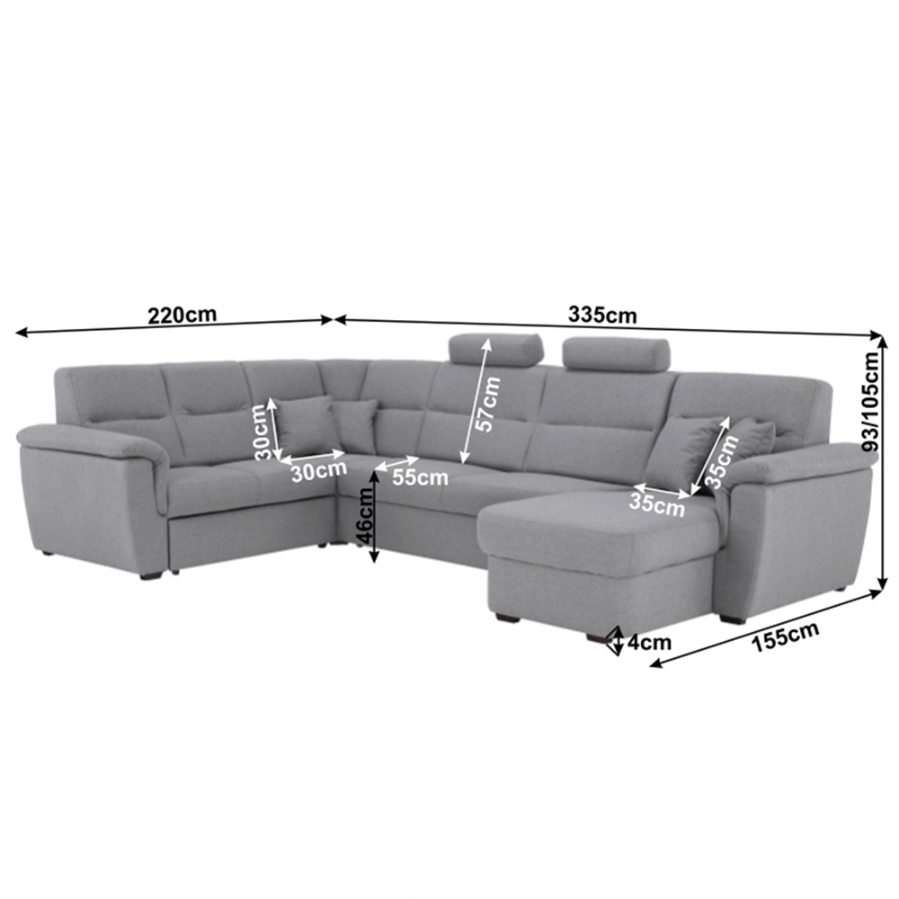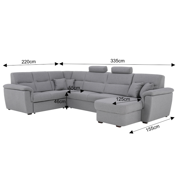 ;"Celočalouněná luxusní sedací souprava BORN Materiál: látka Barva: šedá pravé provedení Rozměry (ŠxHxV): 335x220 / 155x93 / 105 cm, plocha na spaní (ŠxD): 125x270 cm Výška spodního prostoru od podlahy: 3 cm dodácavé v demontu. Při individuální objednávce je třeba zaplatit 20% zálohu z dané částky. Po uhrazení zálohy bude Váš požadavek zadána do výroby. Doba dodání 6-8 týdnů.