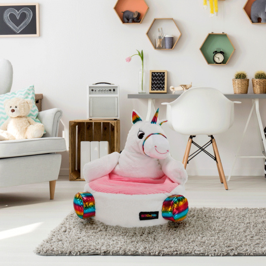 Sedací vak jednorožec, biela/ružová/mix farieb, BUFEL