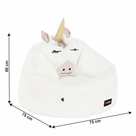 Materiál: látka / EPS Oděruodolnost textilie podle testu Martindale: 93 000 oděrek EPS-polystyrenové kuličky Barva: bílá Rozměry (ŠxHxV): 75x75x60 cm Objem výplně: 150 L Nosnost: 90 kg Dodávané v demonte