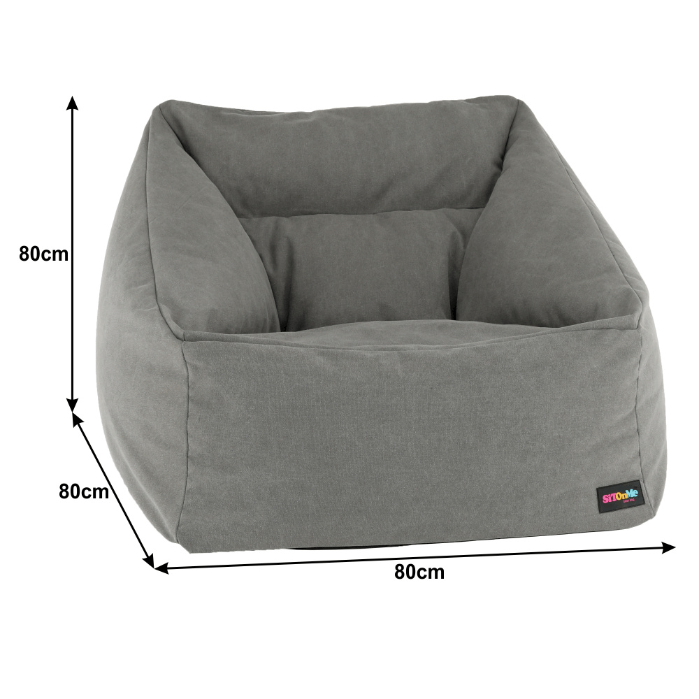 Materiál: látka / EPS (polystyrenové kuličky) Oděruodolnost textilie podle testu Martindale: 50 000 oděrek Barva: šedá Rozměry (ŠxHxV): 80x80x80 cm Objem výplně 350 l Nosnost: 100 kg Dodávané v demontu