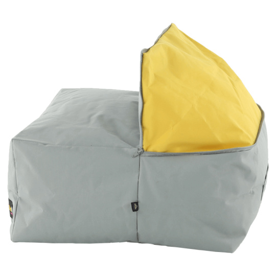 Sedací vak ALIMOR Materiál: látka / EPS (polystyrenové kuličky) Oděruodolnost textilie podle testu Martindale: 90 000 oděrek Provedení: šedá / zelená/žlutá Rozměry (ŠxHxV): 50x50x25 cm Nosnost: 100 kg Dodávané v demonte.