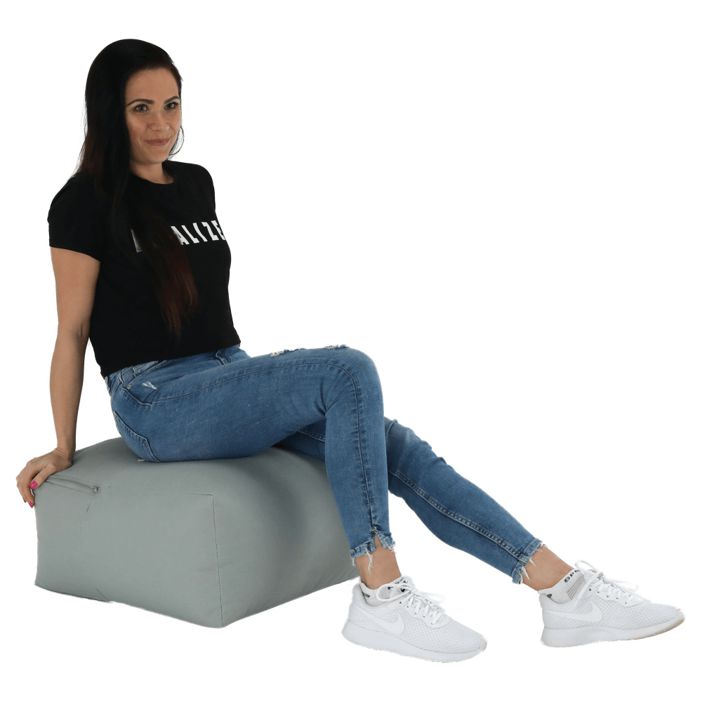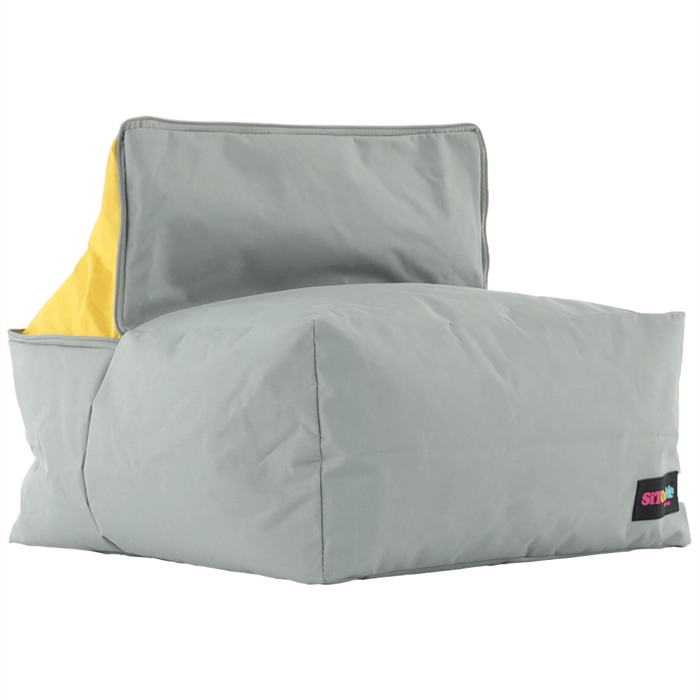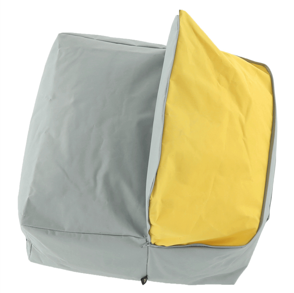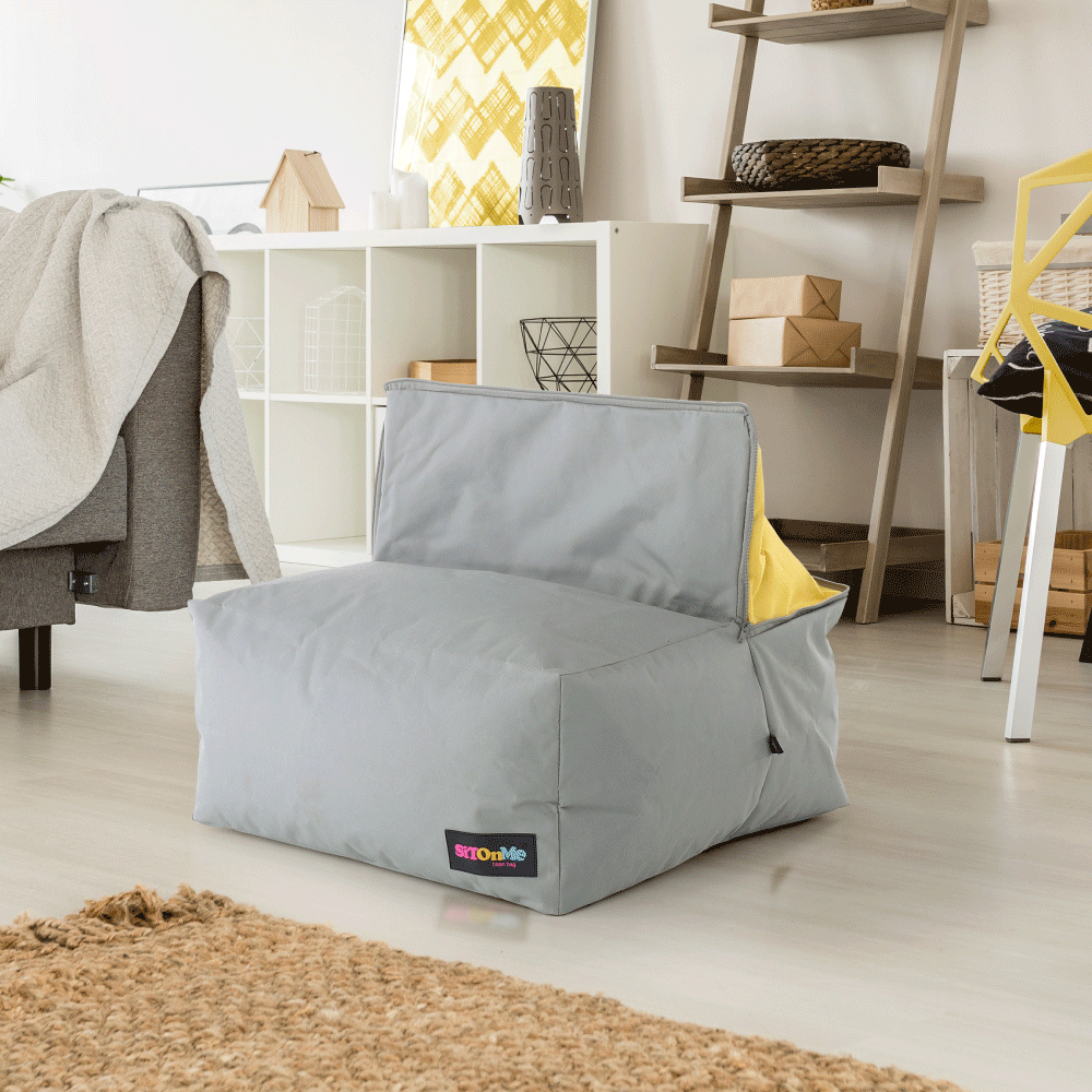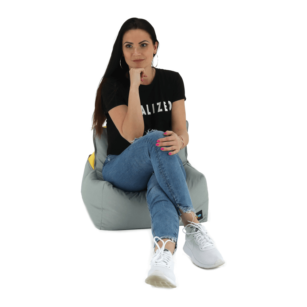 Sedací vak ALIMOR Materiál: látka / EPS (polystyrenové kuličky) Oděruodolnost textilie podle testu Martindale: 90 000 oděrek Provedení: šedá / zelená/žlutá Rozměry (ŠxHxV): 50x50x25 cm Nosnost: 100 kg Dodávané v demonte.
