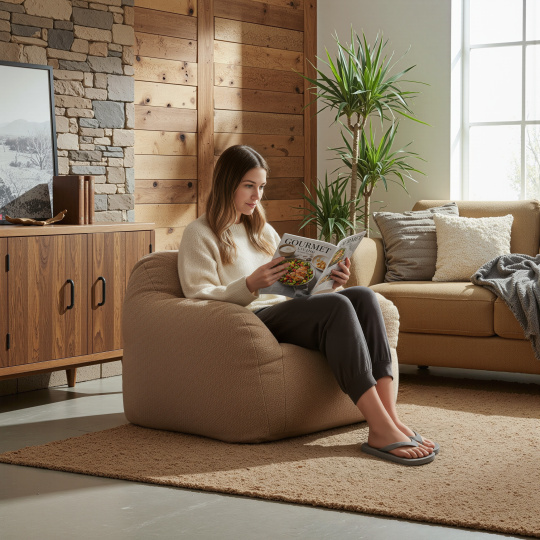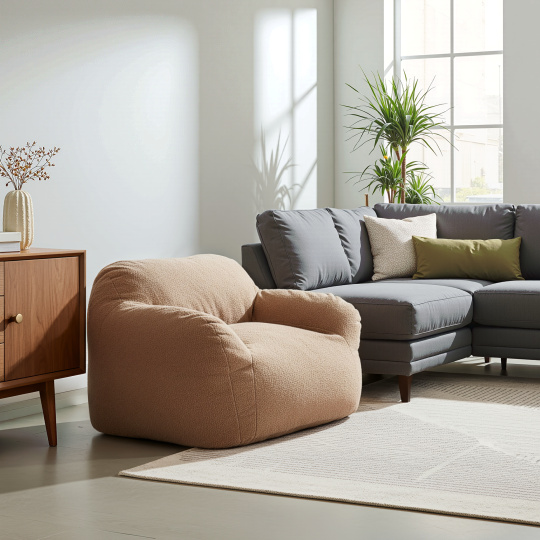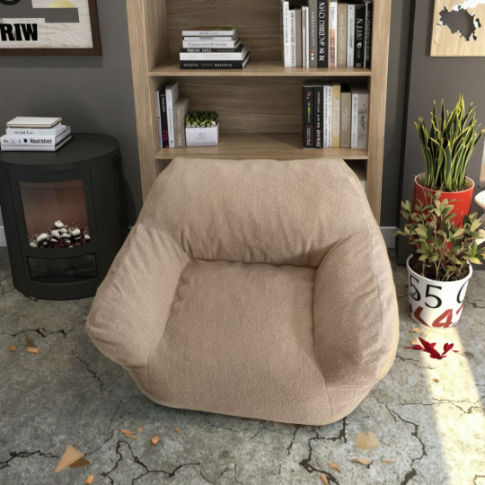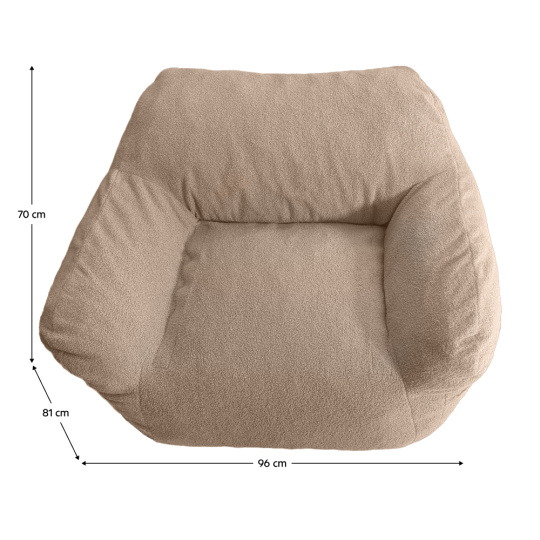 Materiál: látka Bouclé/kompresní pěna Oděruodolnost textilie podle testu Martindale: 45 000 oděrů Barva: světle hnědá Rozměry (ŠxHxV): 96x81x70 cm Praktické ouško na zadní straně Příjemný materiál Výplň je zdravotně nezávadná Snadná údržba Čištění mýdlovou vodou s nízkým ph Doporučujeme otevřít pěnu a nechat ji dosáhnout svého objemu 24 hodin Nosnost: 90 kg