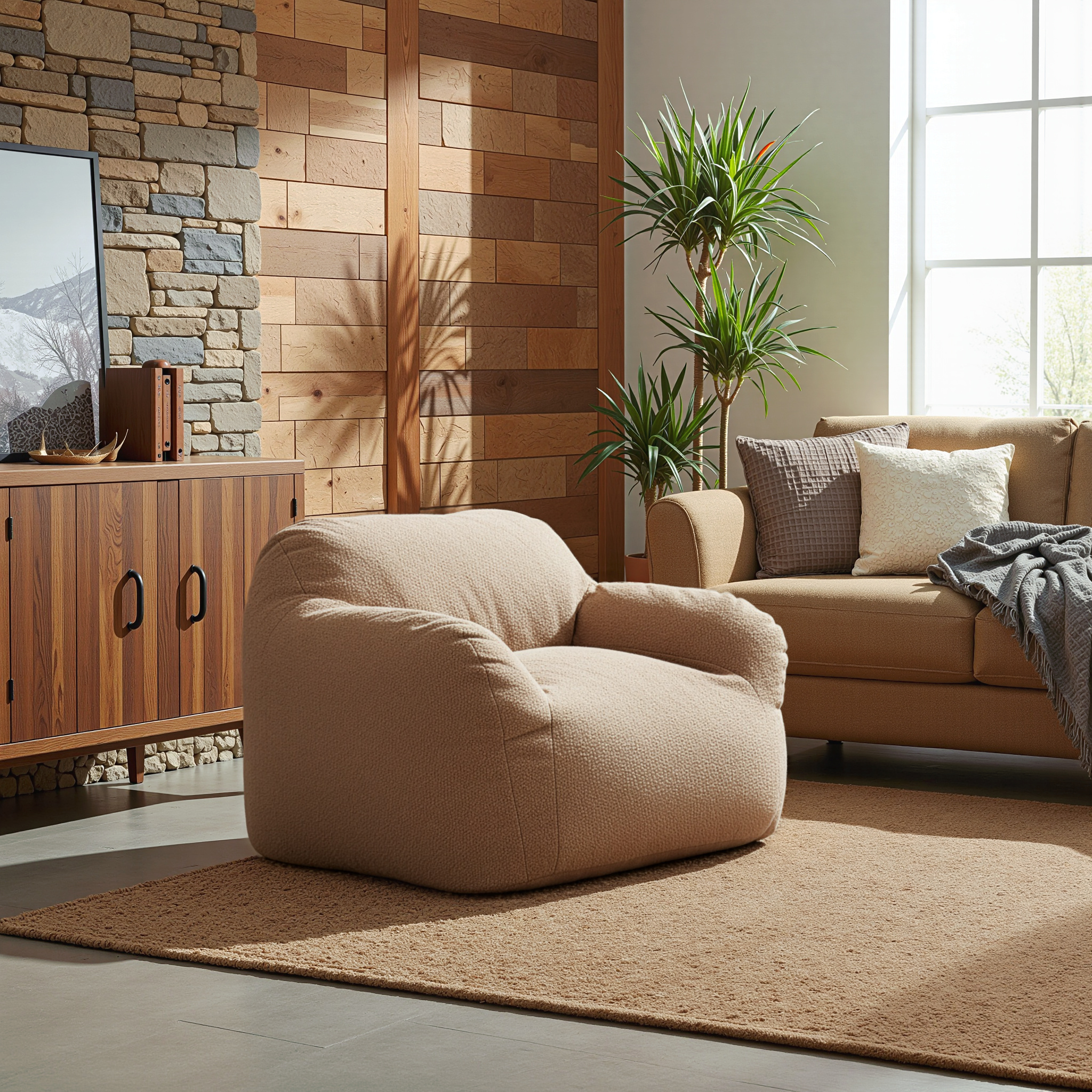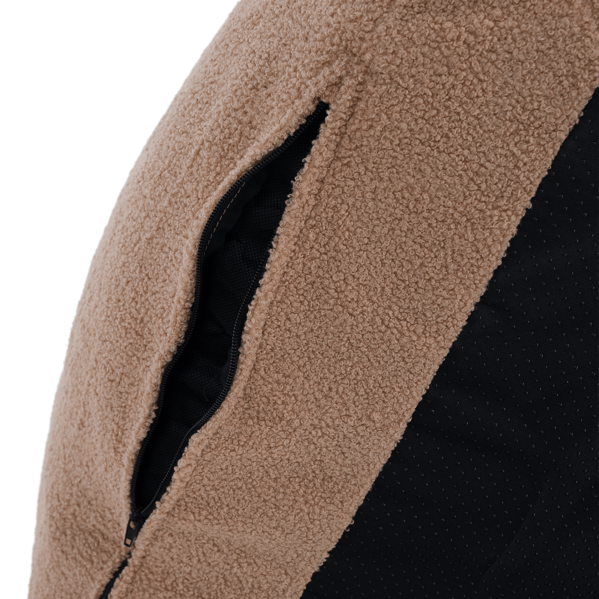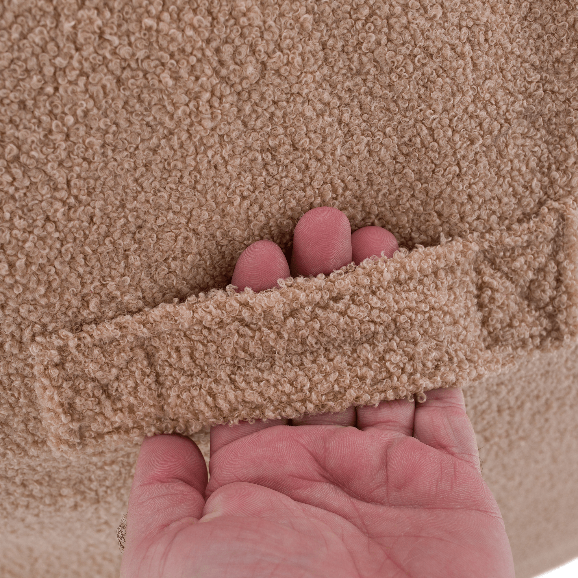 Materiál: látka Bouclé/kompresní pěna Oděruodolnost textilie podle testu Martindale: 45 000 oděrů Barva: světle hnědá Rozměry (ŠxHxV): 96x81x70 cm Praktické ouško na zadní straně Příjemný materiál Výplň je zdravotně nezávadná Snadná údržba Čištění mýdlovou vodou s nízkým ph Doporučujeme otevřít pěnu a nechat ji dosáhnout svého objemu 24 hodin Nosnost: 90 kg