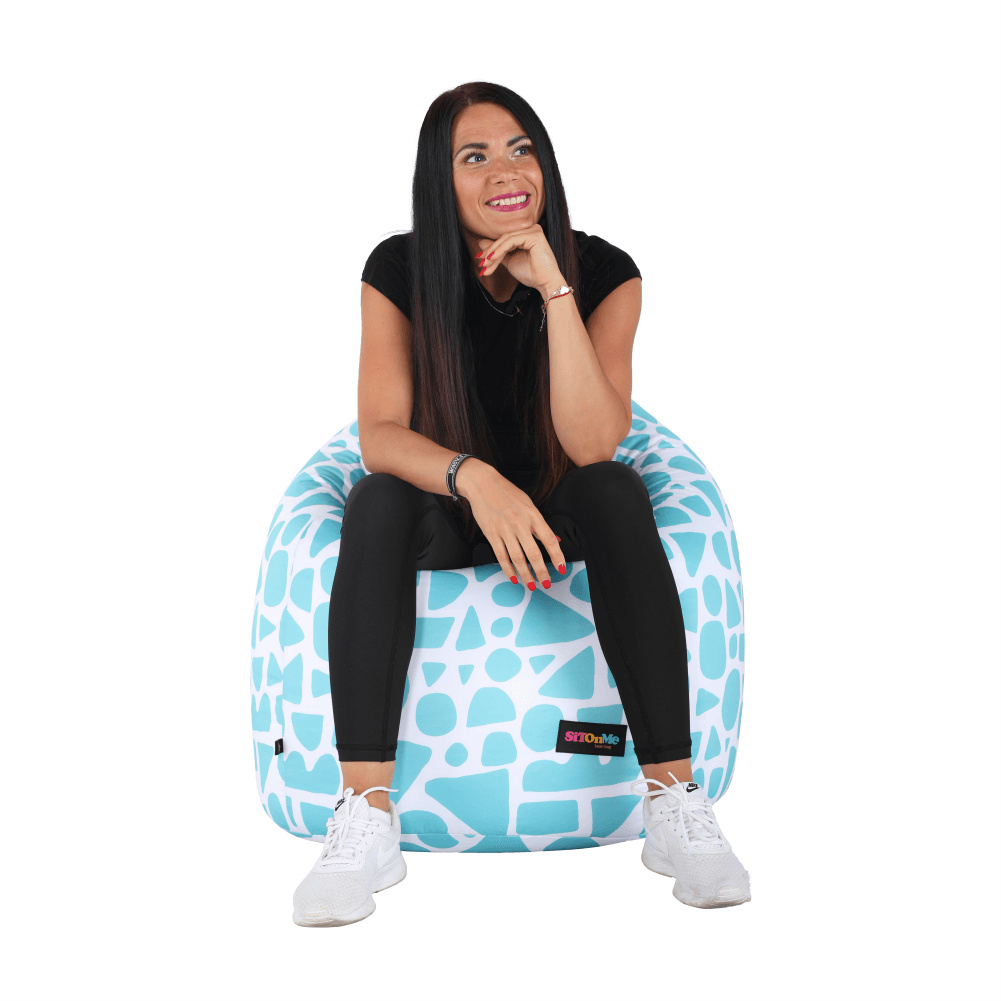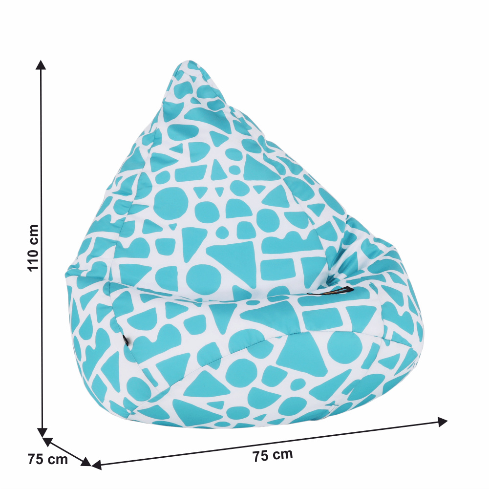 Sedací vak Materiál: látka / EPS (polystyrenové kuličky) Oděruodolnost textilie podle testu Martindale: 90 000 oděrek Provedení: tyrkysově-bílá / vzor Rozměry (ŠxHxV): 75x75x110 cm Nosnost: 90 kg Objem 200 litrů Dodávané v demonte.