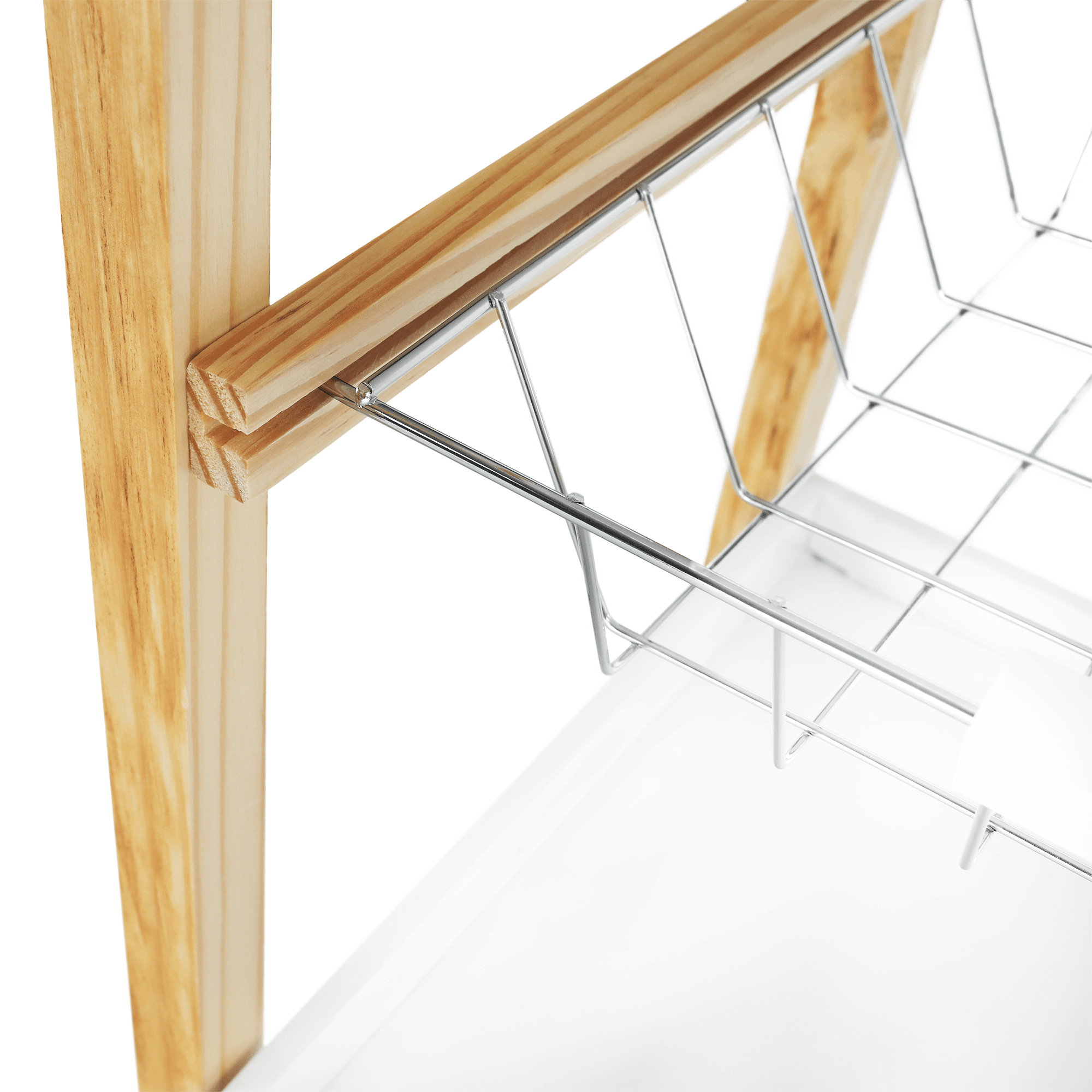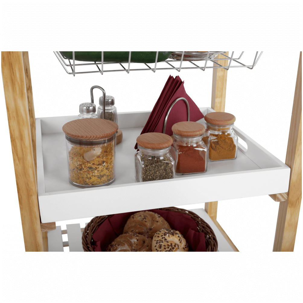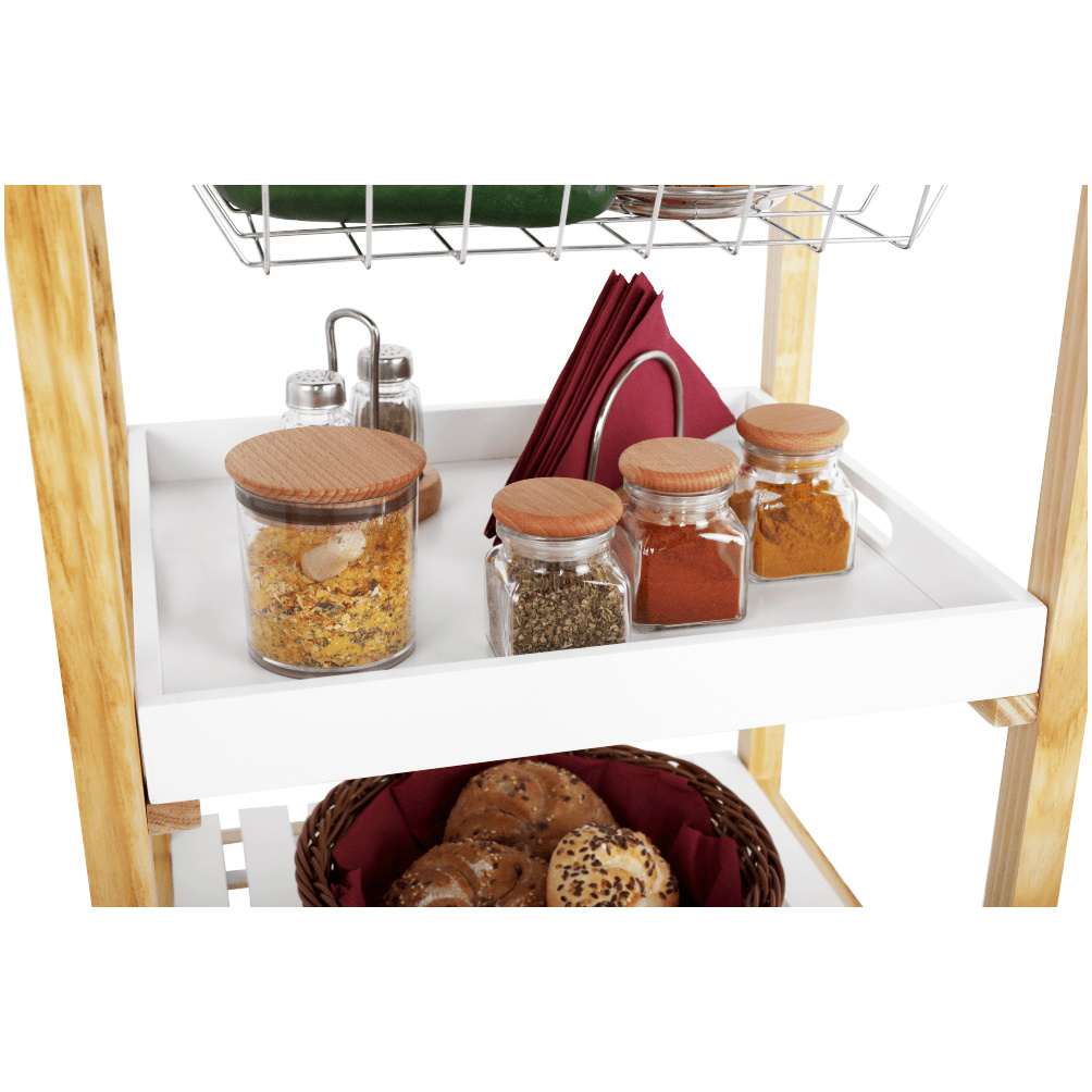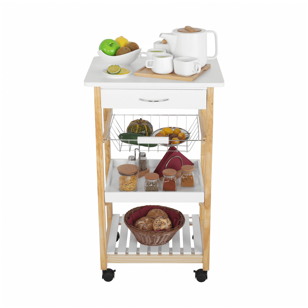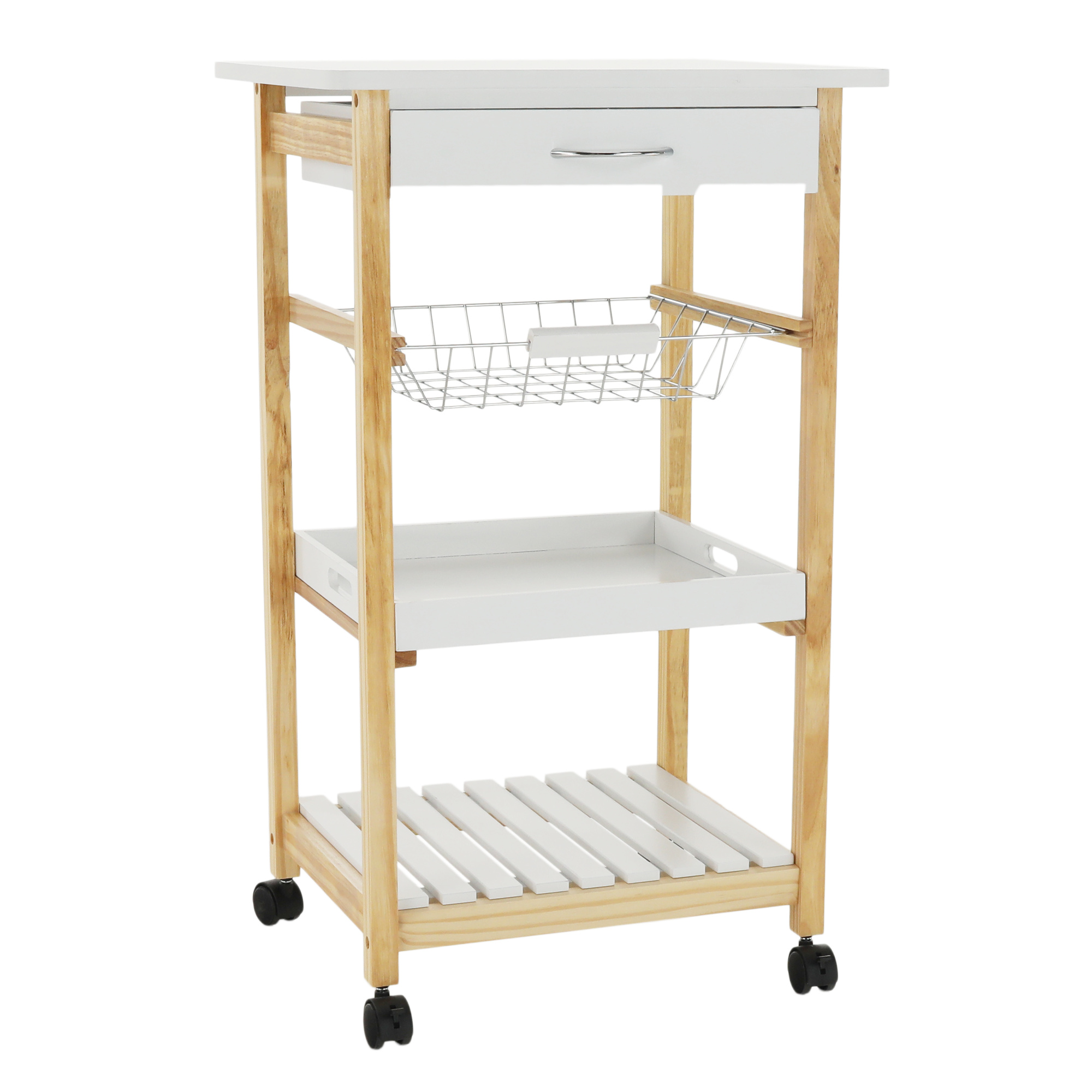 Materiál: MDF / borovicové dřevo Barva: bílá / přírodní Rozměry (ŠxHxV): 50x40x83 cm na kolečkách 2 brzdy šuplík police odnímatelná tácek kovový košík Košík víte vybrat moderní design Dodávané v demontu