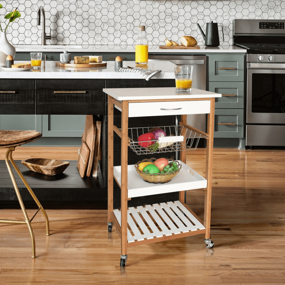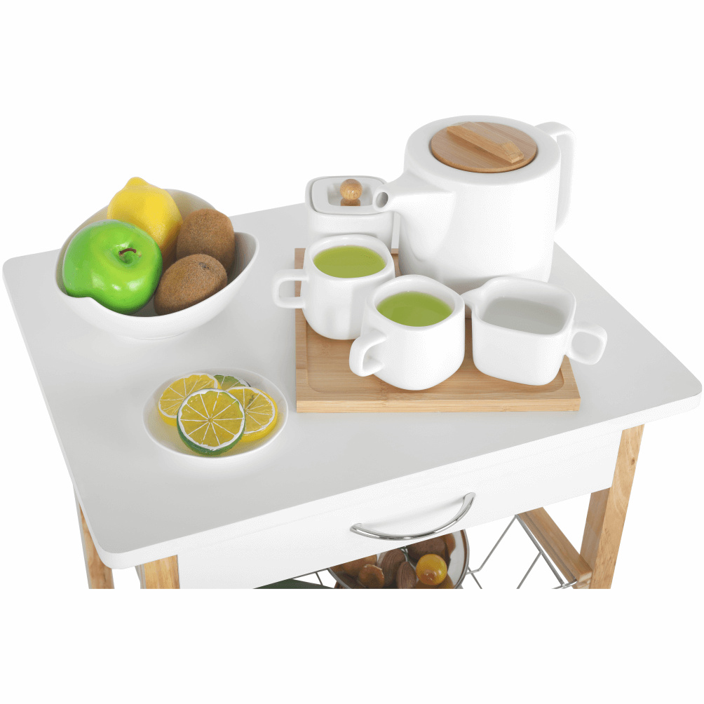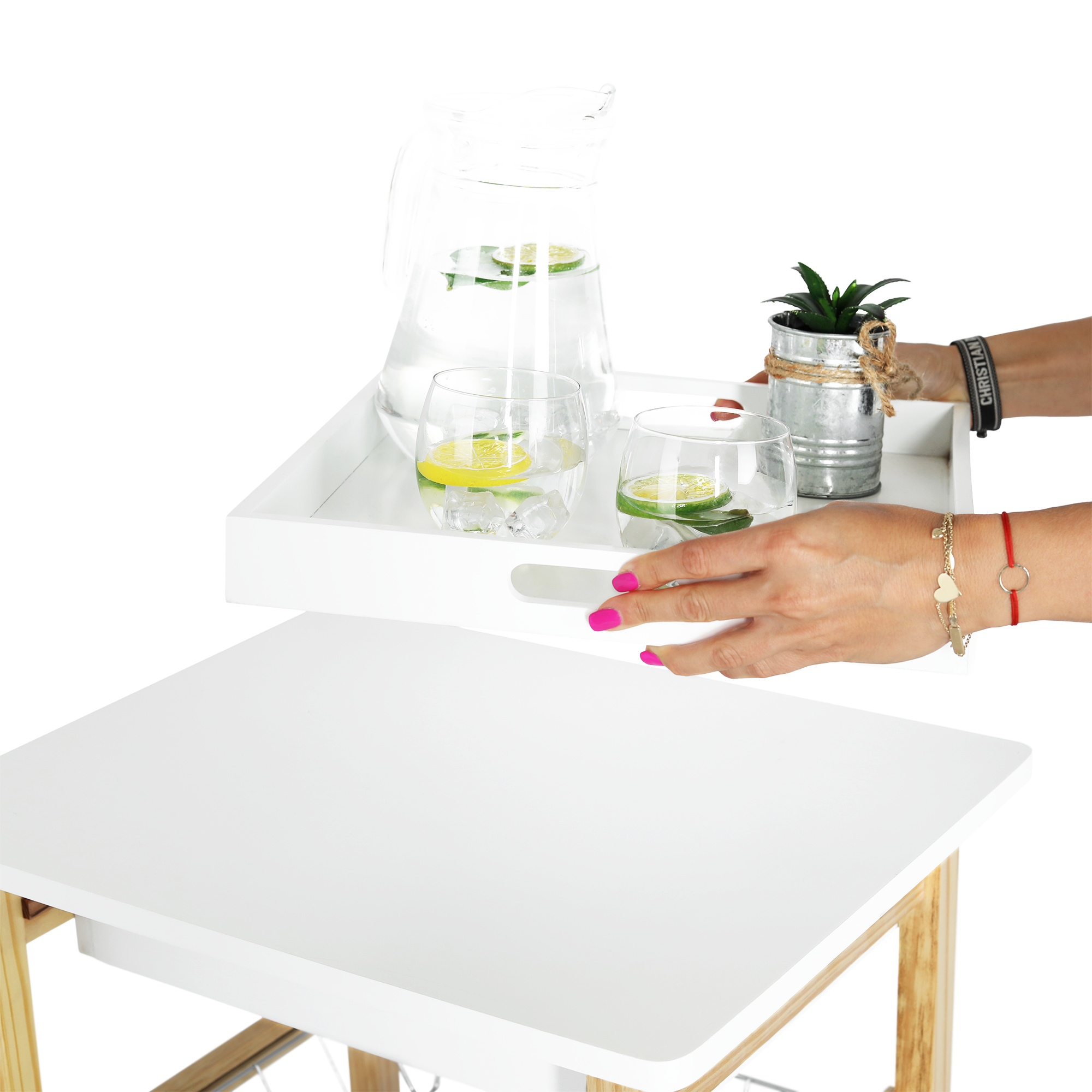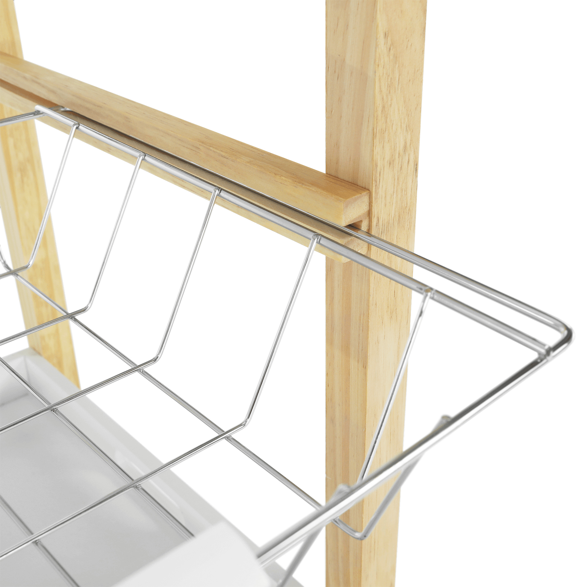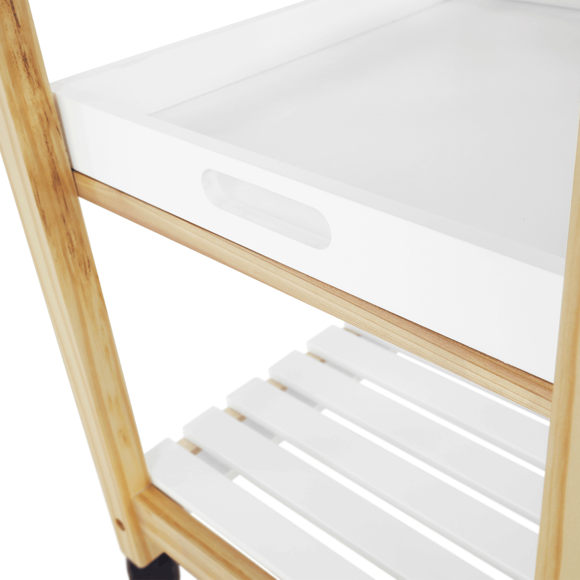 Materiál: MDF / borovicové dřevo Barva: bílá / přírodní Rozměry (ŠxHxV): 50x40x83 cm na kolečkách 2 brzdy šuplík police odnímatelná tácek kovový košík Košík víte vybrat moderní design Dodávané v demontu