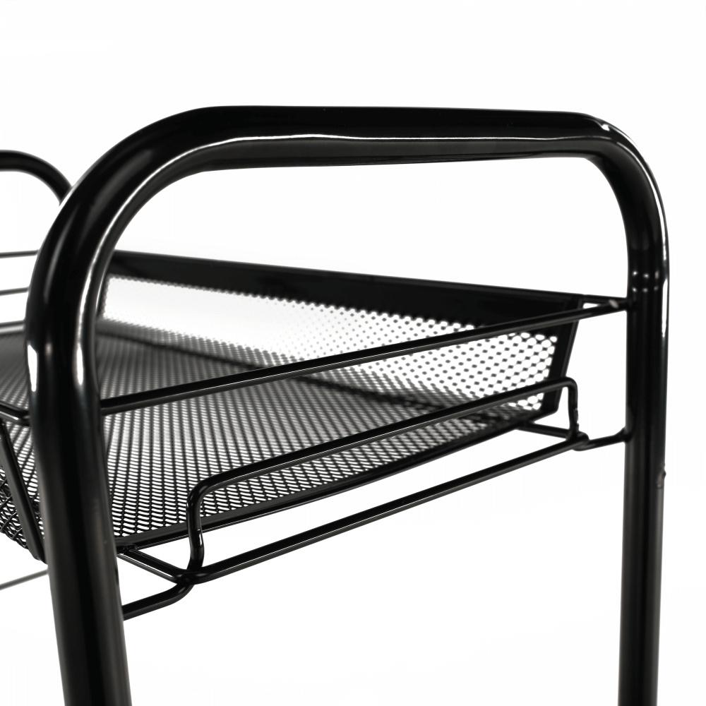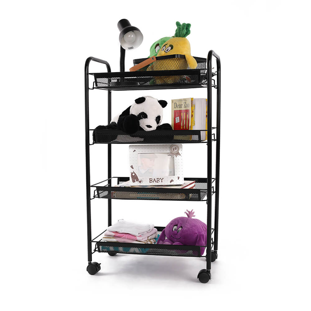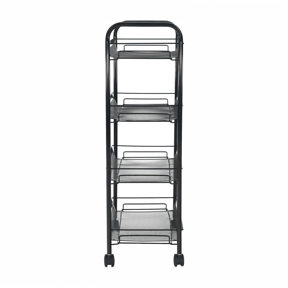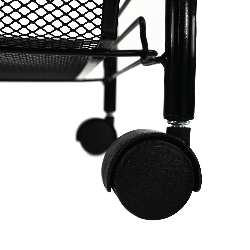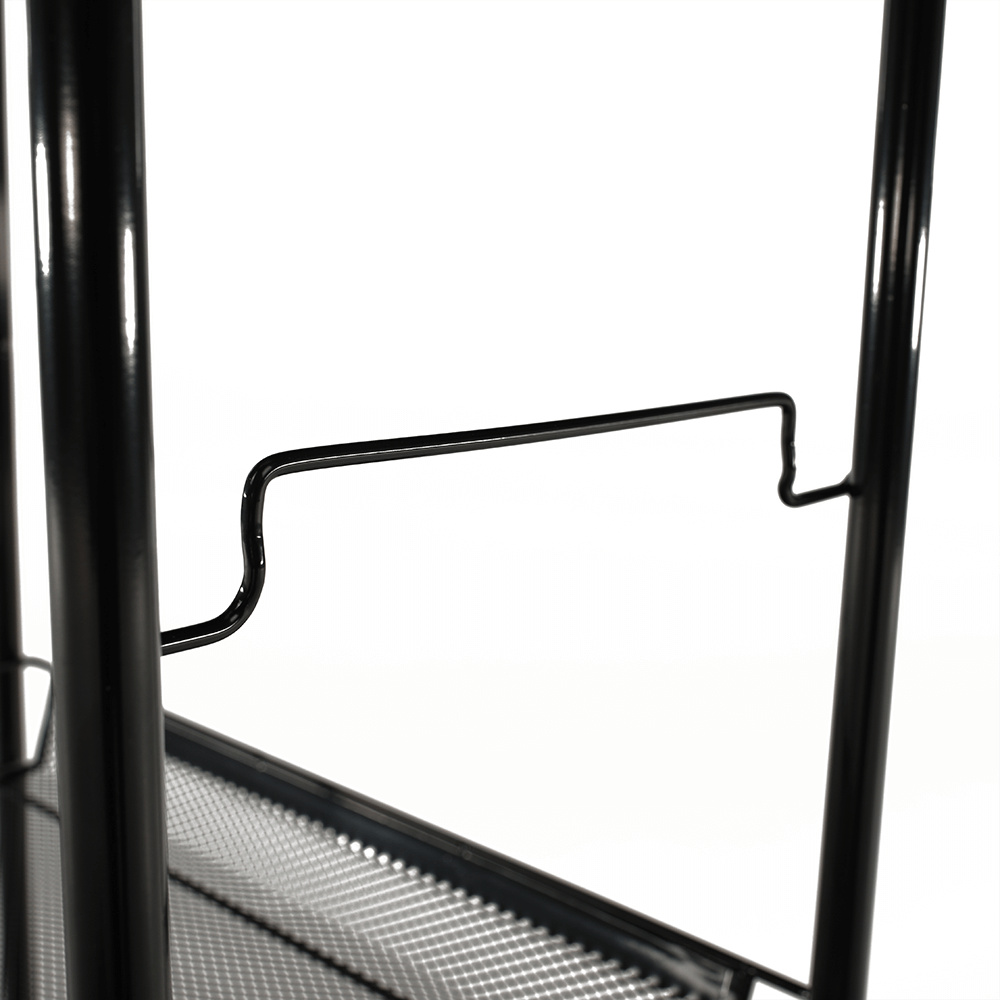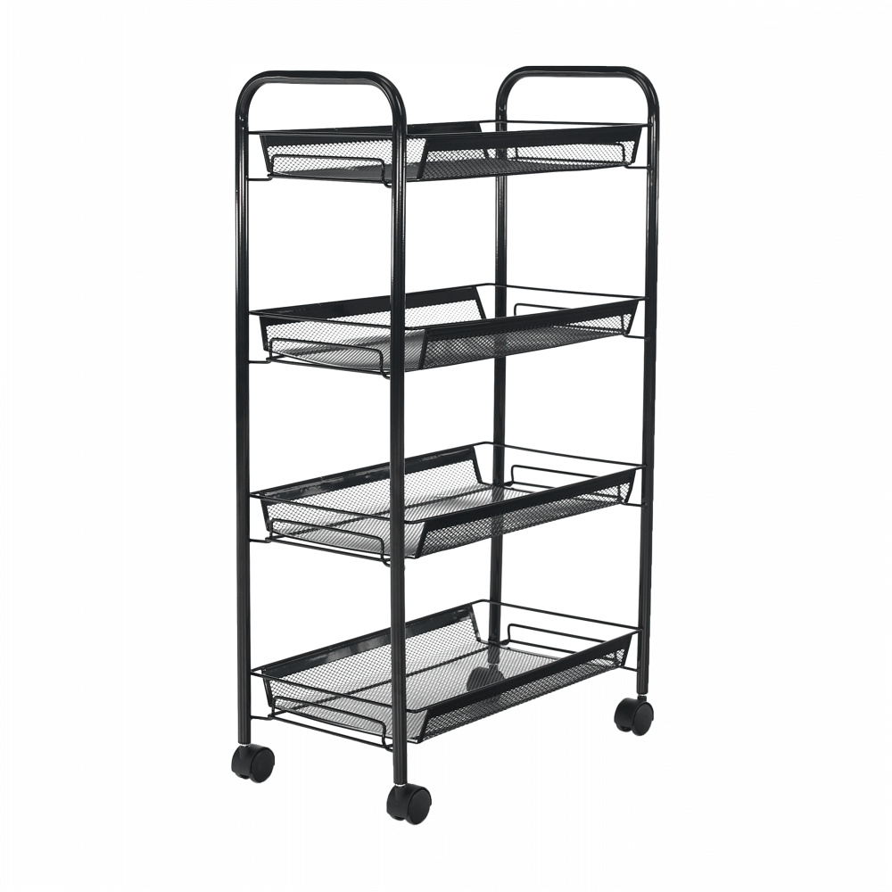 Materiál: kov / plast Barva: černá Rozměry (ŠxHxV): 48x27x84 cm S kolečky plastové kolečka Dvě kolečka s brzdami čtyři police 4-patrový Nosnost: 35 kg moderní zpracování Na servírování občerstvení Využití najde v kterékoli místnosti Dodávané v demontu