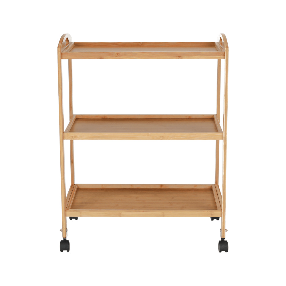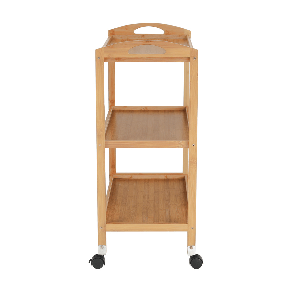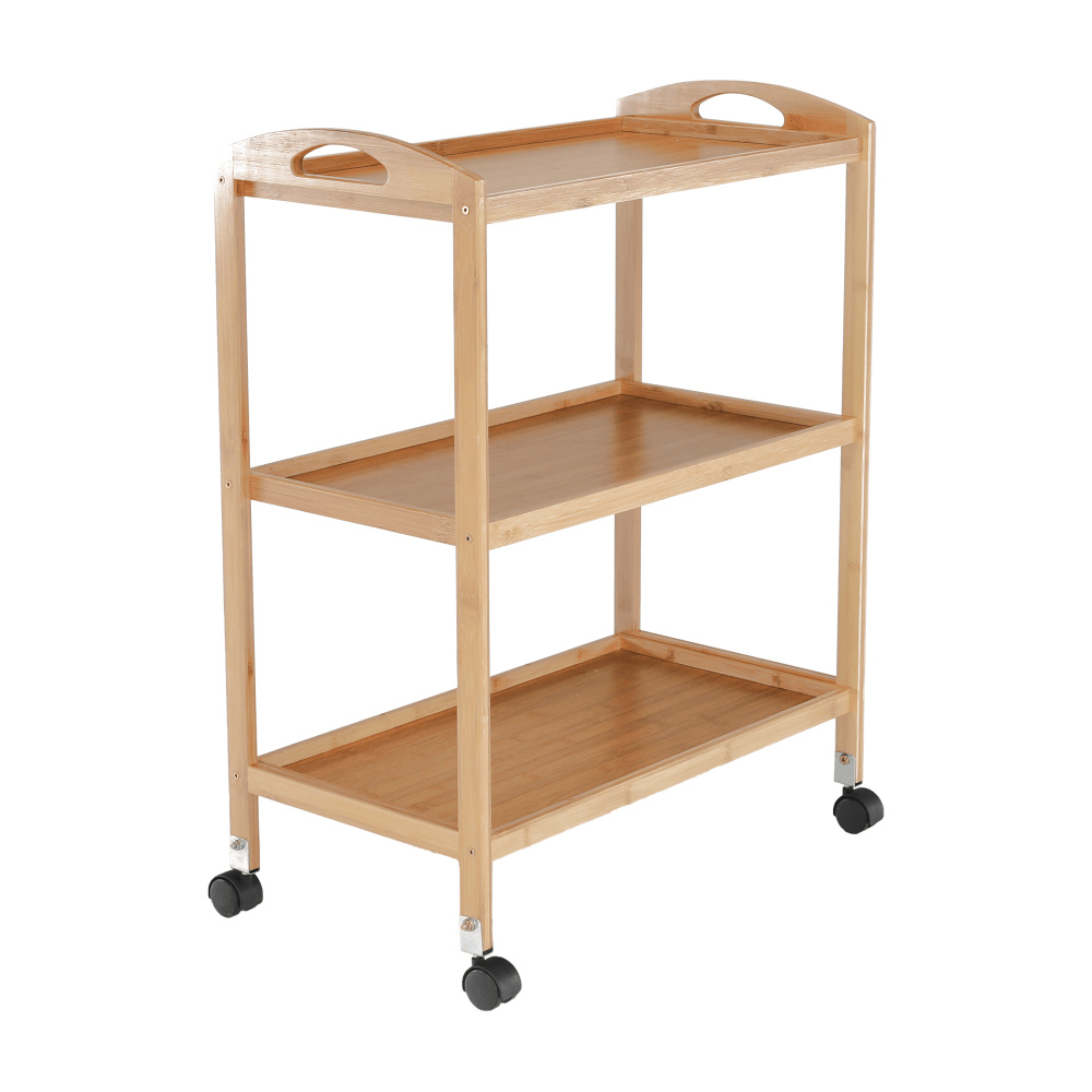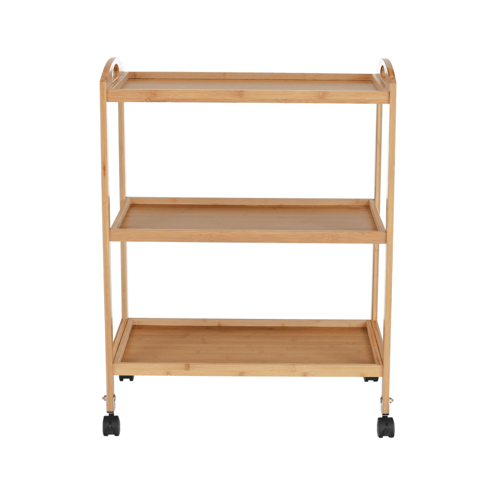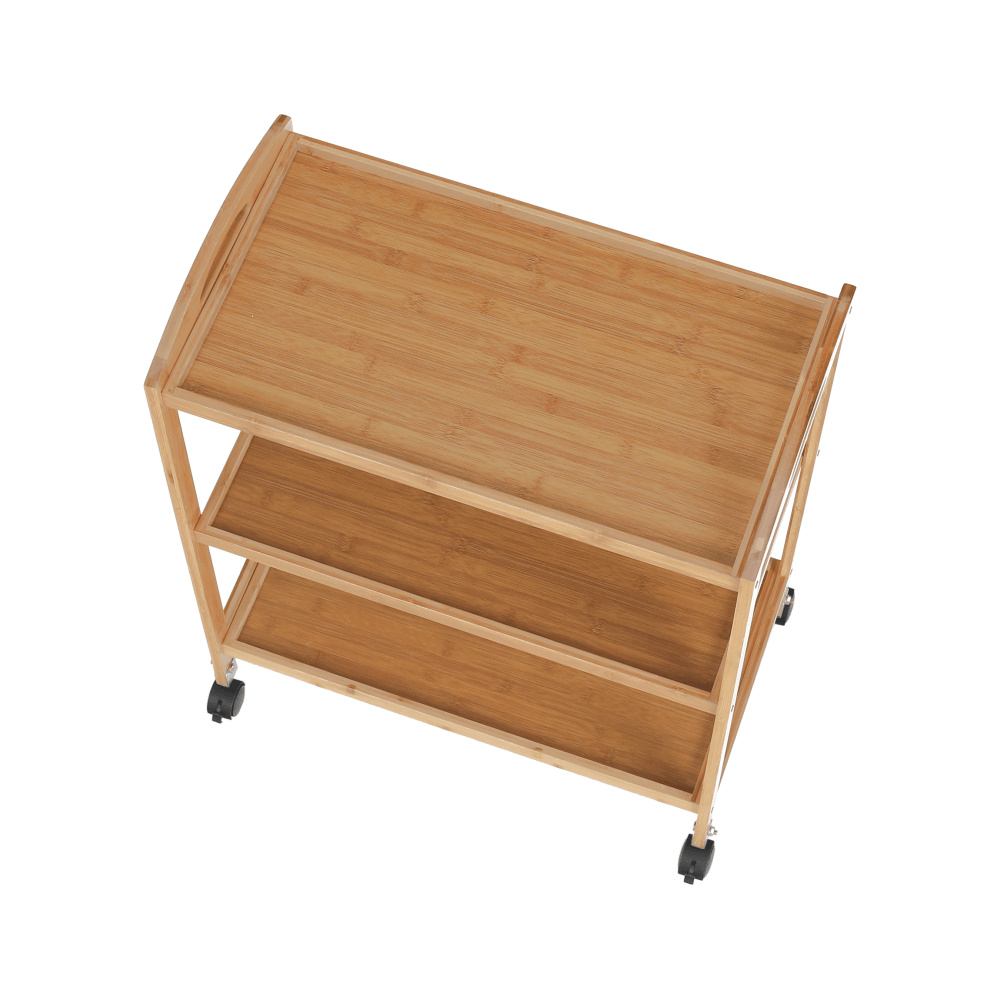 Materiál: lakovaný bambus Barva: přírodní Rozměry (ŠxHxV): 60x33x73 cm 3-patrový 3-police na kolečkách servírovací Dodávané v demontu