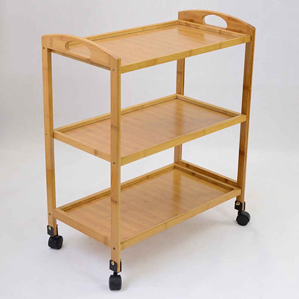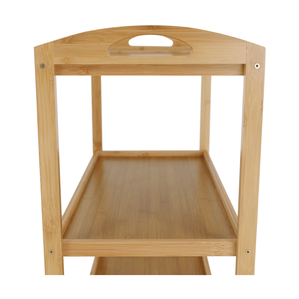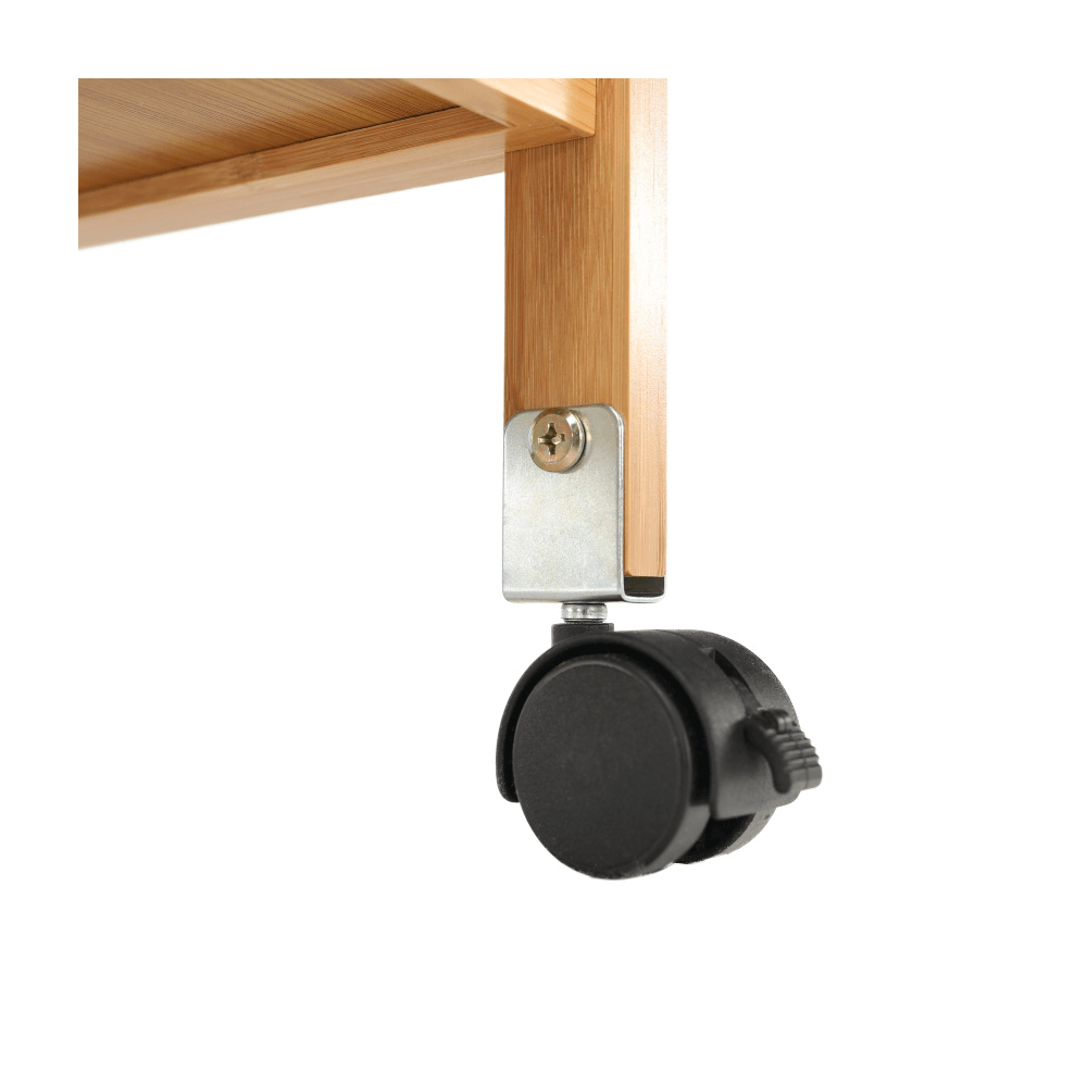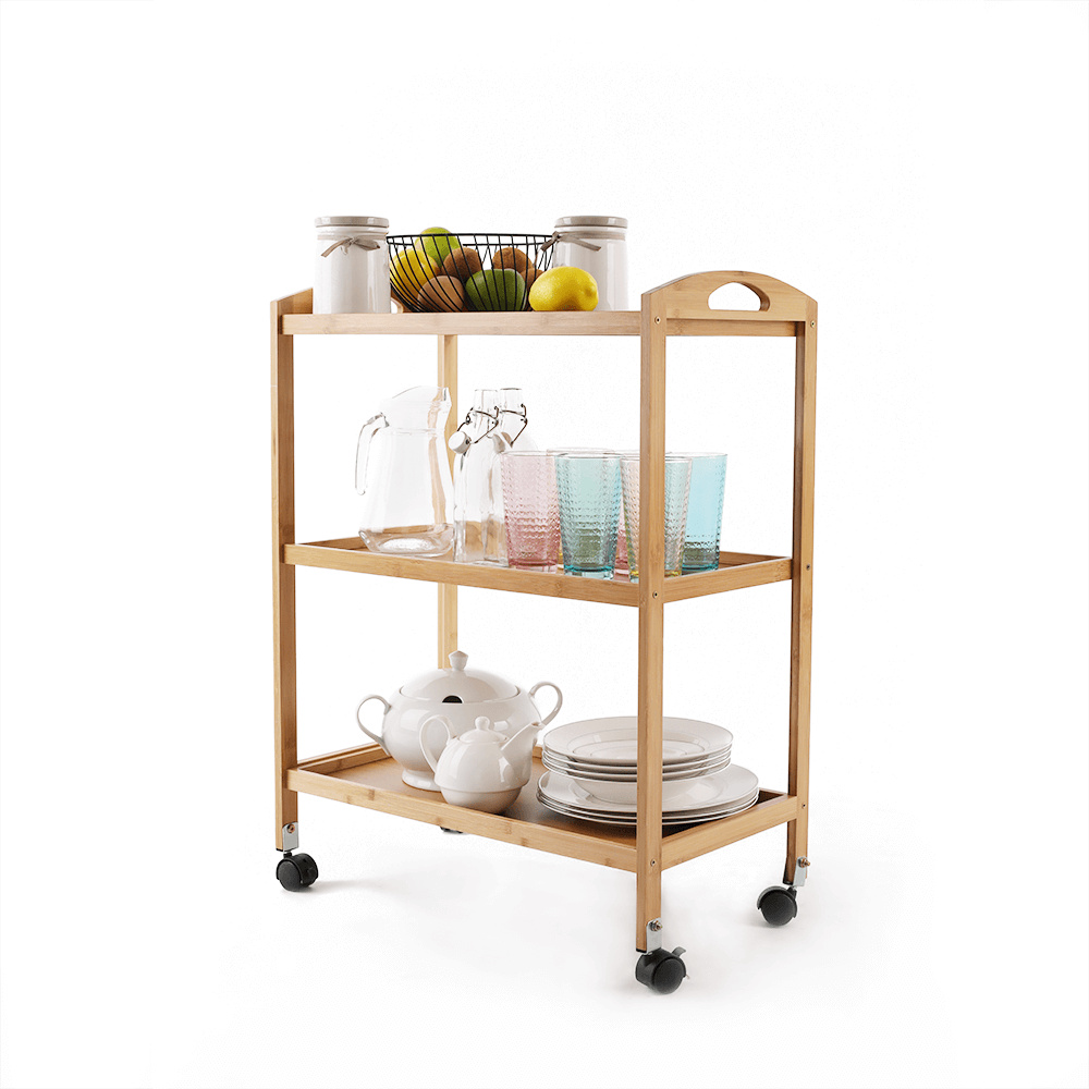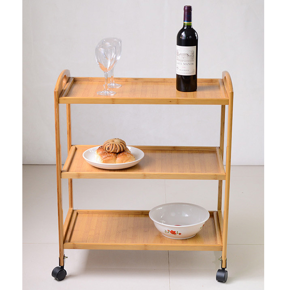 Materiál: lakovaný bambus Barva: přírodní Rozměry (ŠxHxV): 60x33x73 cm 3-patrový 3-police na kolečkách servírovací Dodávané v demontu