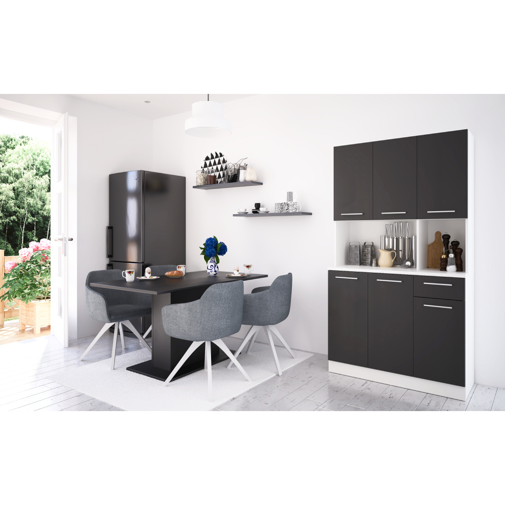 Šestidveřový kredenc, bílá/černá, PELION NEW