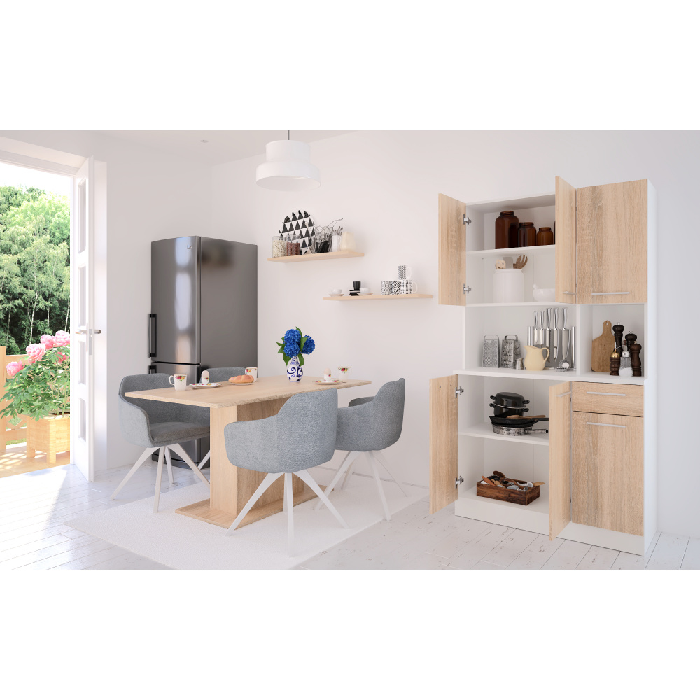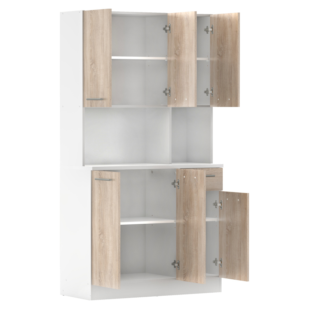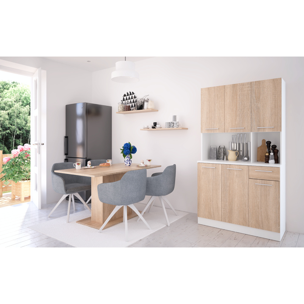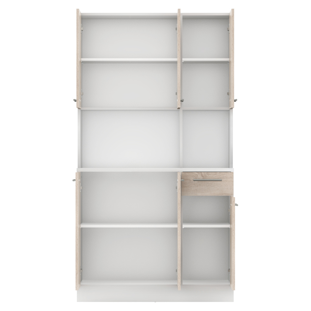 Šestidveřový kredenc, bílá/dub sonoma, PELION NEW