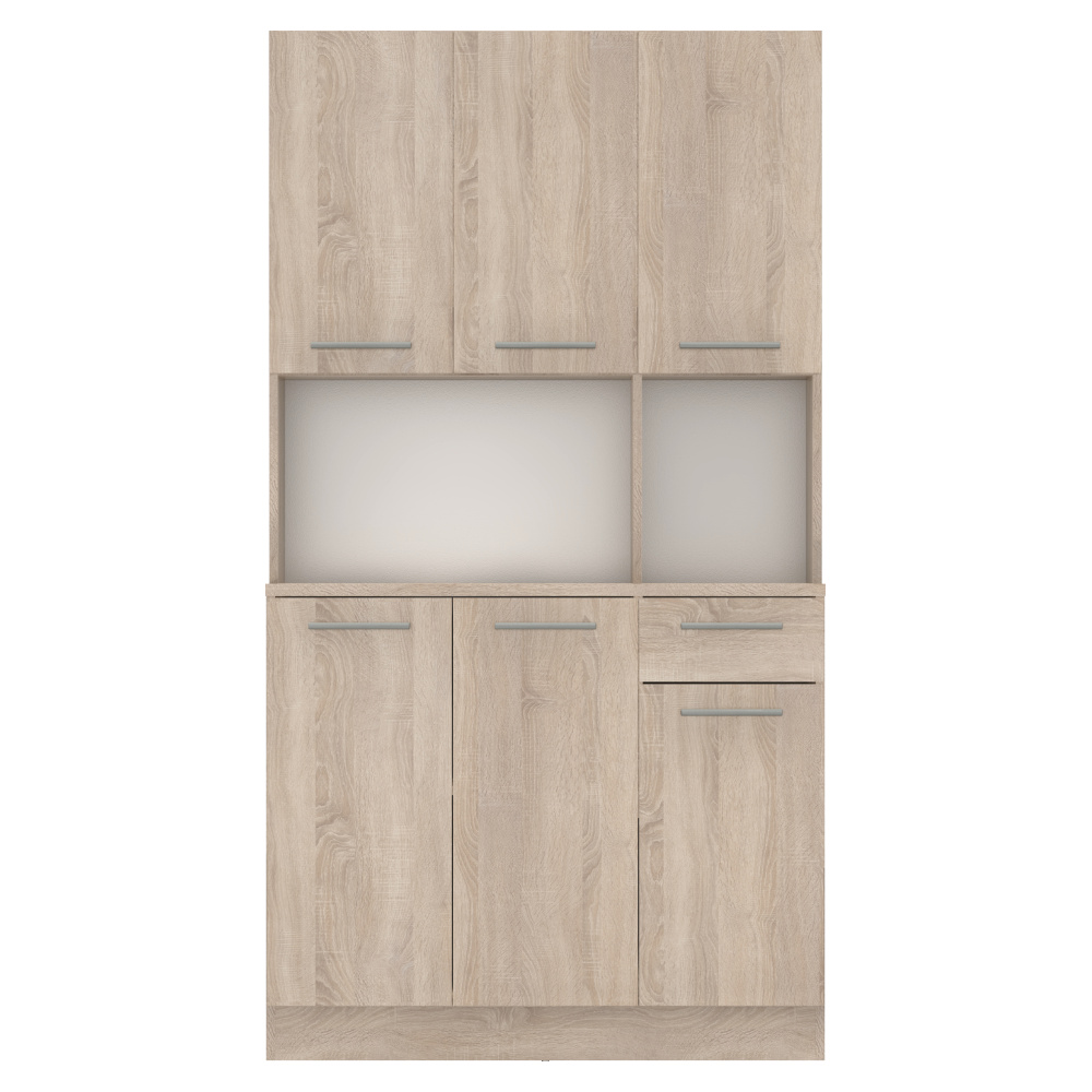 Materiál: DTD laminovaná Barva: dub sonoma Rozměry (ŠxHxV): 100x43,3x185 cm Tloušťka materiálu: 1,6 cm Tloušťka vrchního plátu spodní skříňky: 2,2 cm Šestidveřový Policový Nosnost police: 5 kg 1 zásuvka Rozměry zásuvky (ŠxV): 30,9x15 cm S úchytkami Materiál úchytek: PVC Barva úchytek: stříbrná Na kluzácích Praktický Víceúčelový Kvalitní slovenský výrobek Doporučujeme připevnit ke zdi Dodáváno v demontu