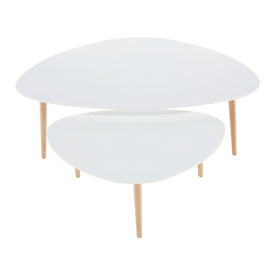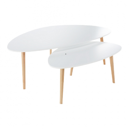 Set 2 konferenčních stolků, bílá / buk, FOLKO NEW