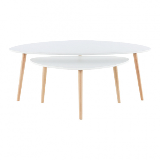 Materiál: MDF / dřevo Barva: bílá / nohy v provedení buk Rozměry většího stolku (ŠxHxV): 116x66x45 cm Rozměry menšího stolku (ŠxHxV): 75x43x39 cm Tloušťka materiálu: 18 mm Dodávané v demontu.