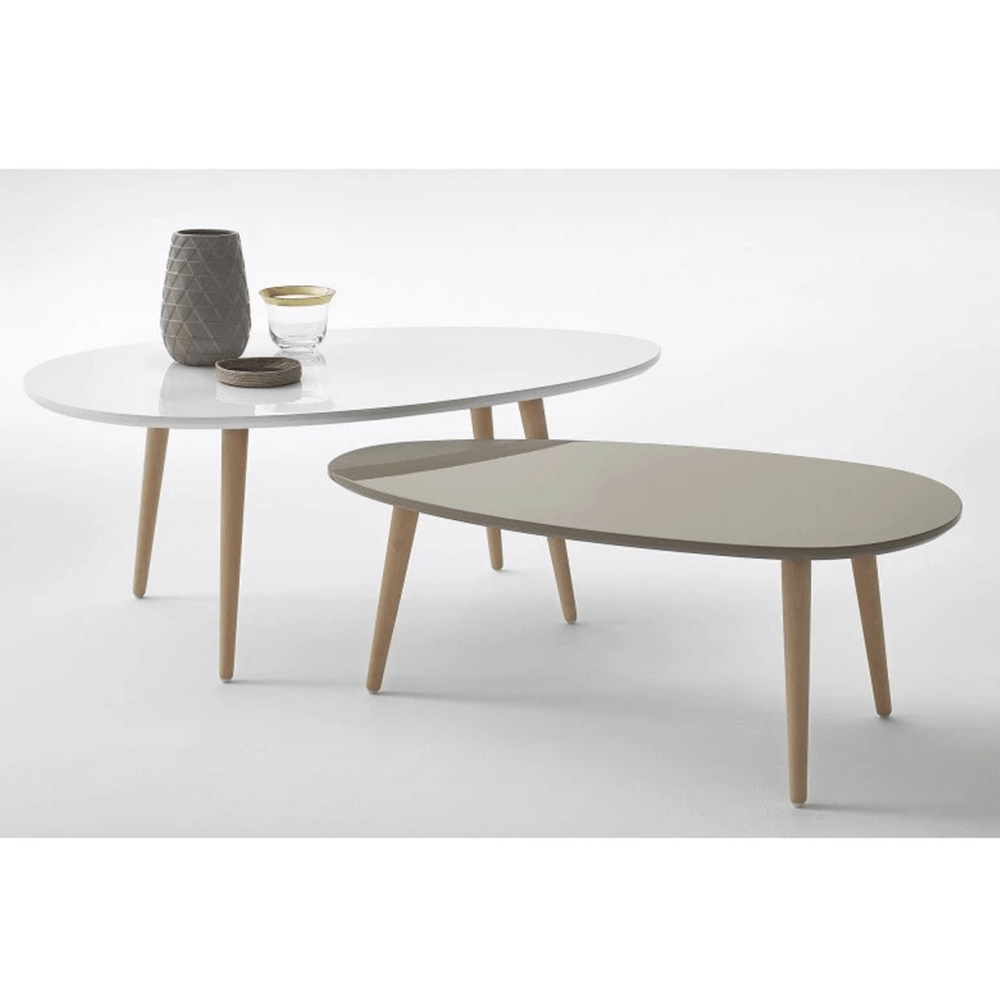Materiál: MDF / borovicové masivní dřevo Barva: bílá / šedá / přírodní Větší stolek (ŠxHxV): 60x98x40 cm Menší stolek (ŠxHxV): 48x88x35 cm Set dvou konferenčních stolků Dodávané v demontu
